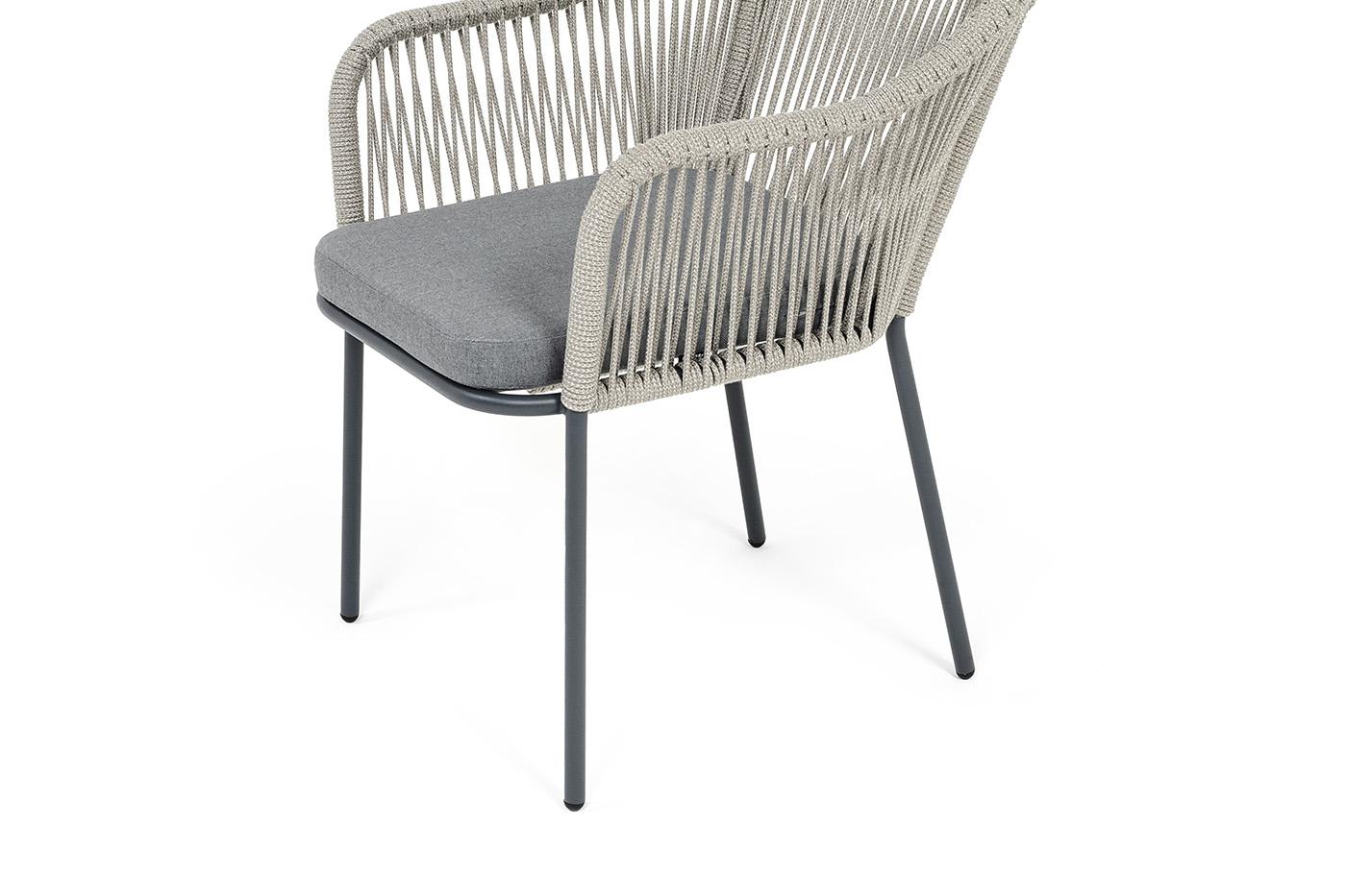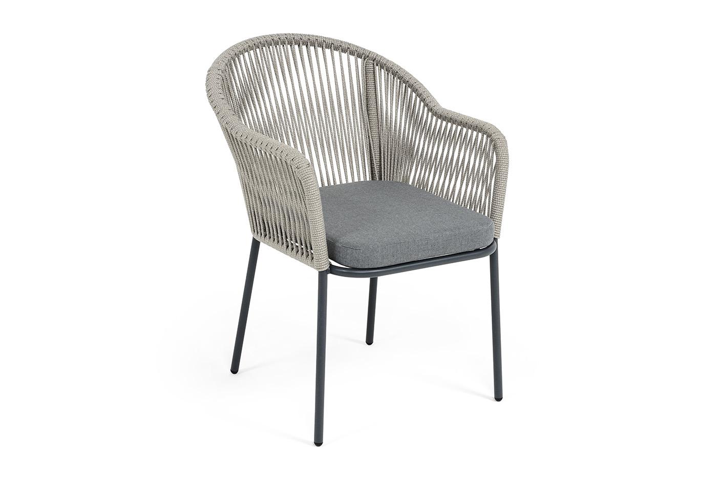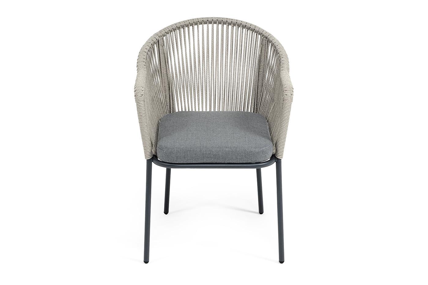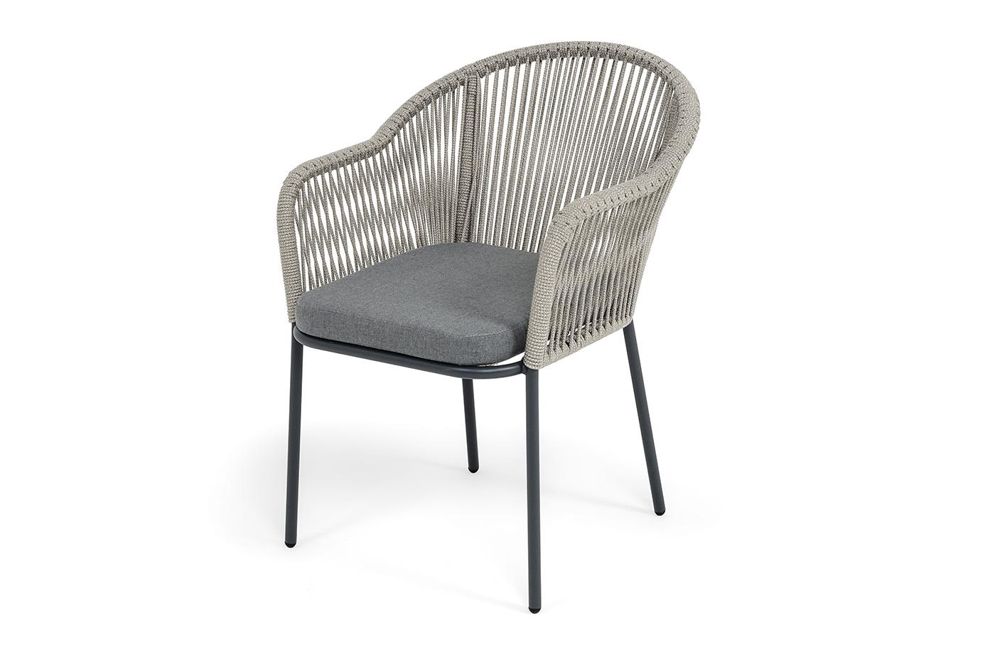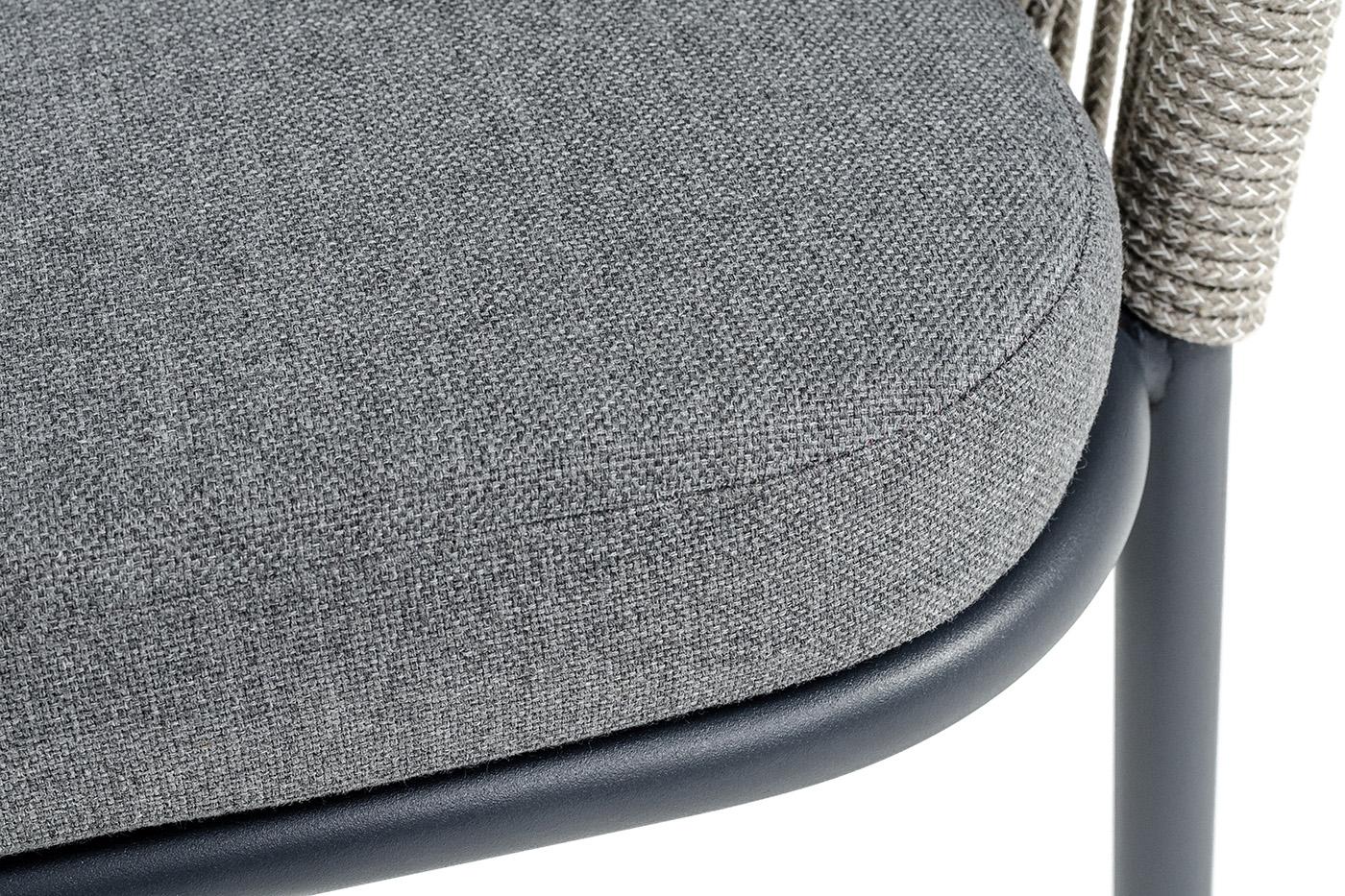 Стул 4SIS "Лион" стул плетеный из роупа, каркас из стали темно-серый (RAL7024) муар, роуп серый меланж круглый, ткань серая 017 арт. LIO-CH-st001 RAL7024 Mua mel-grey(gray17)