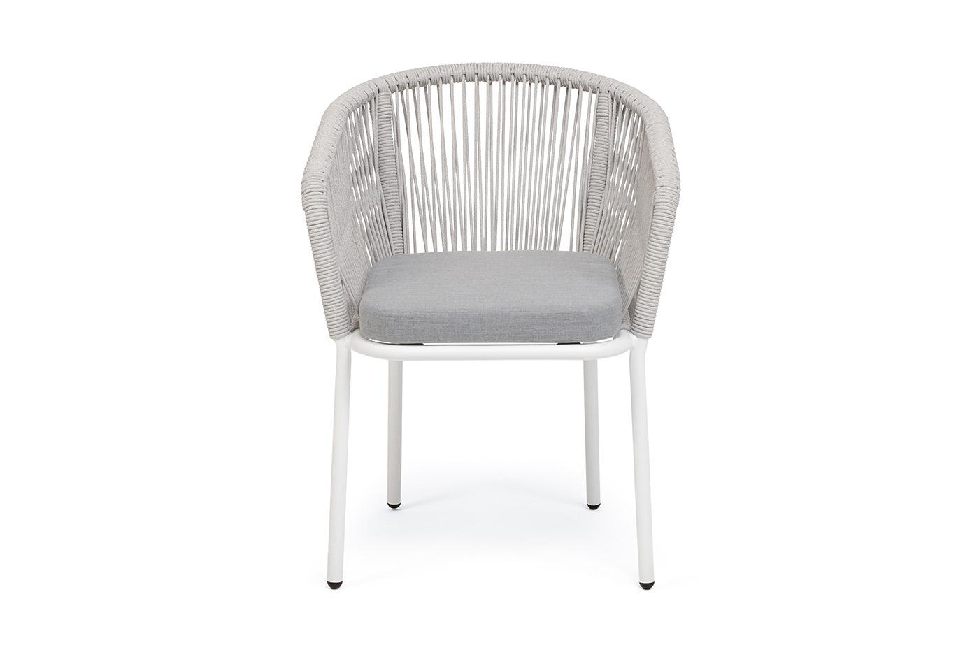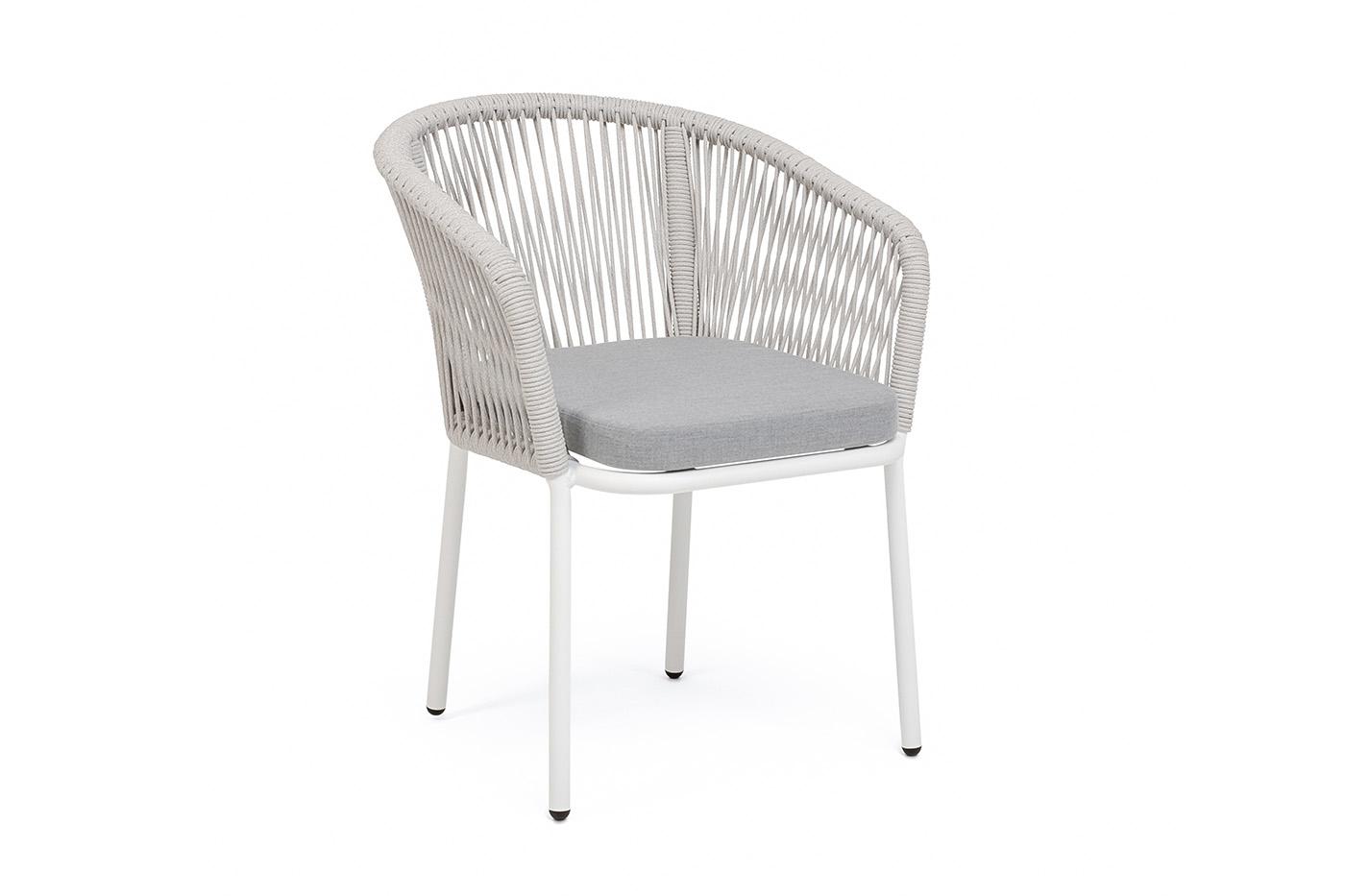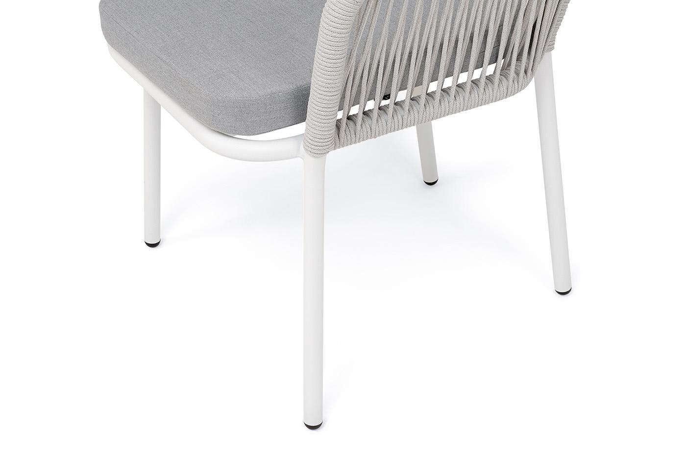 Стул 4SIS "Марсель" стул плетеный из роупа, каркас алюминий белый муар, роуп светло-серый меланж круглый tex, ткань светло-серая арт. MAR-CH-001 W MuaT-mel- H-grey(H-gray)