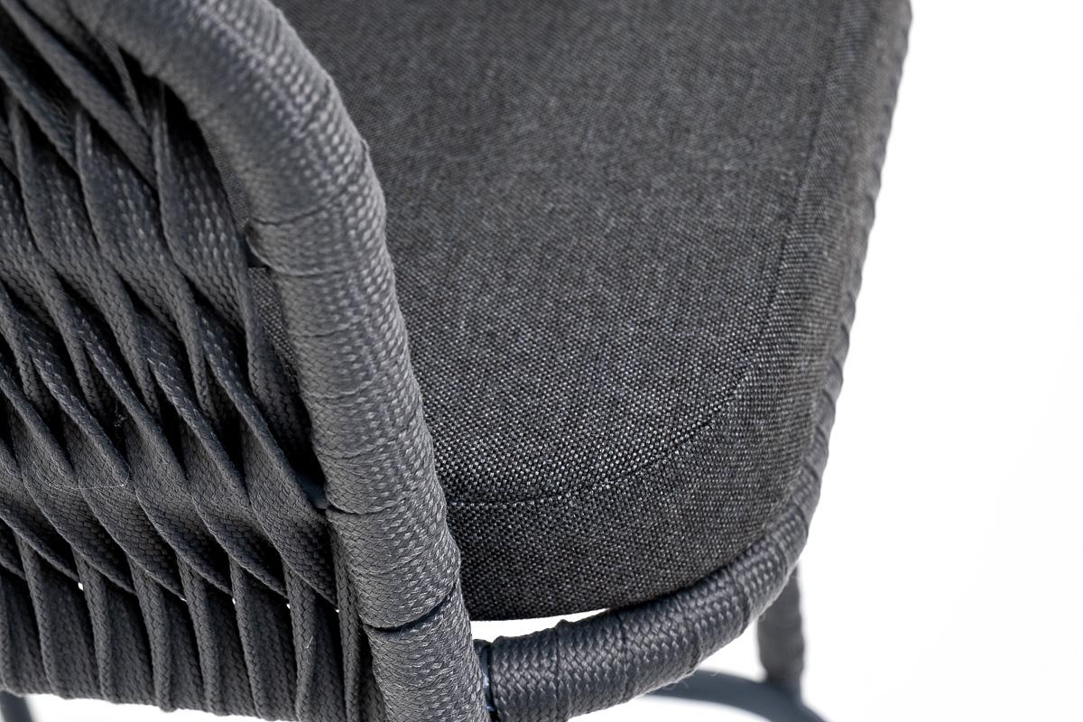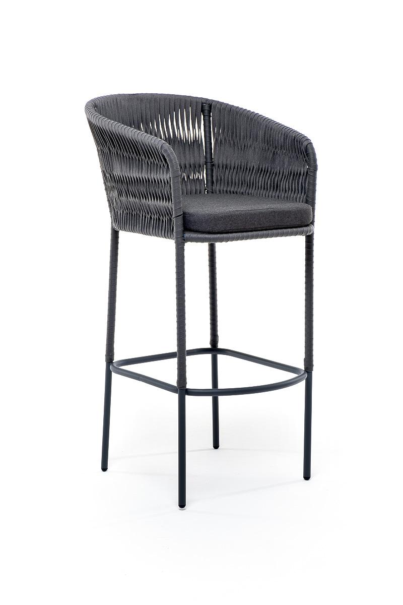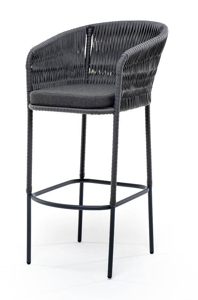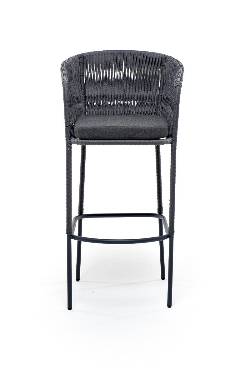 Стул 4SIS "Бордо" стул барный плетеный из роупа (колос), каркас из стали серый (RAL7022) муар, роуп серый 15мм, ткань темно-серая 027 арт. BORE-BCH-st001 RAL7022 Mua grey(D-gray027)