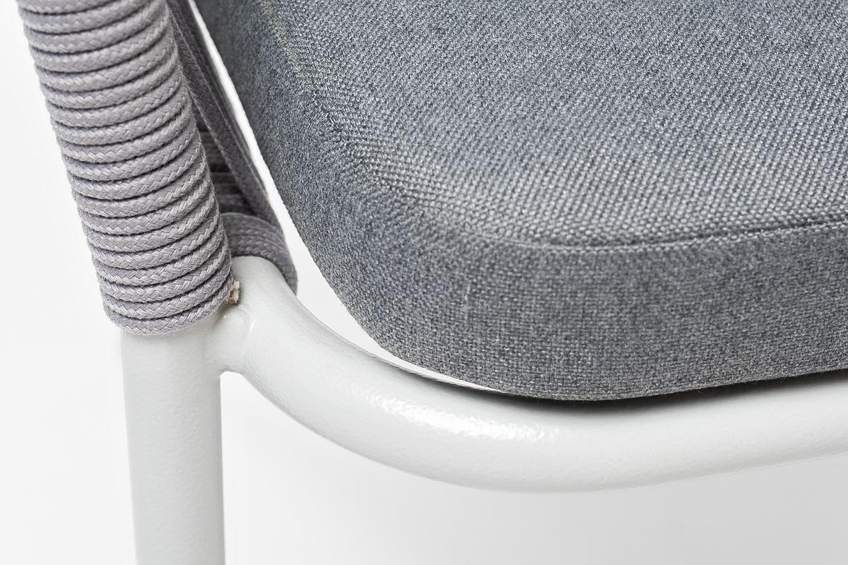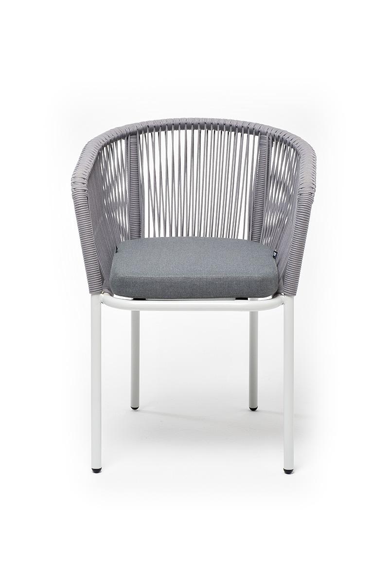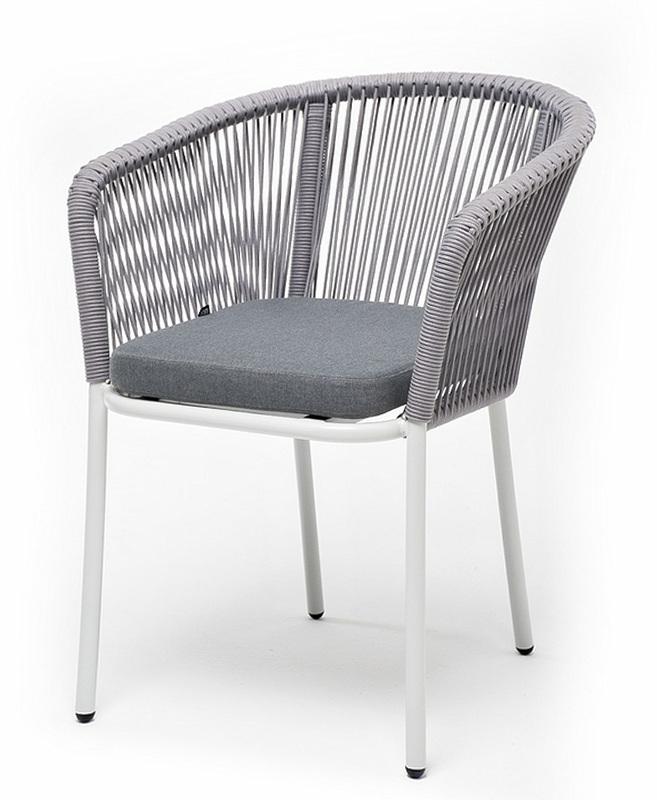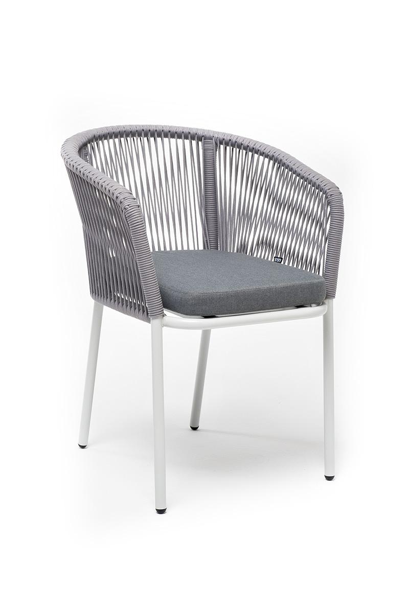 Стул 4SIS "Марсель" стул плетеный из роупа, каркас алюминий белый муар, роуп светло-серый круглый, ткань светло-серая арт. MAR-CH-001 W Mua H-grey(H-gray)