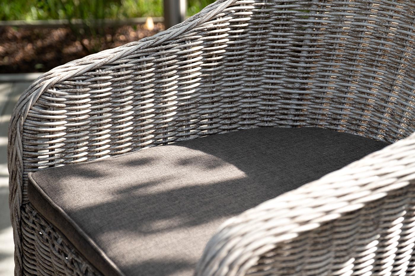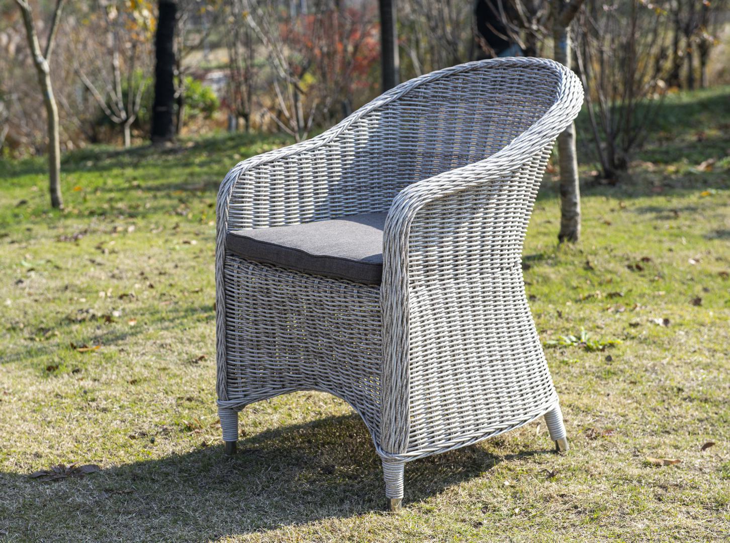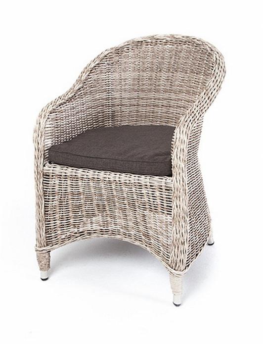 Кресло из искусственного ротанга из коллекции «Равенна» сочетает в себе домашний уют, современный стиль и природные мотивы. Размеры: 570×680×810 мм. Кресло изготовлено вручную. Каркас алюминиевый, а сверху он оплетен круглым искусственным ротангом бежевого оттенка. В комплект включена мягкая подушка серого цвета. Благодаря такой расцветке кресло идеально вписывается в любой интерьер, а также сочетается с другой мебелью, выполненной в натуральных оттенках. Дизайнерское кресло подойдет и д