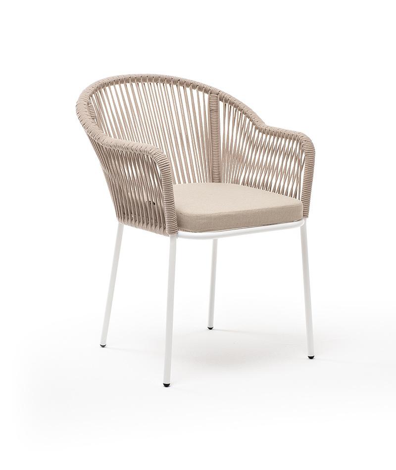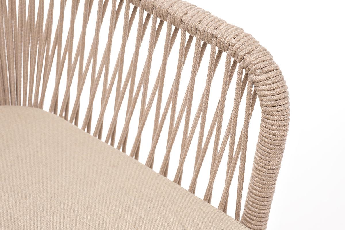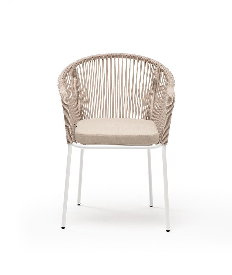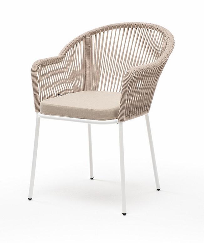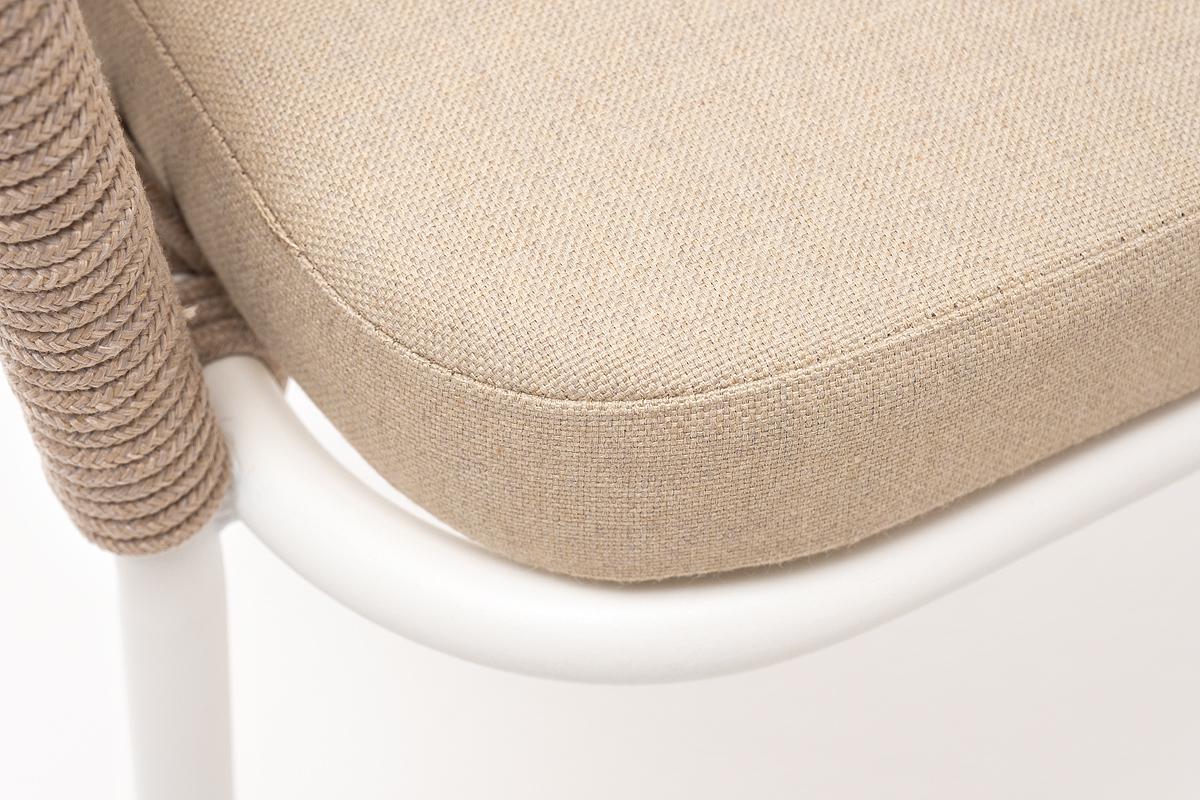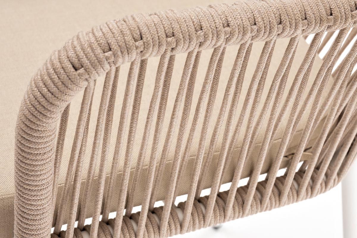 Стул 4SIS "Лион" стул плетеный из роупа, каркас из стали белый муар, роуп бежевый круглый, ткань бежевая арт. LIO-CH-st001 W Mua beige(beige)