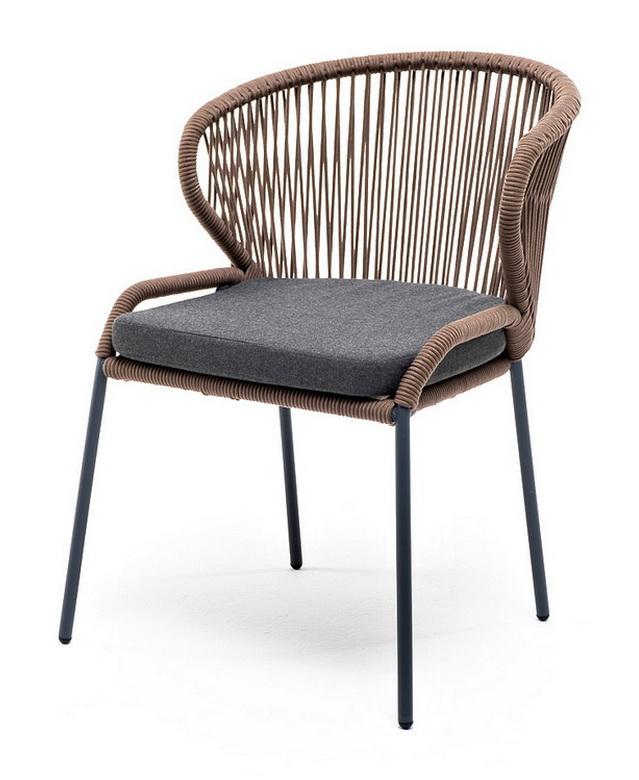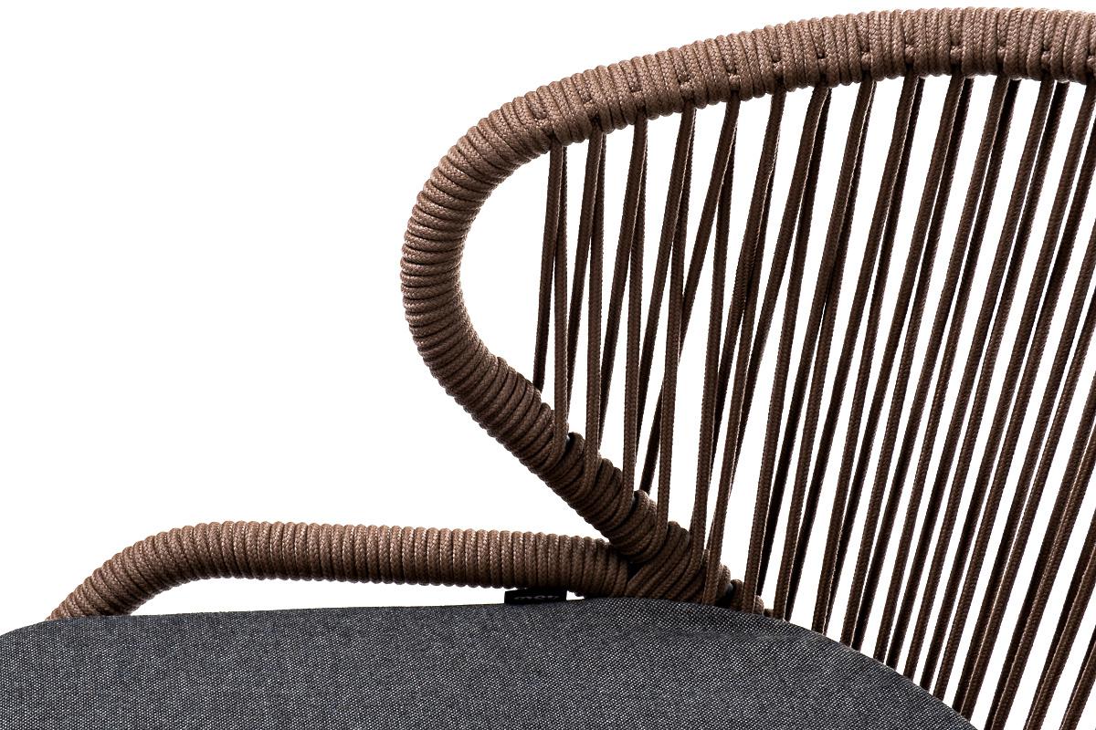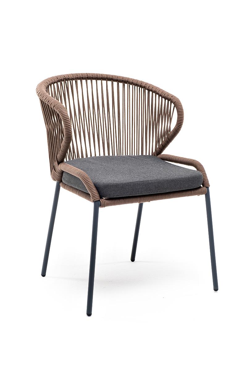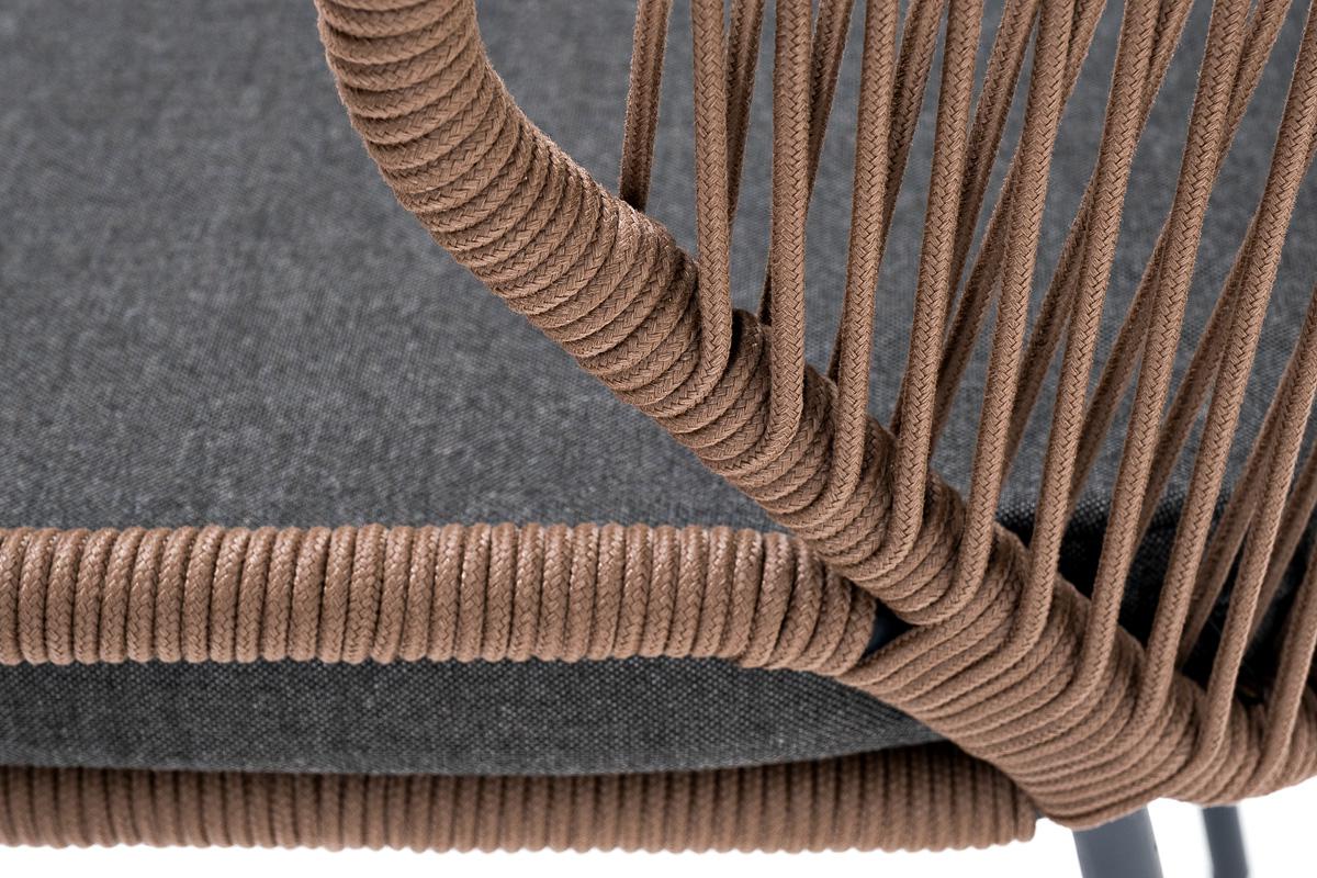 Стул 4SIS "Милан" стул плетеный из роупа, каркас алюминий серый (RAL7022) муар, роуп коричневый круглый, ткань темно-серая 027 арт. MIL-CH-001 RAL7022 Mua brown(D-gray027)