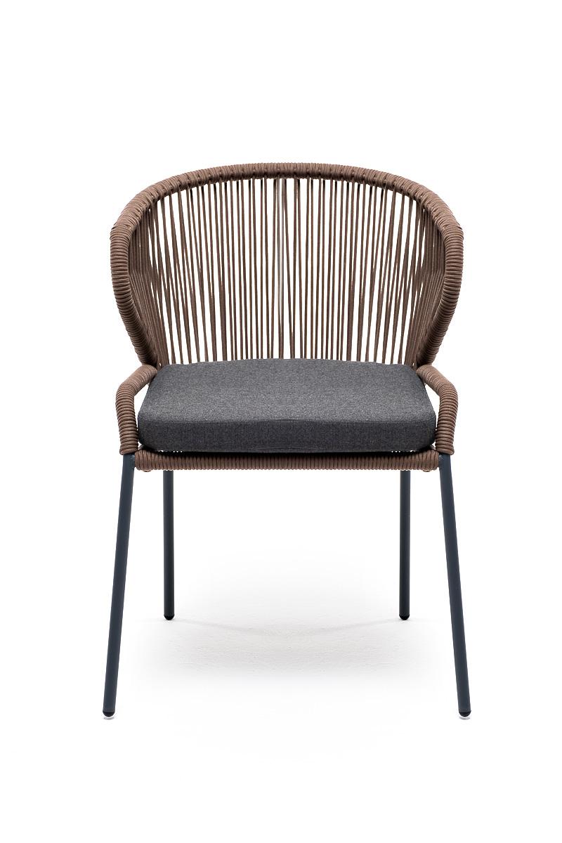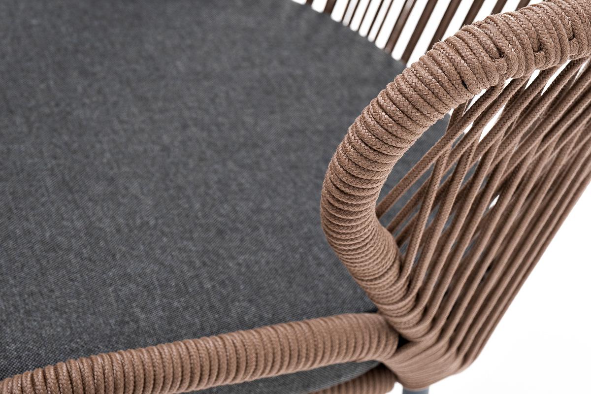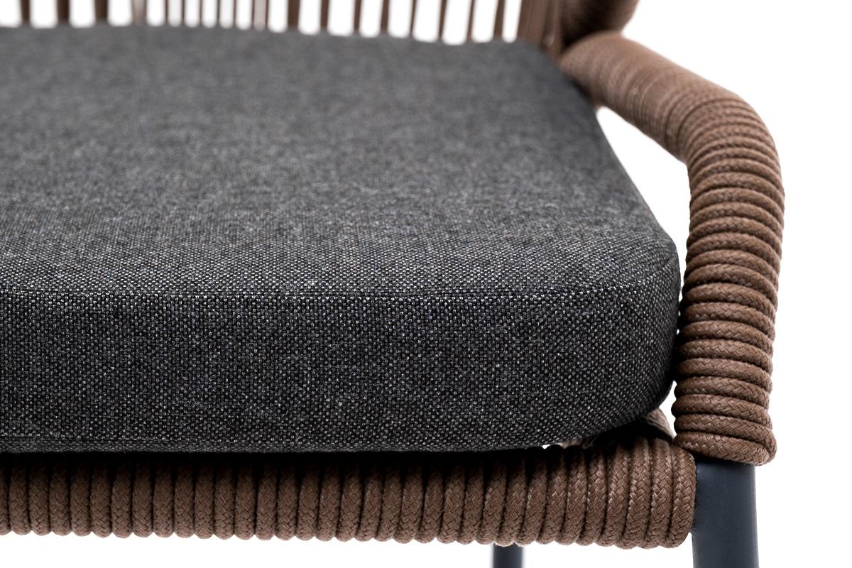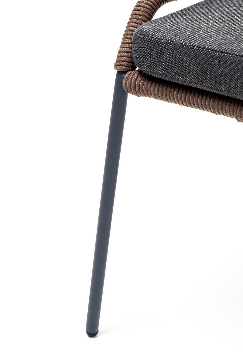 Стул 4SIS "Милан" стул плетеный из роупа, каркас алюминий серый (RAL7022) муар, роуп коричневый круглый, ткань темно-серая 027 арт. MIL-CH-001 RAL7022 Mua brown(D-gray027)