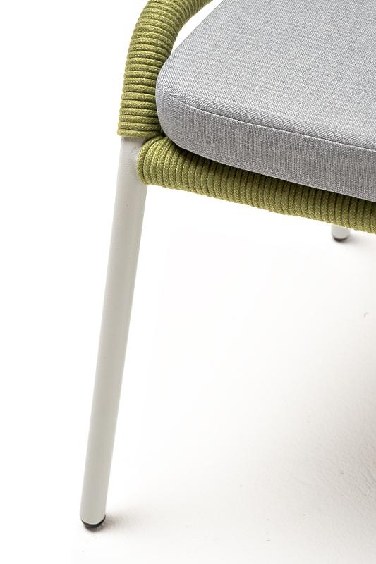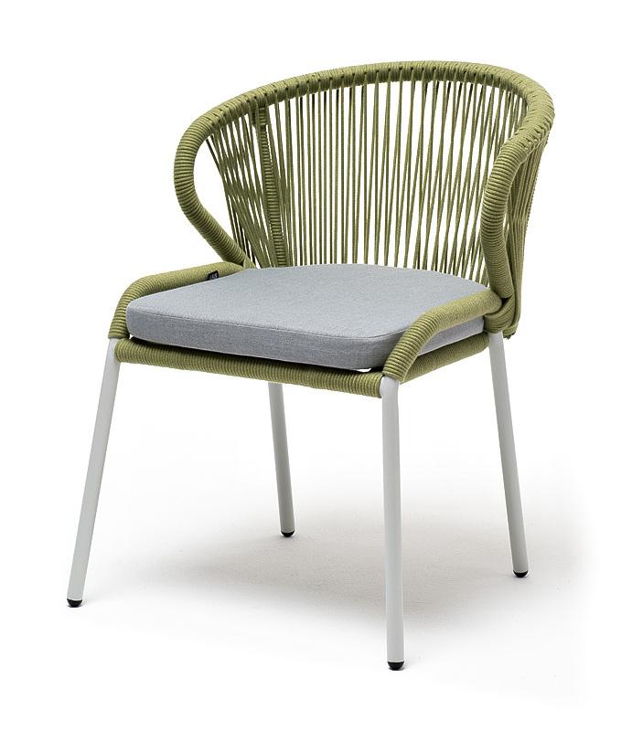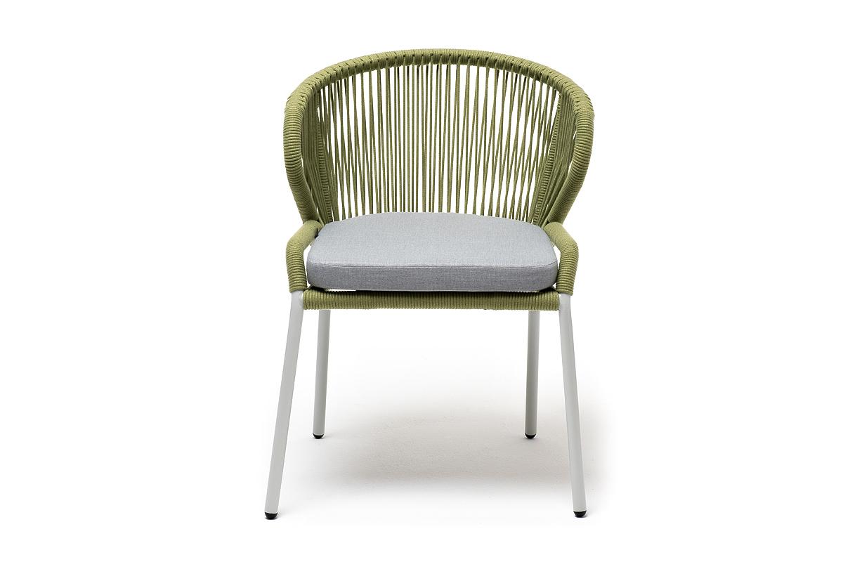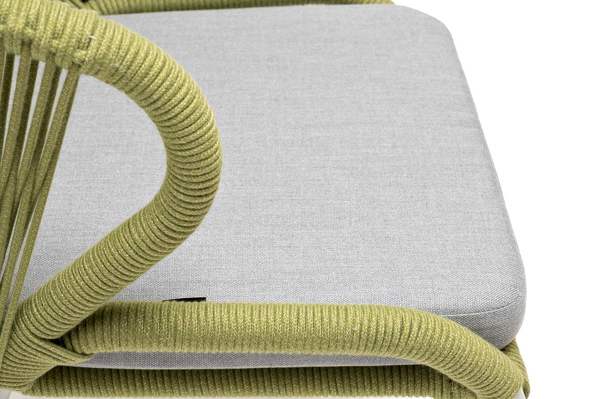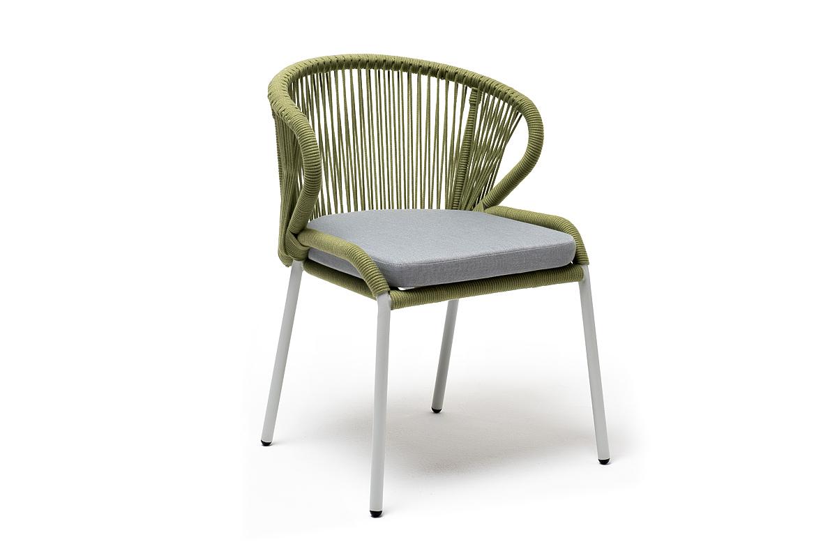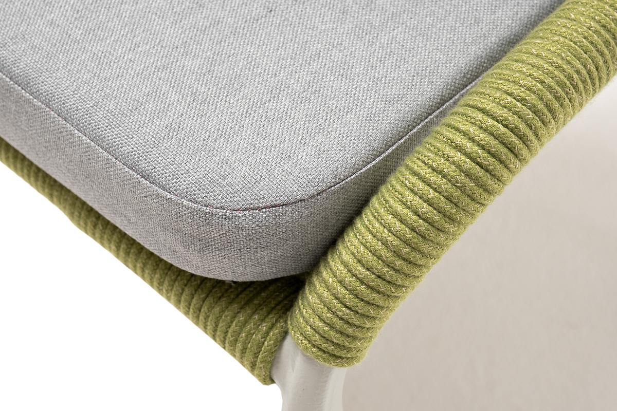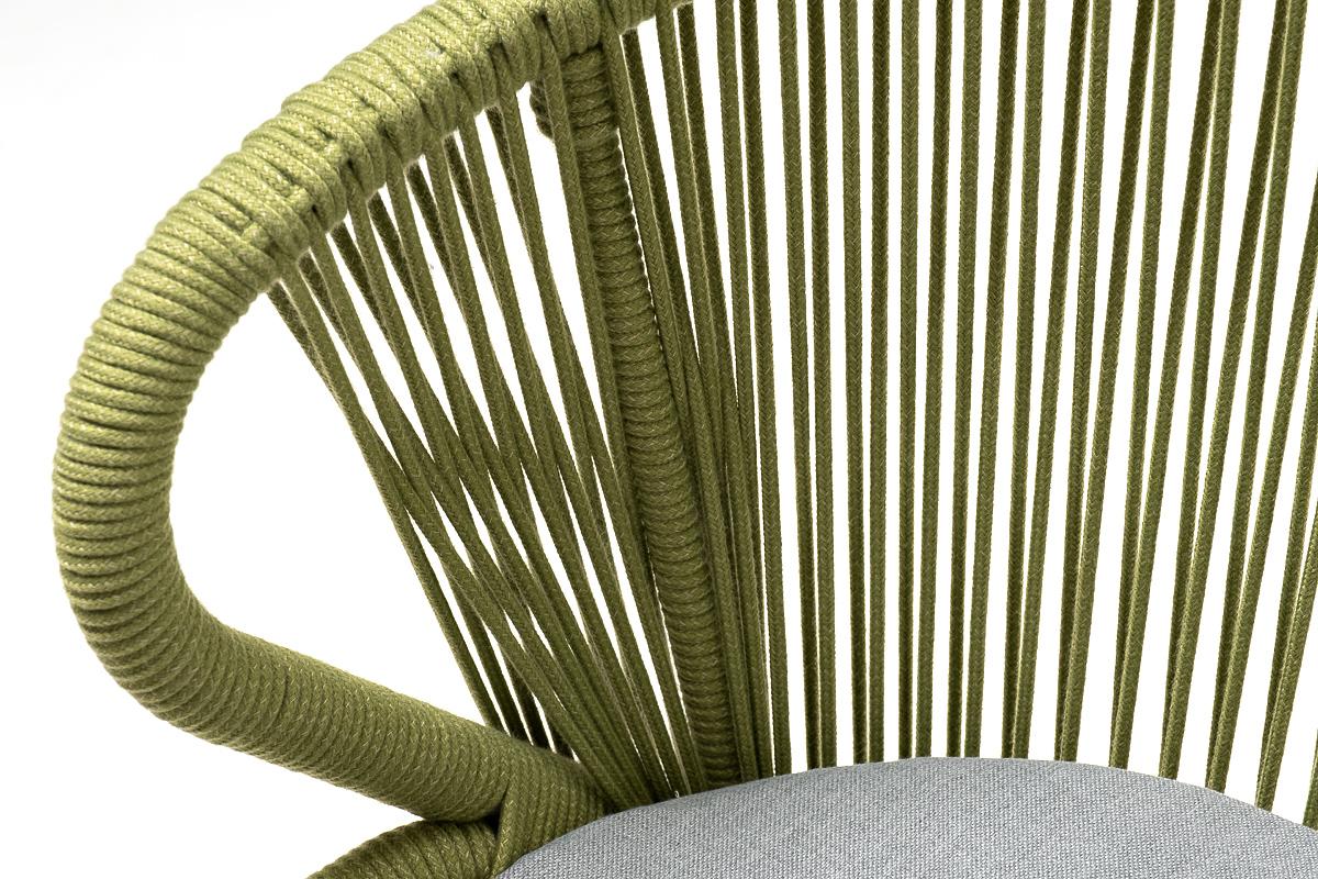 Стул 4SIS "Милан" стул плетеный из роупа, каркас алюминий светло-серый (RAL7035) муар, роуп салатовый меланж круглый, ткань светло-серая арт. MIL-CH-001 RAL7035 Mua mel-green(H-gray)