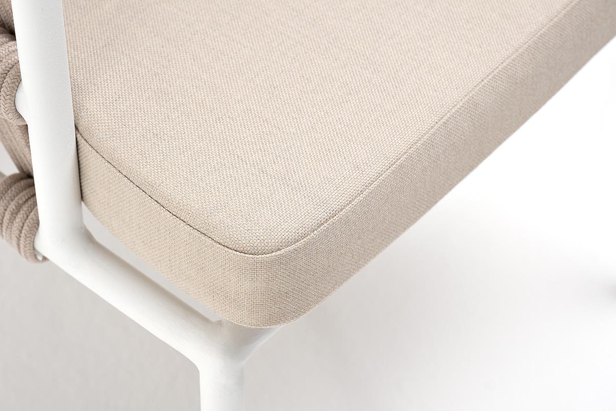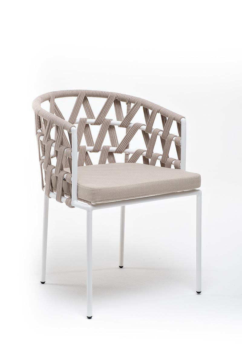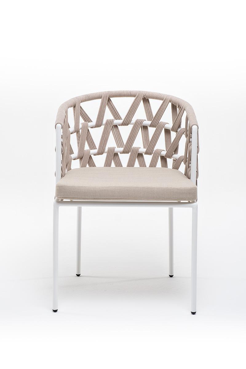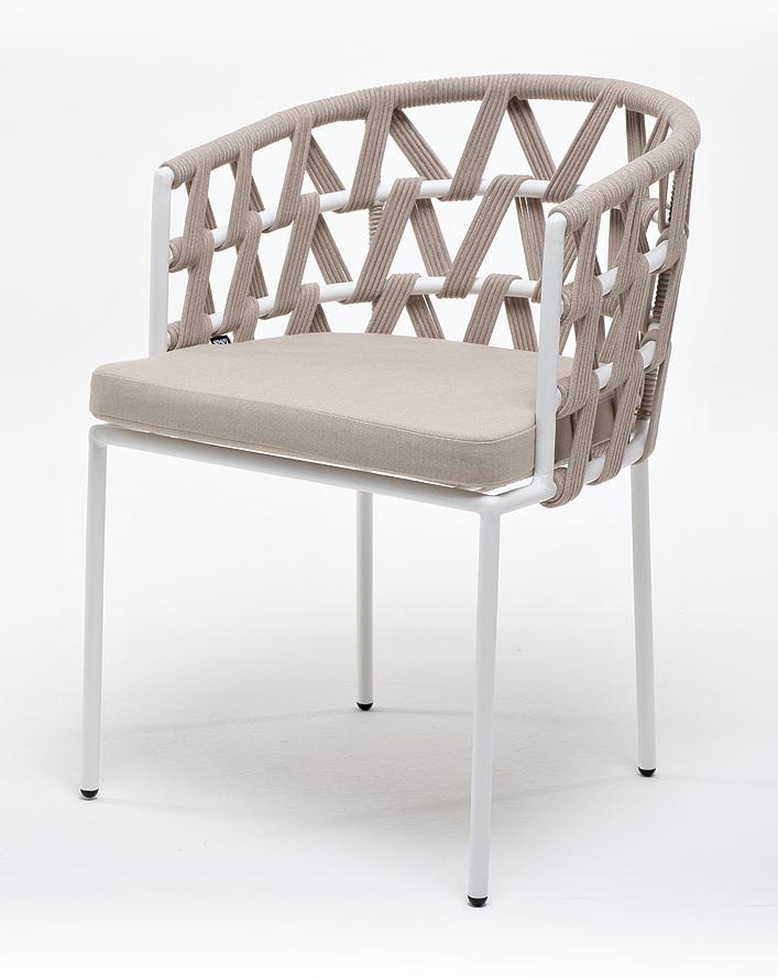 Стул 4SIS "Диего" стул плетеный из роупа, каркас из стали белый муар, роуп бежевый круглый, ткань бежевая 052 арт. DIE-CH-st001 W Mua beige(beige052)