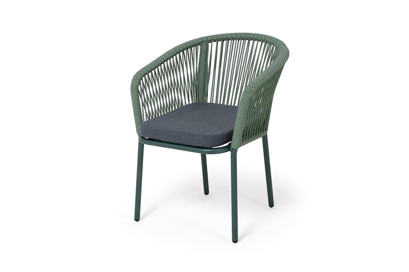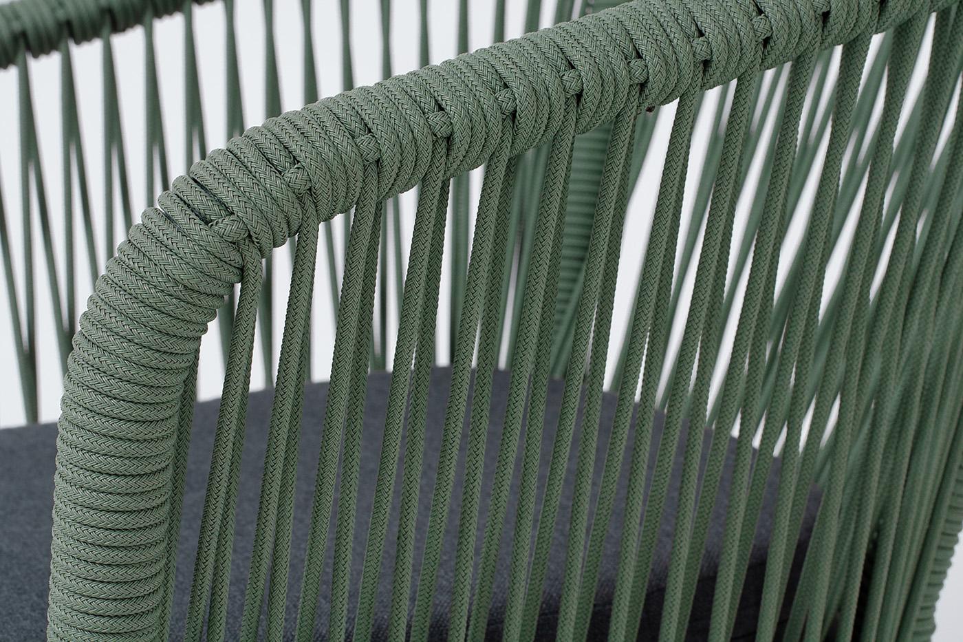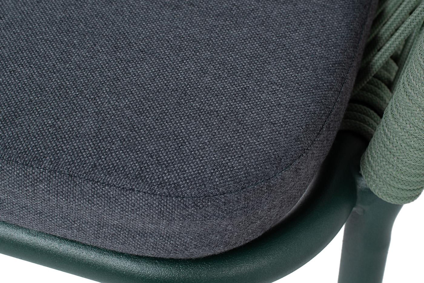 Стул 4SIS "Марсель" стул плетеный из роупа, каркас алюминий RAL6036 муар, роуп зеленый (4204) круглый tex, ткань темно-серая 027 арт. MAR-CH-001 RAL6036 MuaT-green4204(D-gray027)