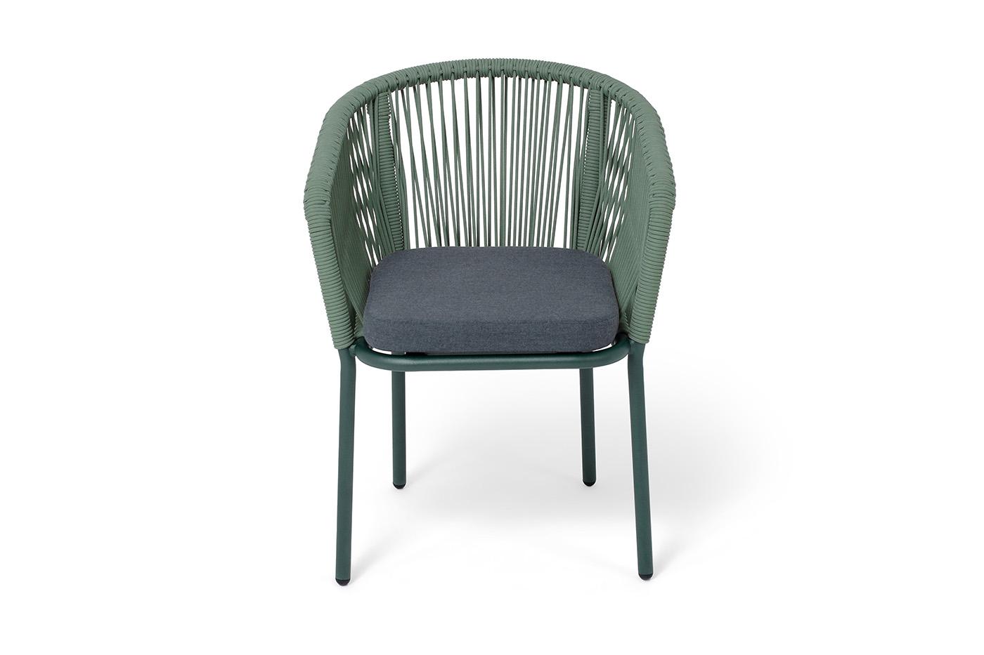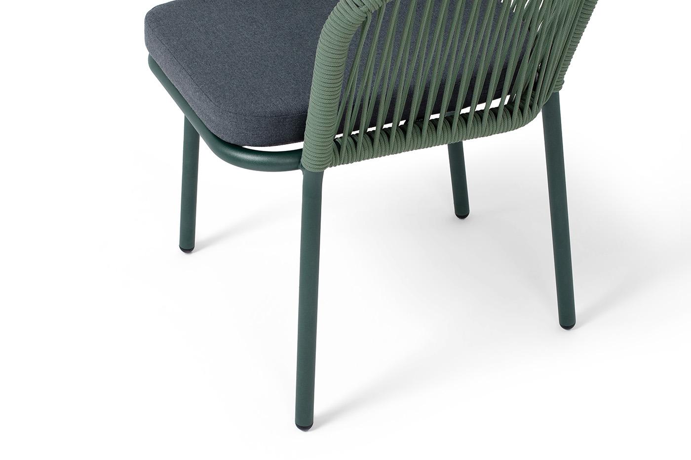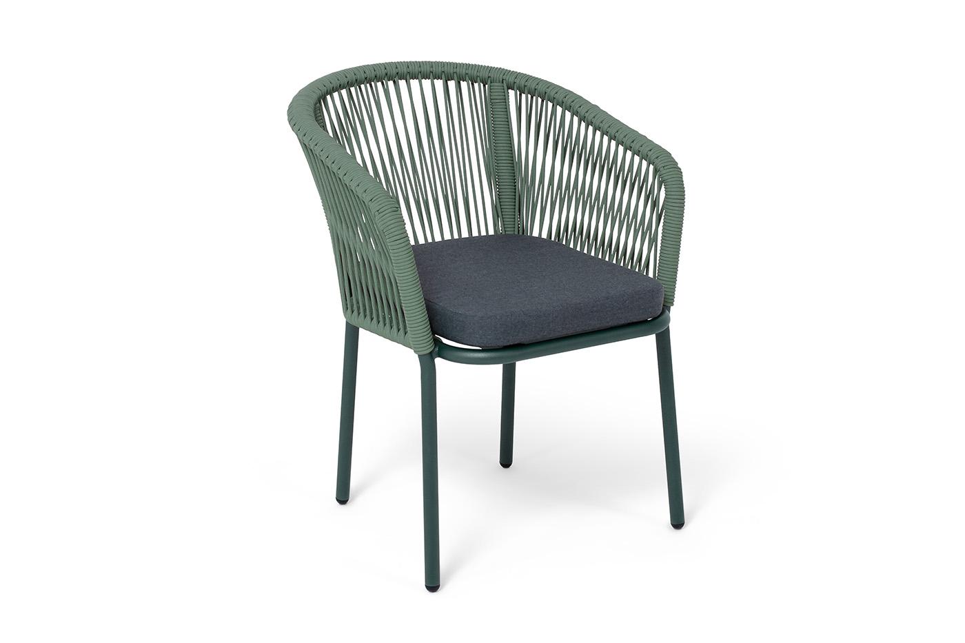 Стул 4SIS "Марсель" стул плетеный из роупа, каркас алюминий RAL6036 муар, роуп зеленый (4204) круглый tex, ткань темно-серая 027 арт. MAR-CH-001 RAL6036 MuaT-green4204(D-gray027)