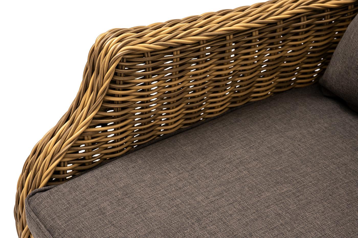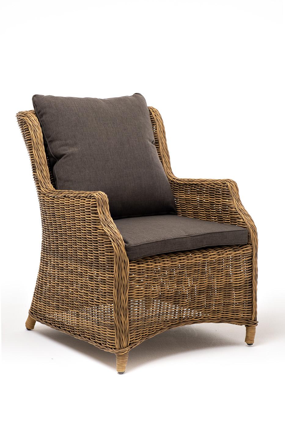 Стул «Неаполь» имеет практичные подлокотники для удобного размещения во время отдыха. Спинка и подлокотники имеют планые линии, благодаря своим закругленным формам. Каркас мебели сделан из алюминия. Присутствует ручное круглое плетение, при изготовлении которого используется искусственный ротанг. Представлено в соломенном цвете. Плетенный стул дополняют мягкие подушки. Они выполнены в сером оттенке. Пошиты изделия из плотного полиэстера 300гр/м2. Ткань предварительно обрабатывается влагоотталк