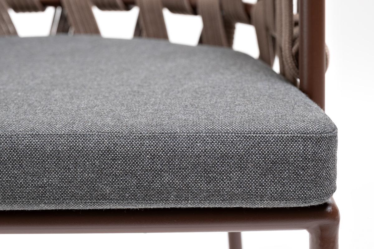 Стул 4SIS "Диего" стул плетеный из роупа, каркас из стали коричневый (RAL8016) муар, роуп коричневый круглый, ткань темно-серая 027 арт. DIE-CH-st001 RAL8016 Mua brown(D-gray027)
