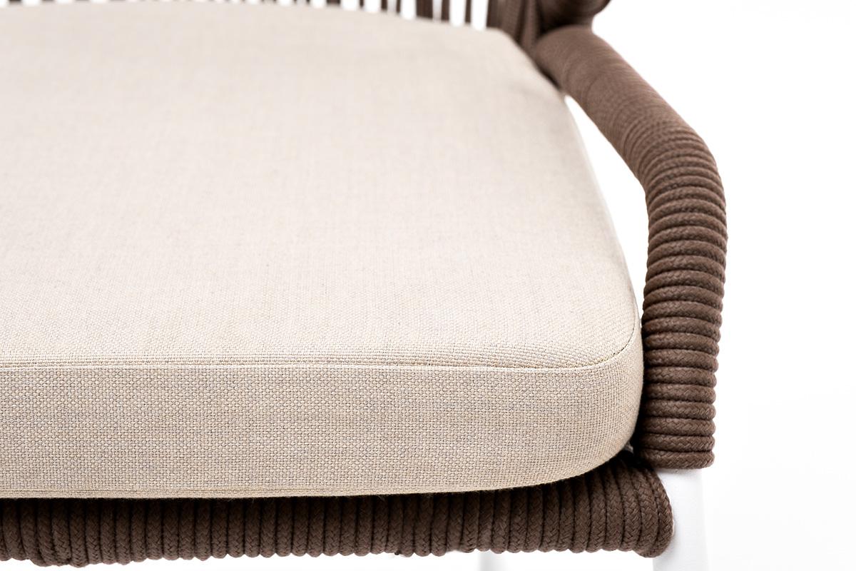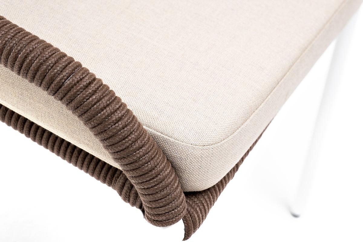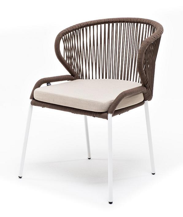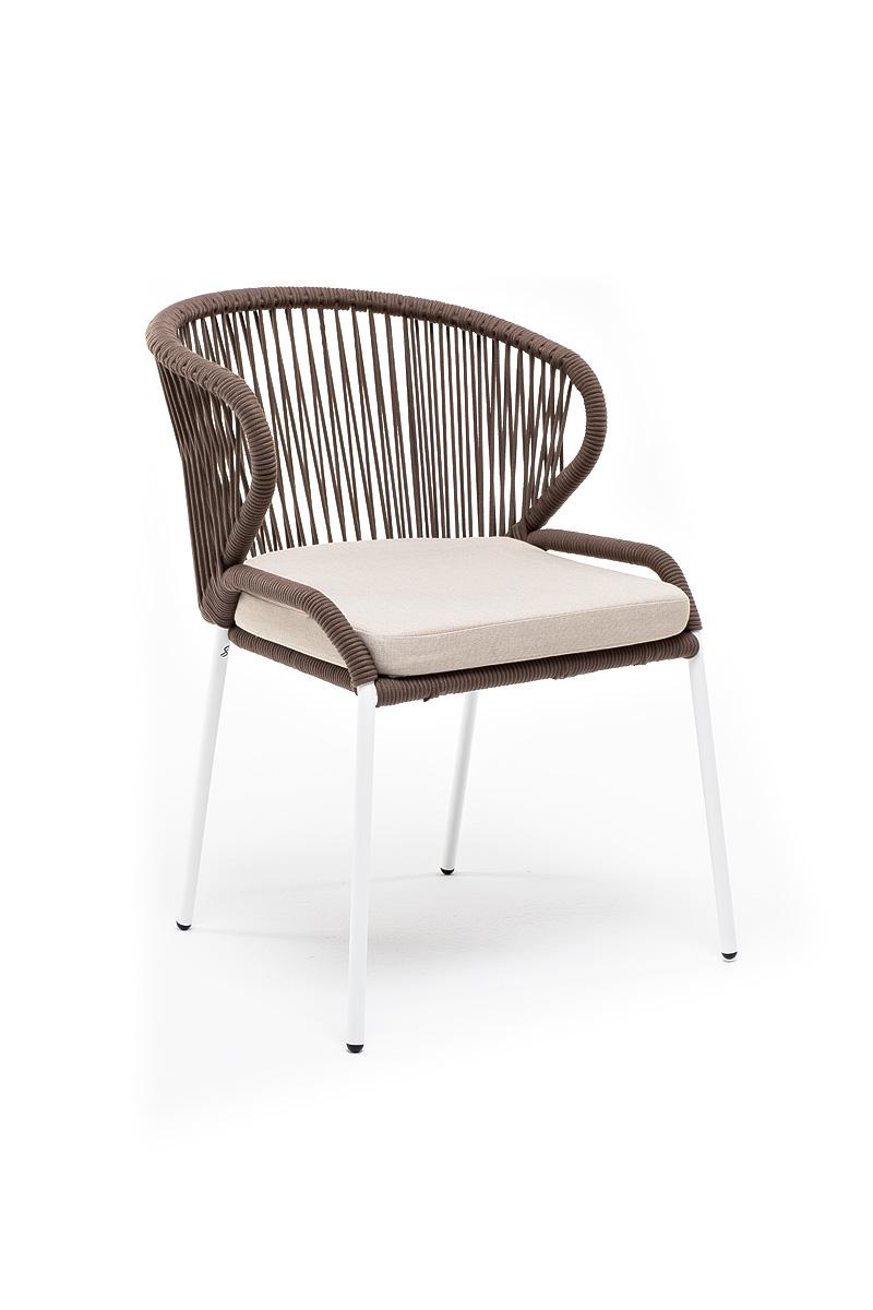 Стул 4SIS "Милан" стул плетеный из роупа, каркас алюминий белый муар, роуп коричневый круглый, ткань бежевая 052 арт. MIL-CH-001 W Mua brown(beige052)