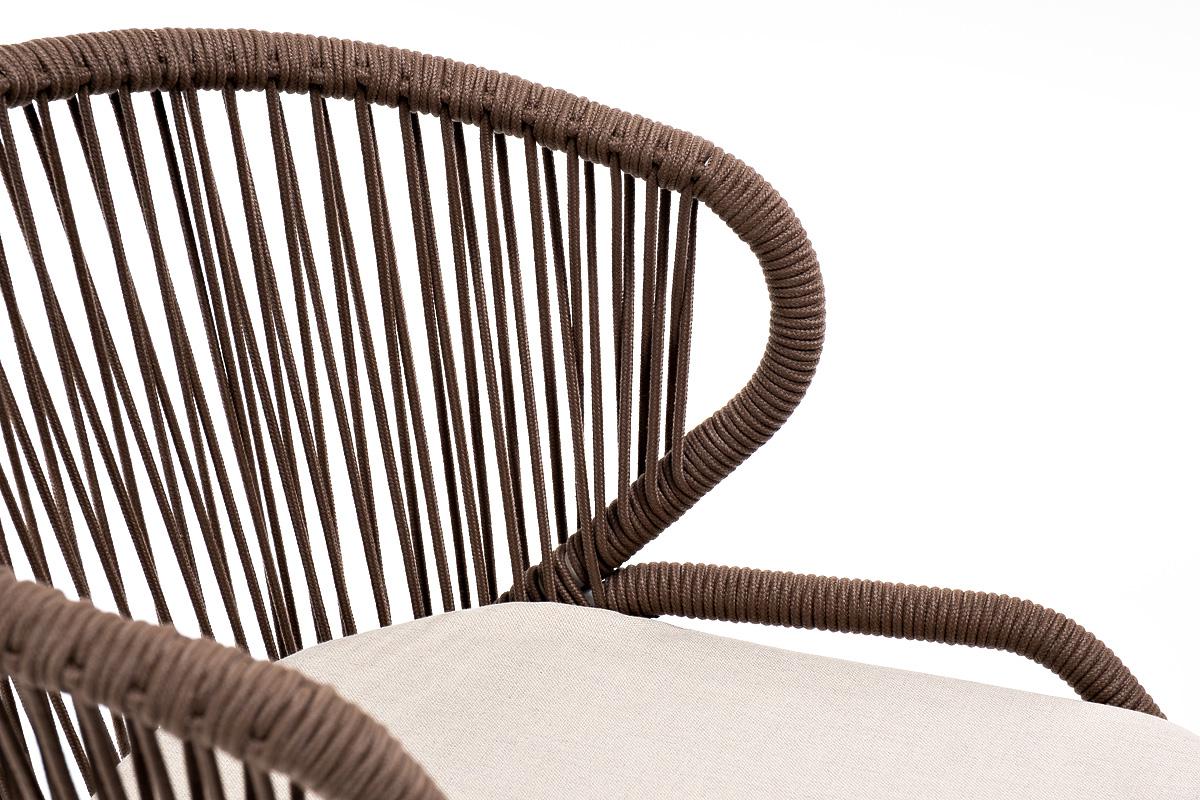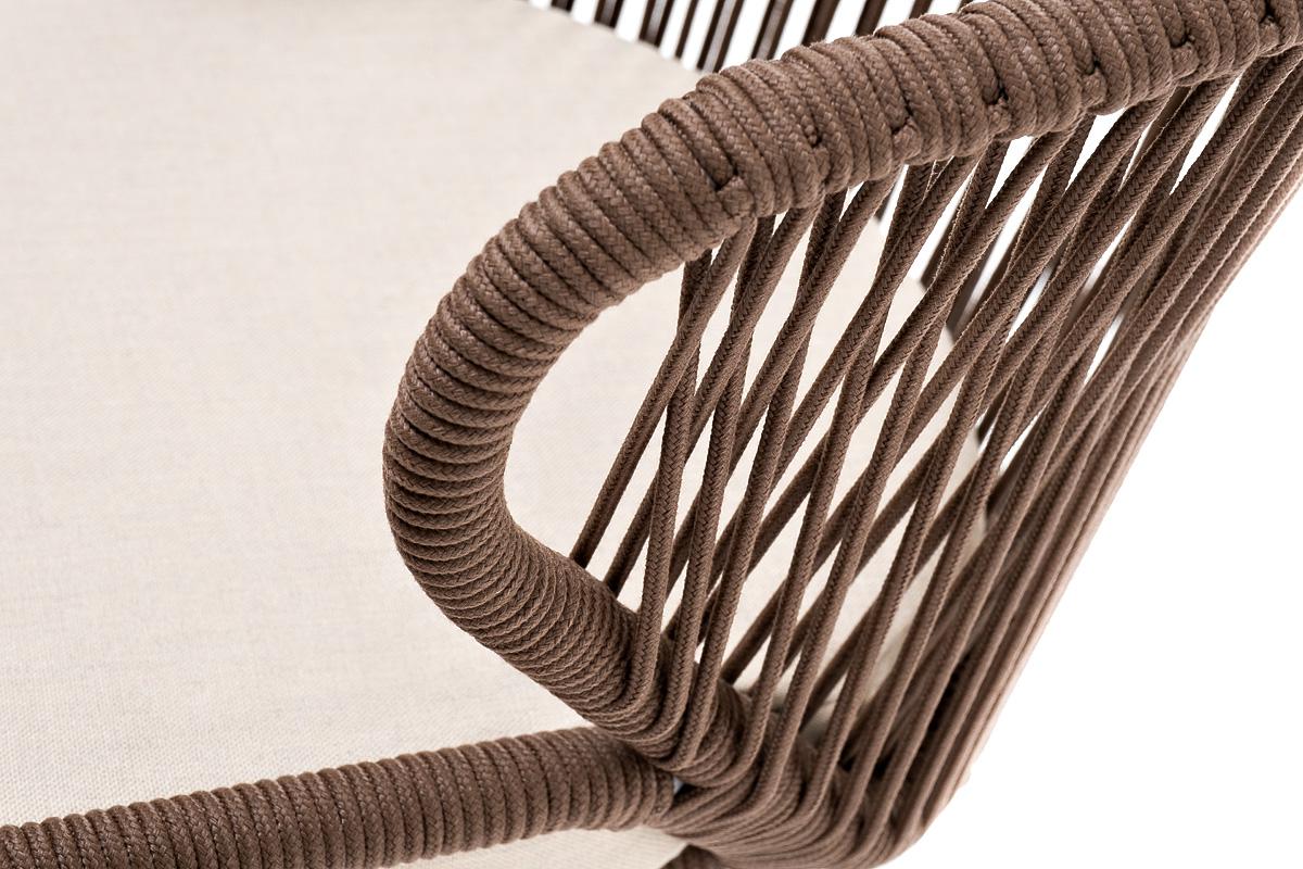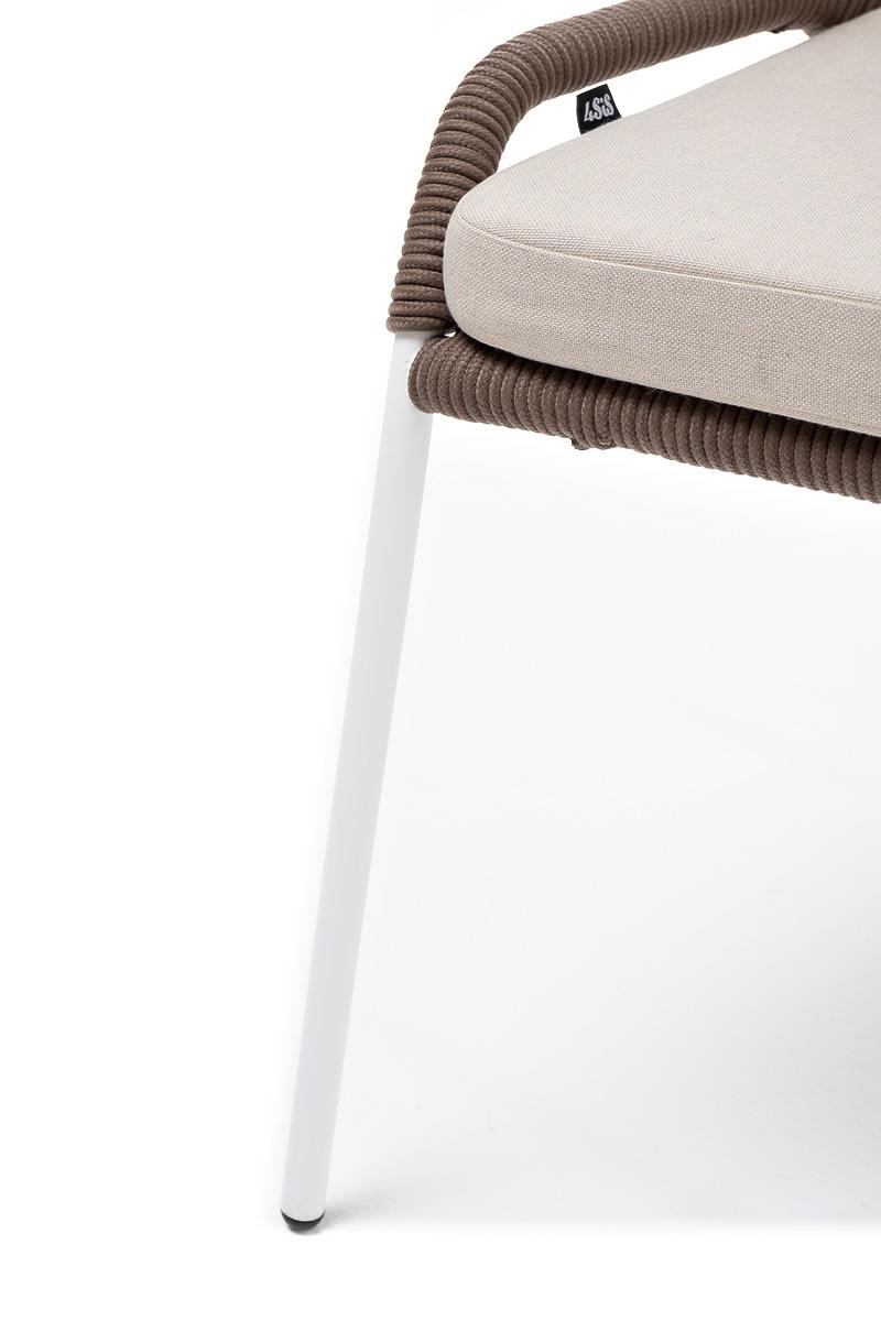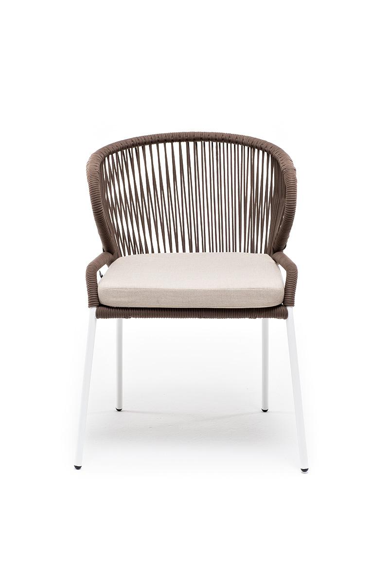 Стул 4SIS "Милан" стул плетеный из роупа, каркас алюминий белый муар, роуп коричневый круглый, ткань бежевая 052 арт. MIL-CH-001 W Mua brown(beige052)