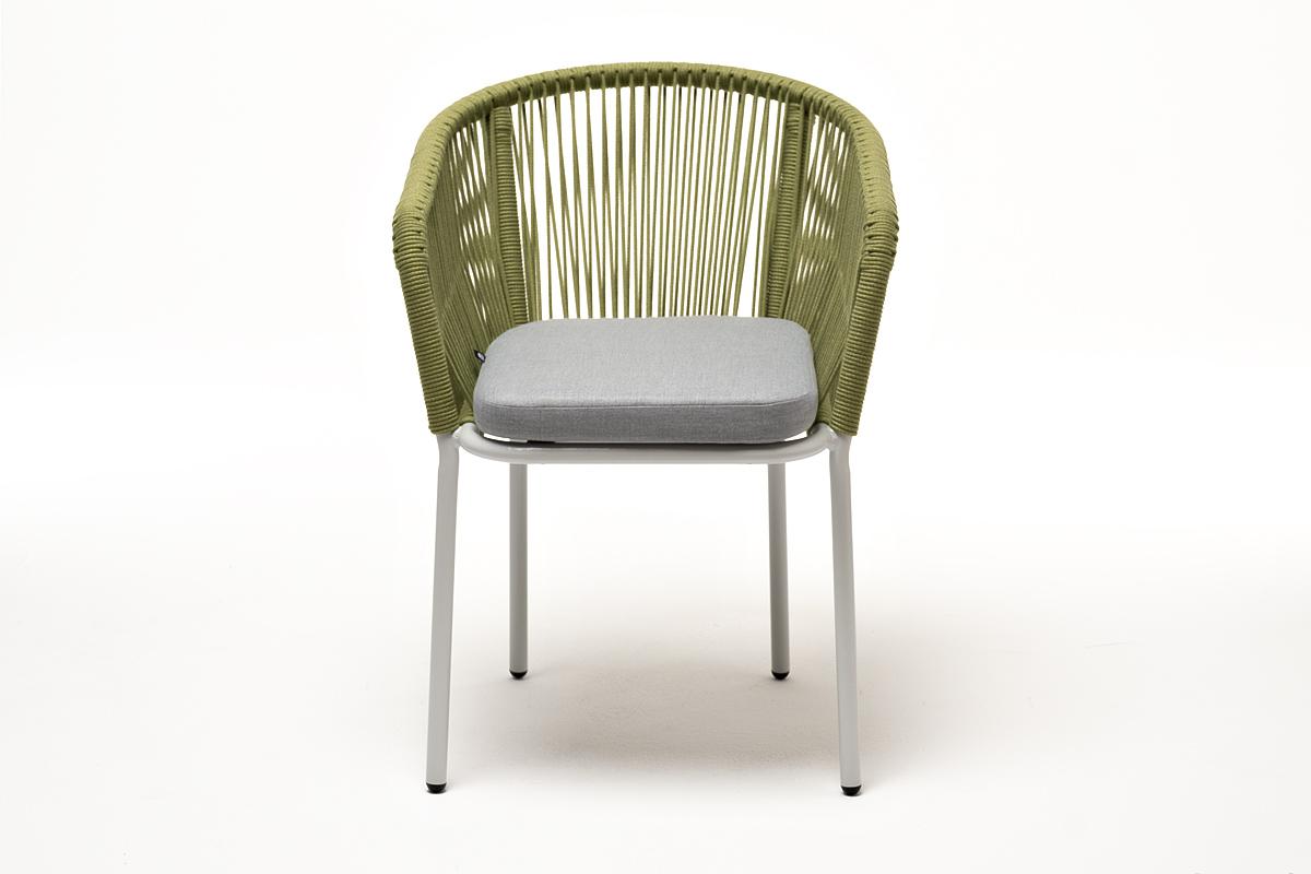 Стул 4SIS "Марсель" стул плетеный из роупа, каркас алюминий светло-серый (RAL7035) шагрень, роуп салатовый меланж круглый, ткань светло-серая арт. MAR-CH-001 RAL7035 Mua mel-green(H-gray)