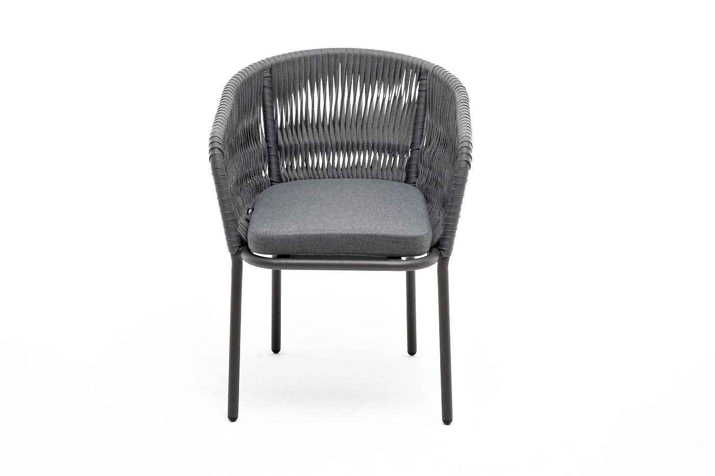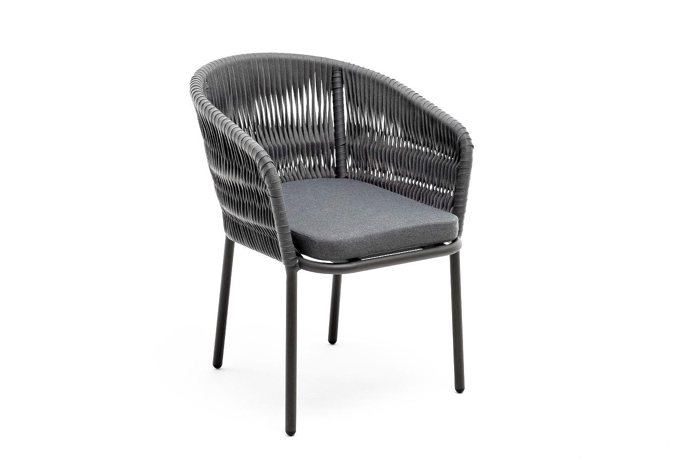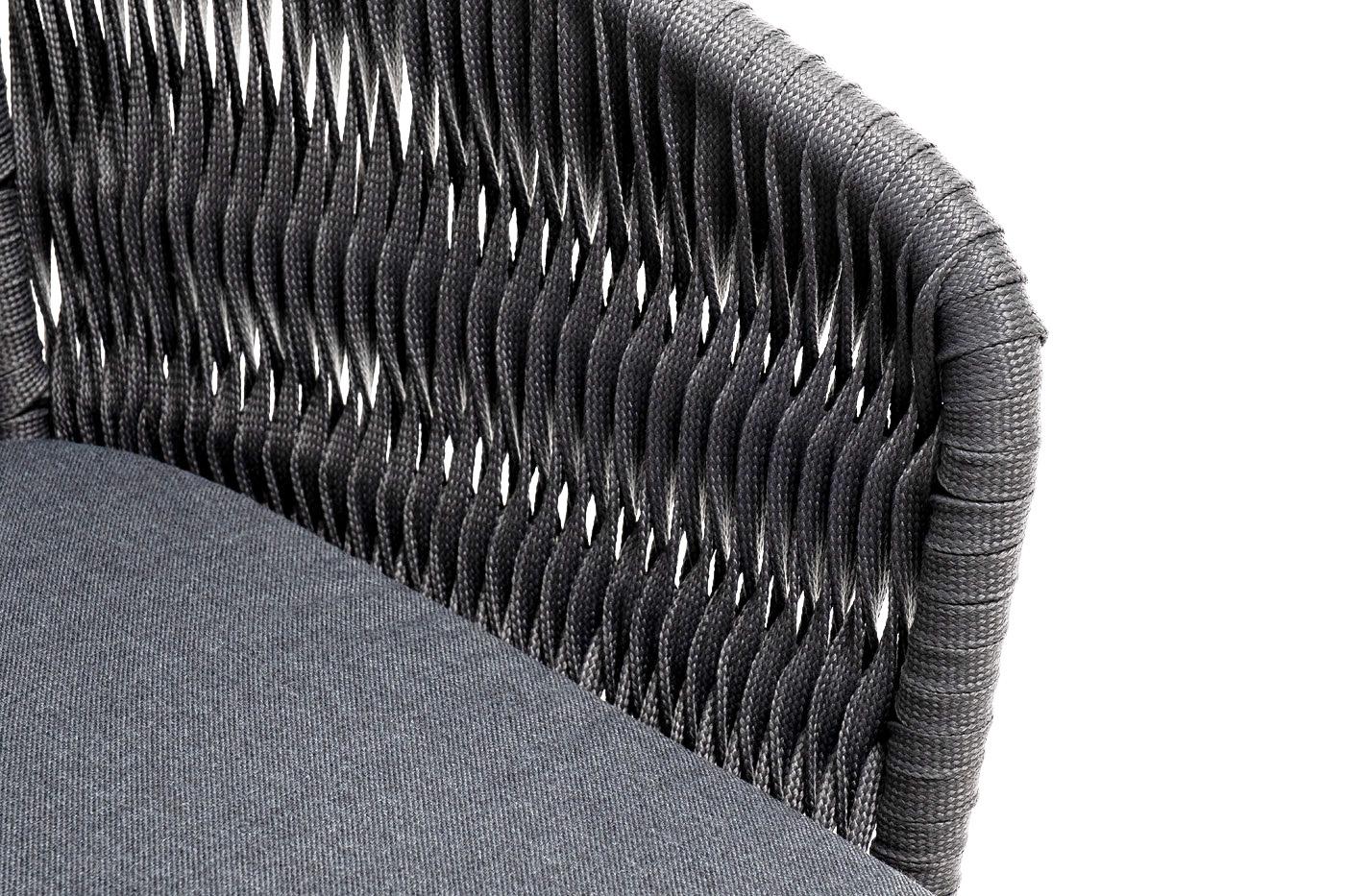 Стул 4SIS "Бордо" стул плетеный из роупа (колос), каркас алюминий серый (RAL7022) муар, роуп серый 15мм, ткань темно-серая 027 арт. BORE-CH-001 RAL7022 Mua grey(D-gray027)