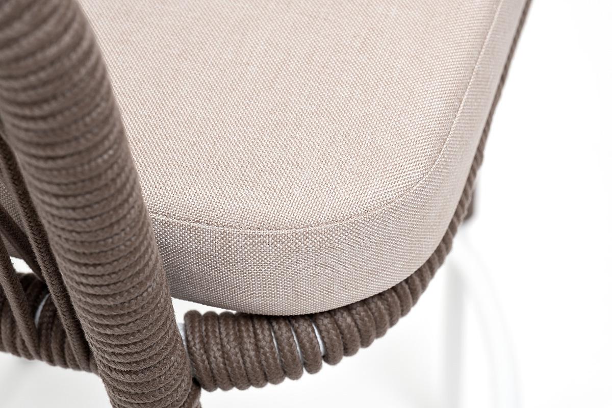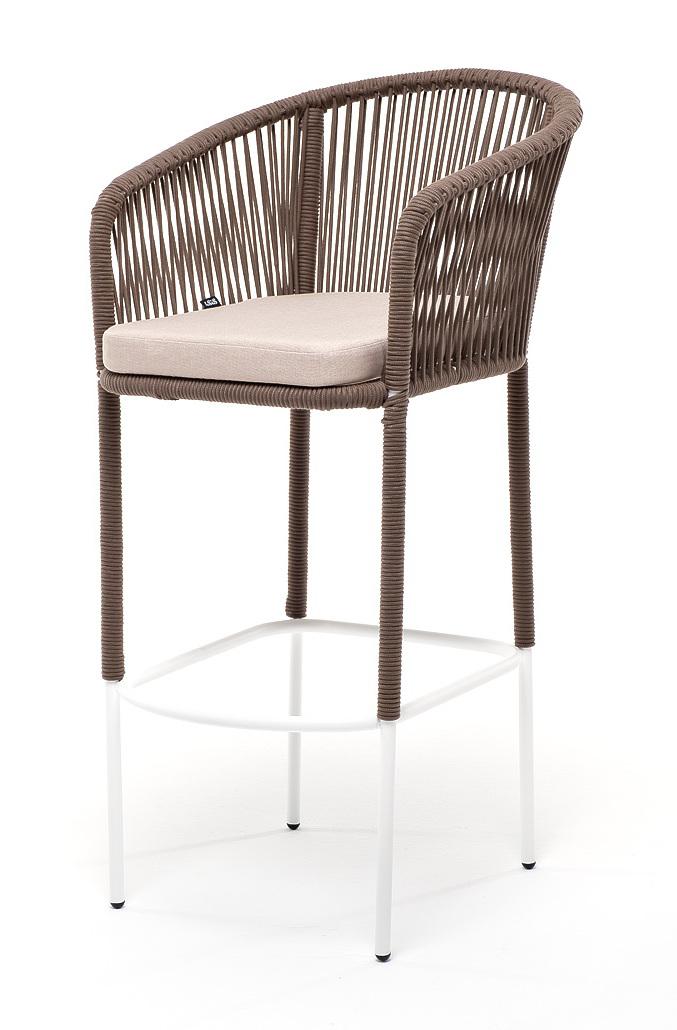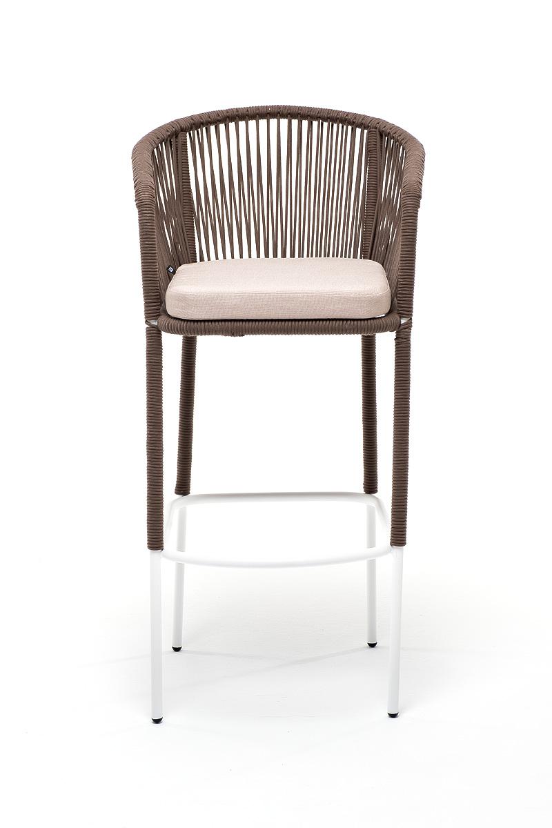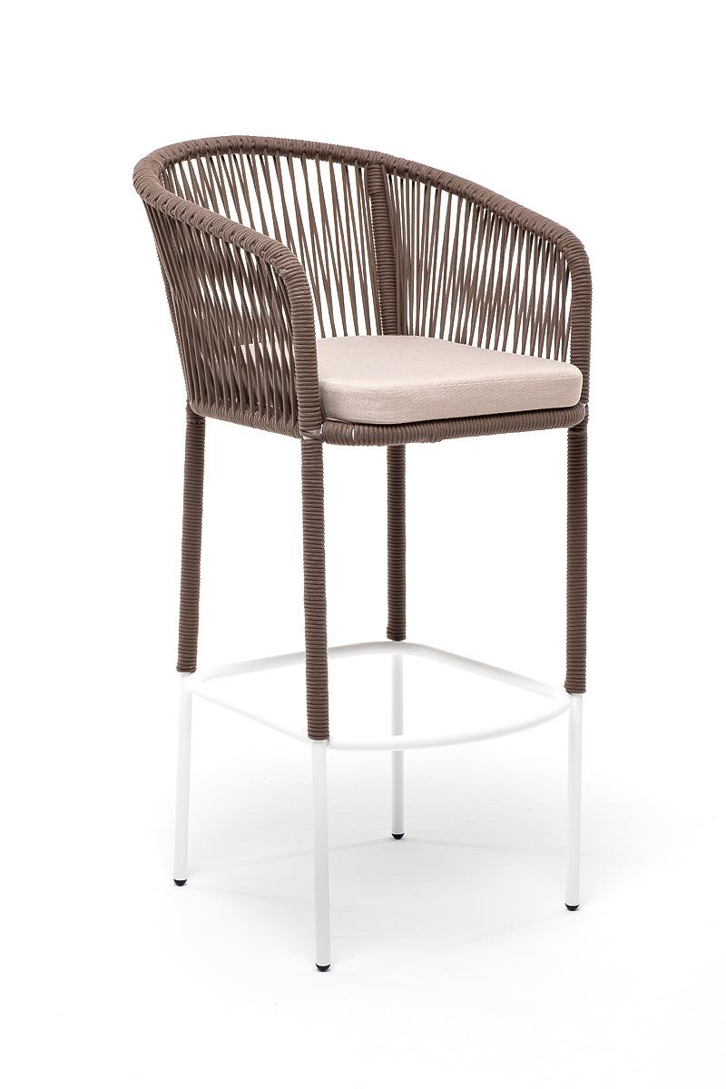 Стул 4SIS "Марсель" стул барный плетеный из роупа, каркас из стали белый муар, роуп коричневый круглый, ткань бежевая 052 арт. MAR-BCH-st001 W Mua brown(beige052)