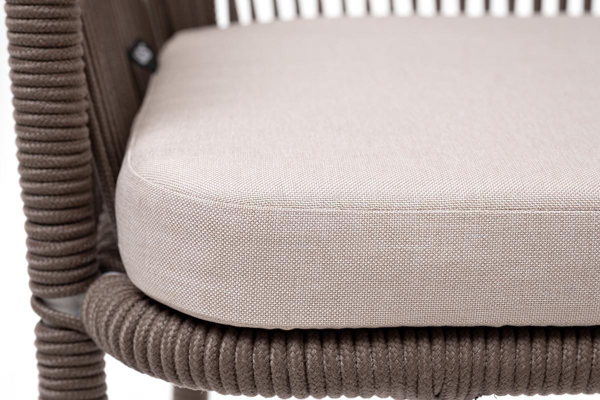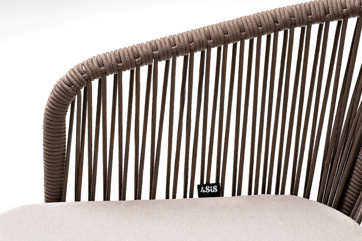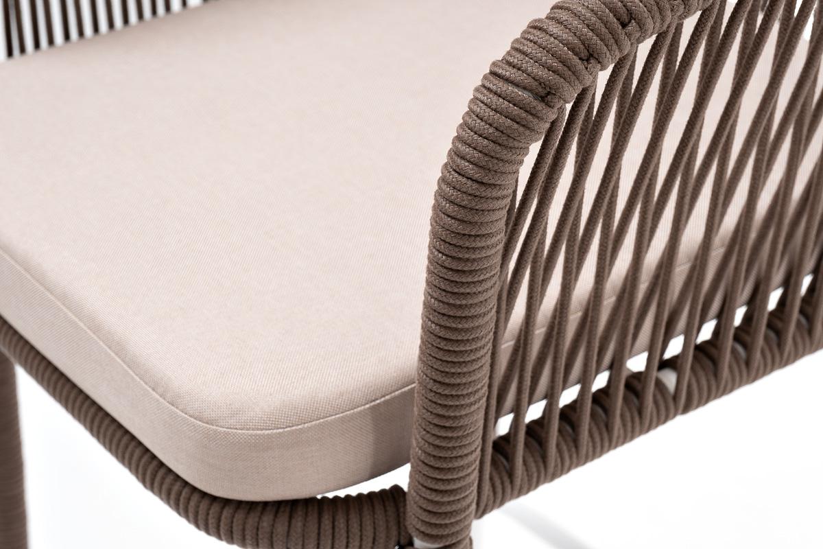 Стул 4SIS "Марсель" стул барный плетеный из роупа, каркас из стали белый муар, роуп коричневый круглый, ткань бежевая 052 арт. MAR-BCH-st001 W Mua brown(beige052)