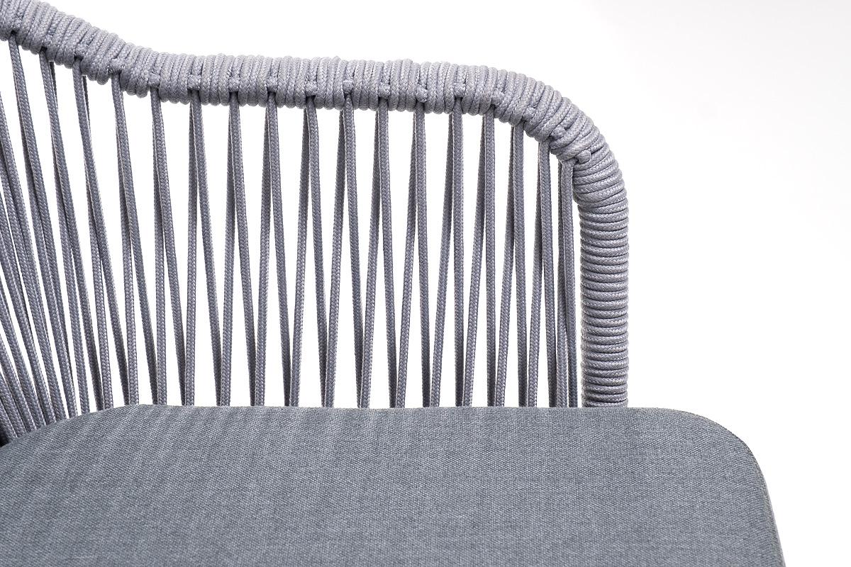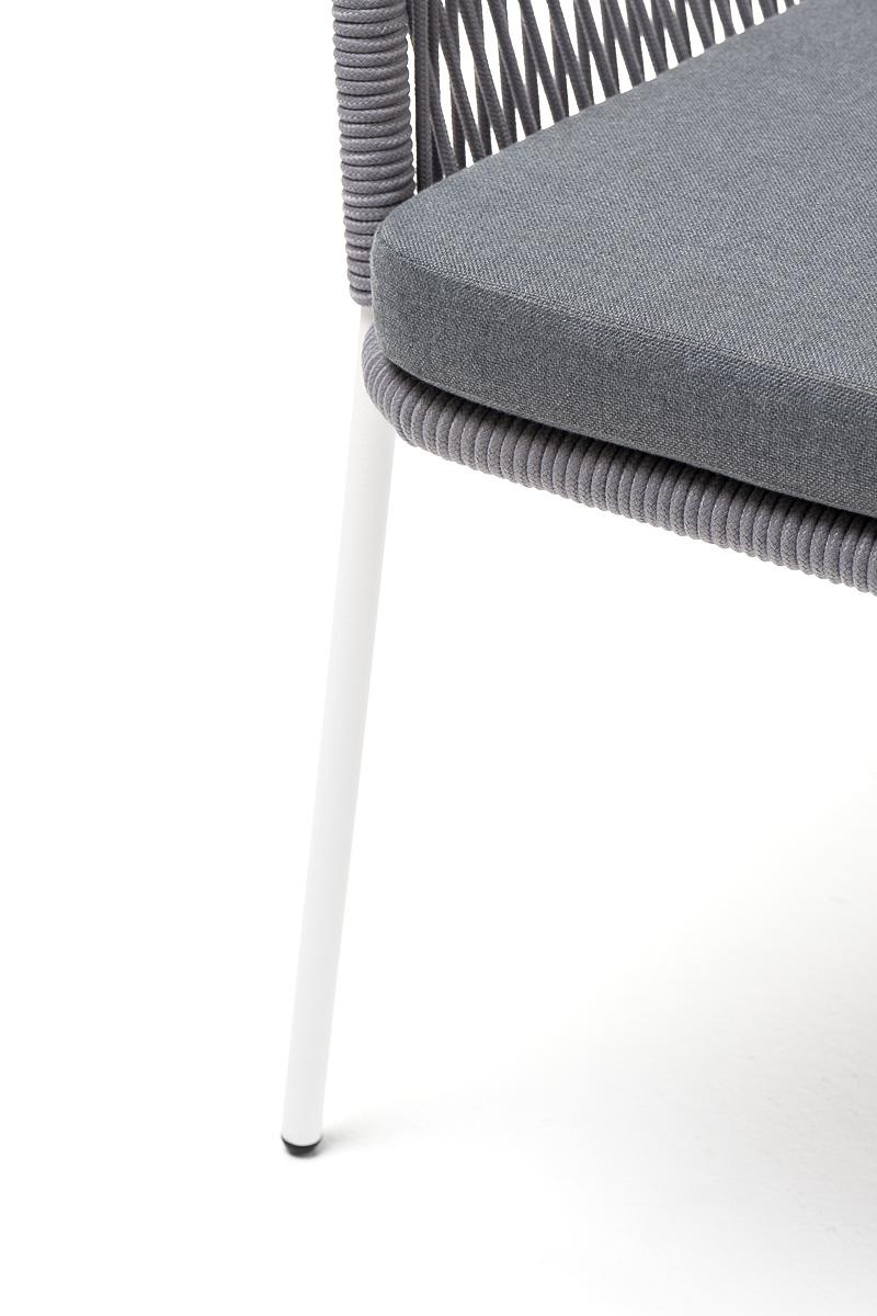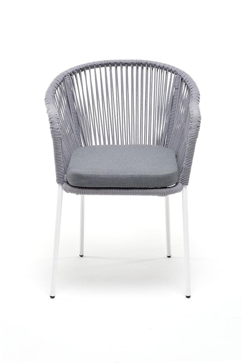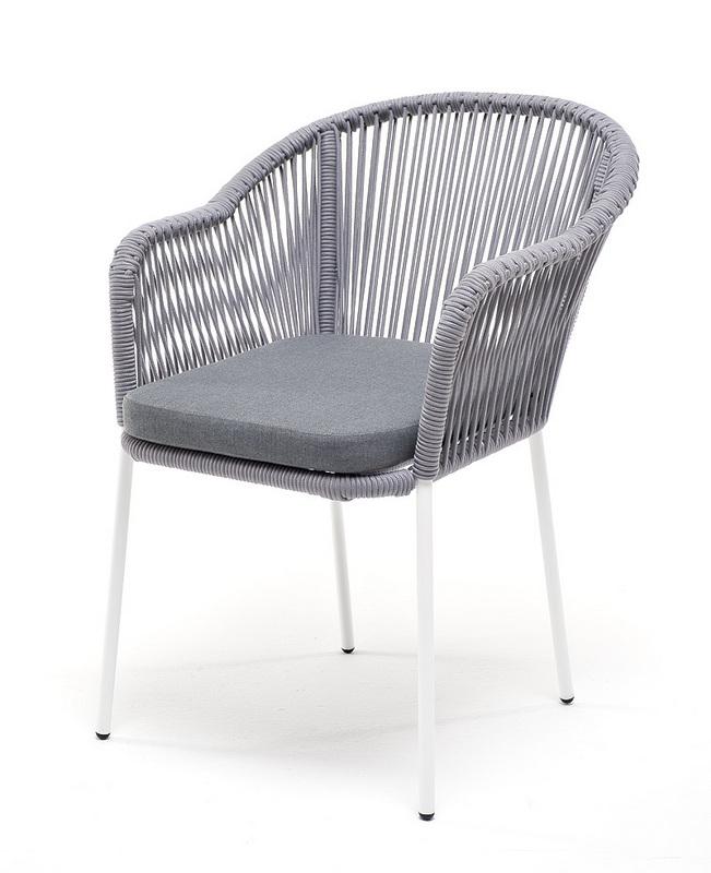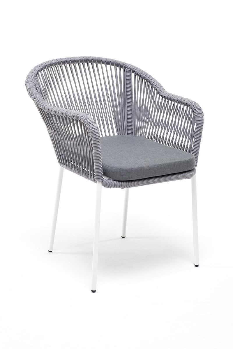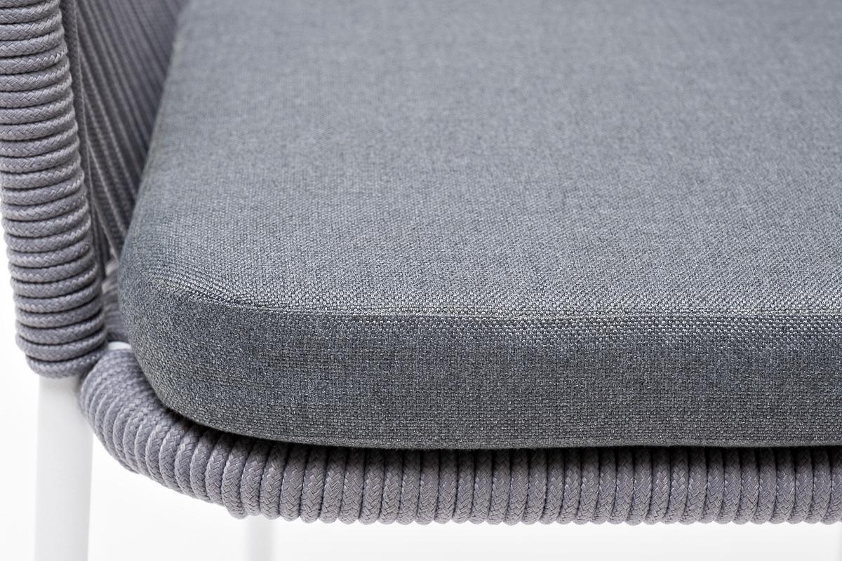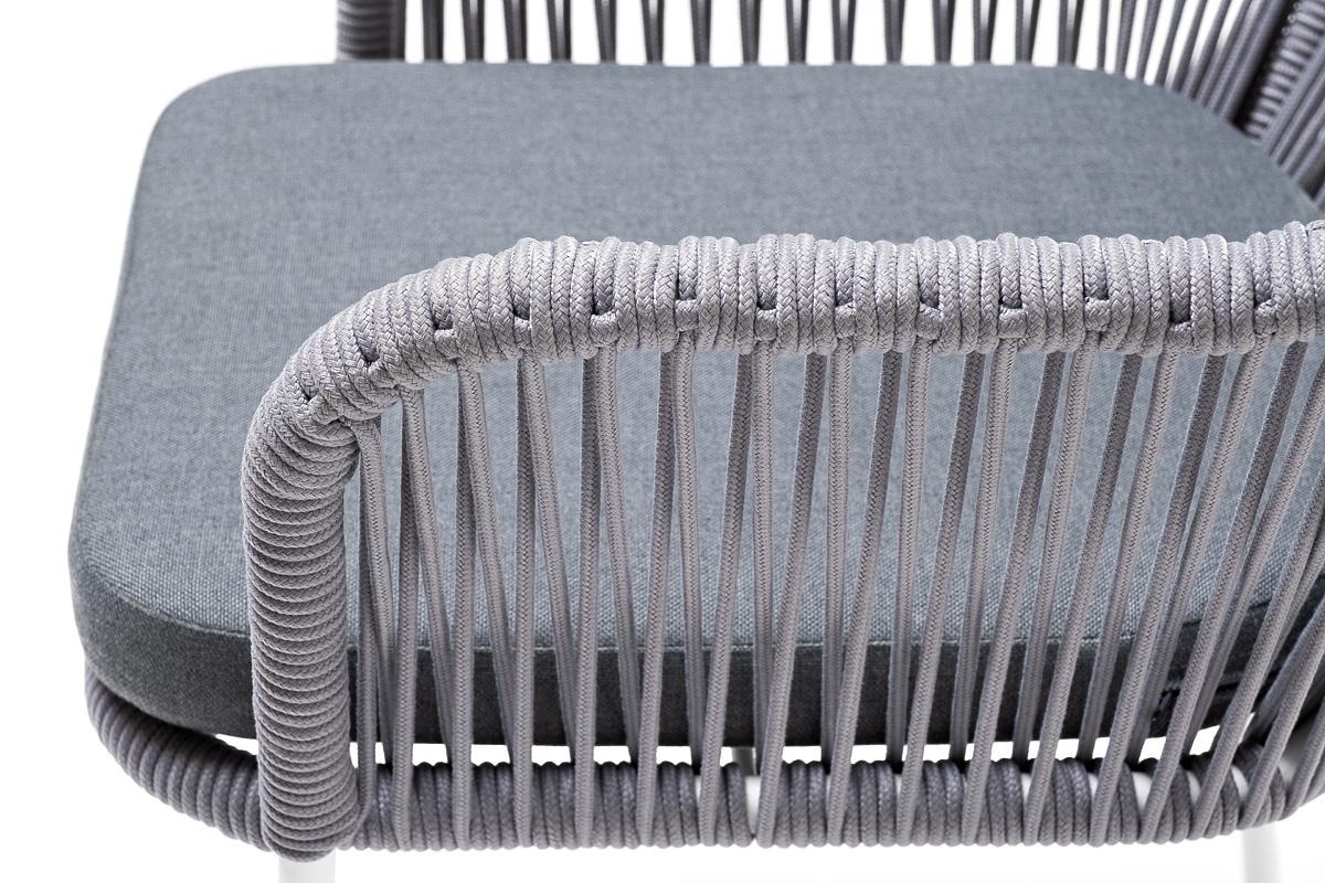 Стул 4SIS "Лион" стул плетеный из роупа, каркас из стали белый муар, роуп светло-серый круглый, ткань светло-серая арт. LIO-CH-st001 W Mua H-grey(H-gray)
