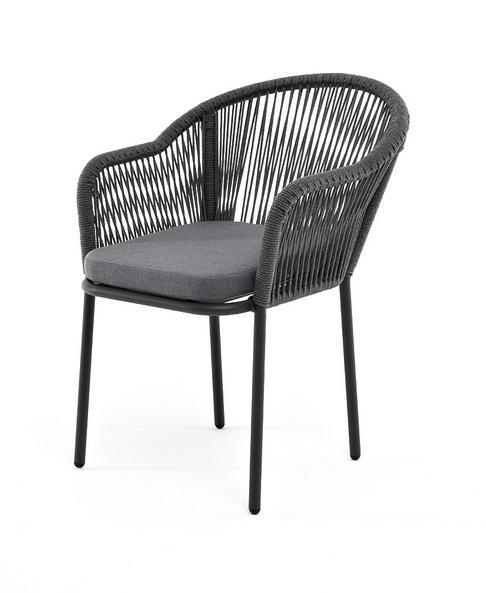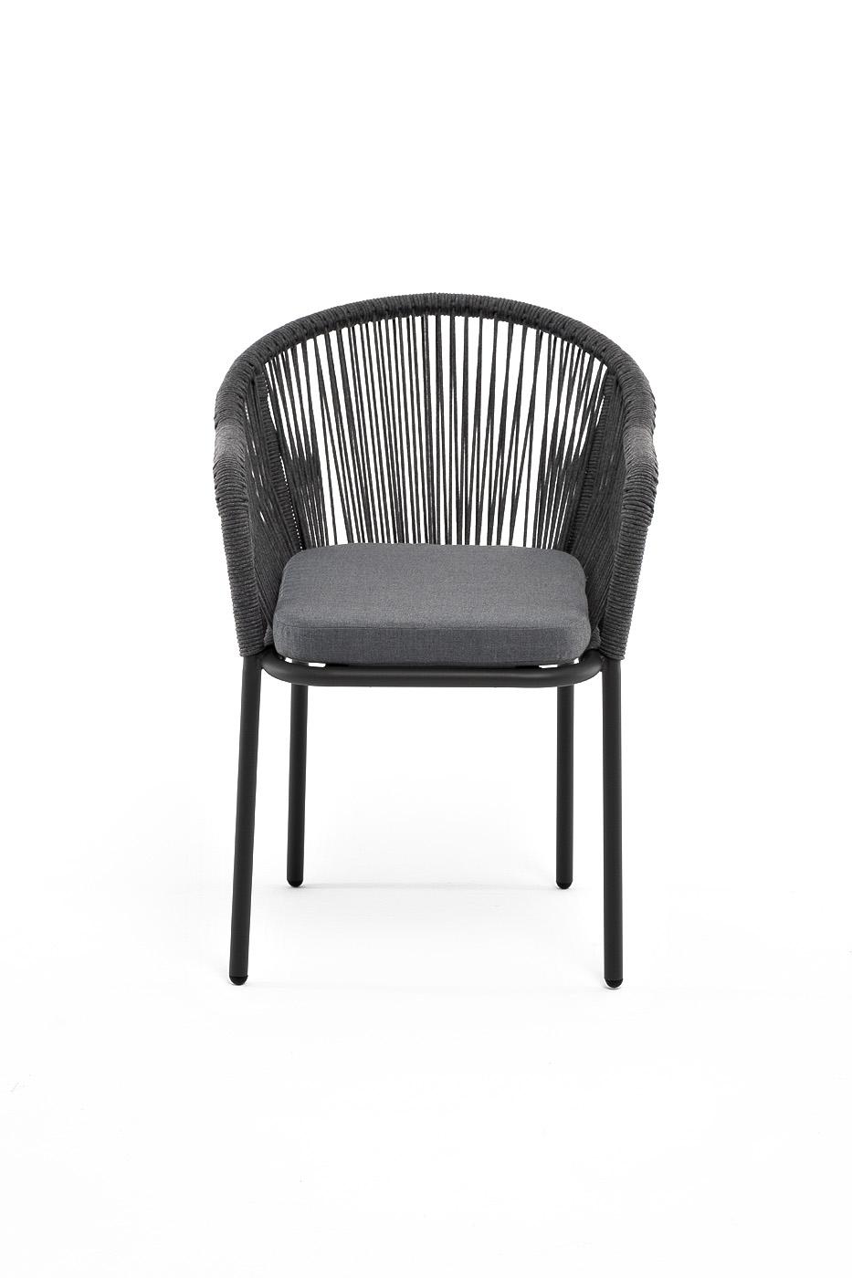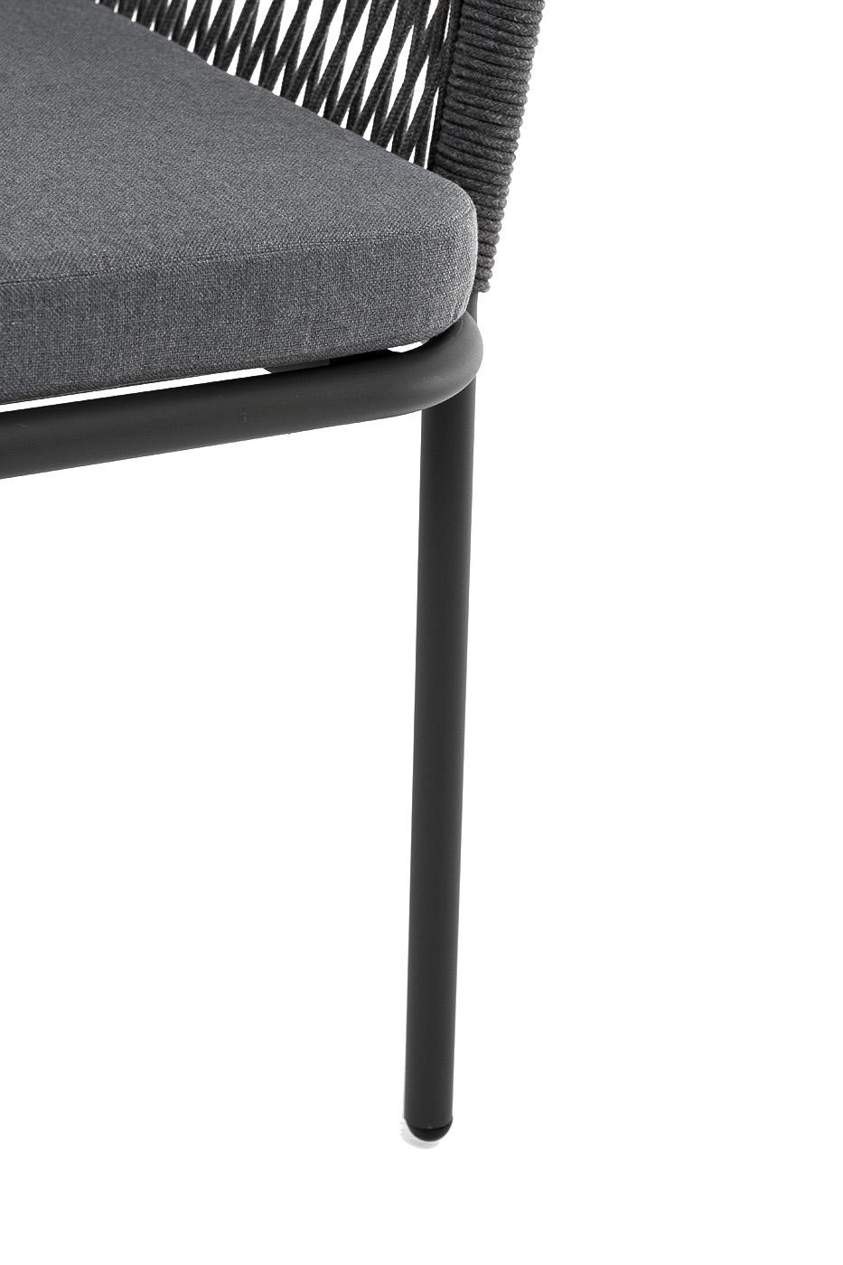Стул 4SIS "Лион" стул плетеный из роупа, каркас из стали темно-серый (RAL7024) шагрень, роуп темно-серый круглый, ткань серая арт. LIO-CH-001 RAL7022 Mua grey(gray017)