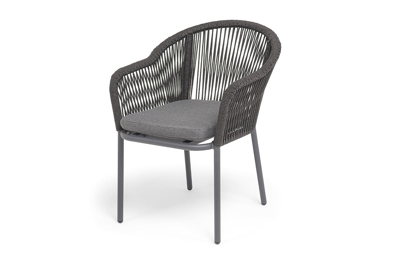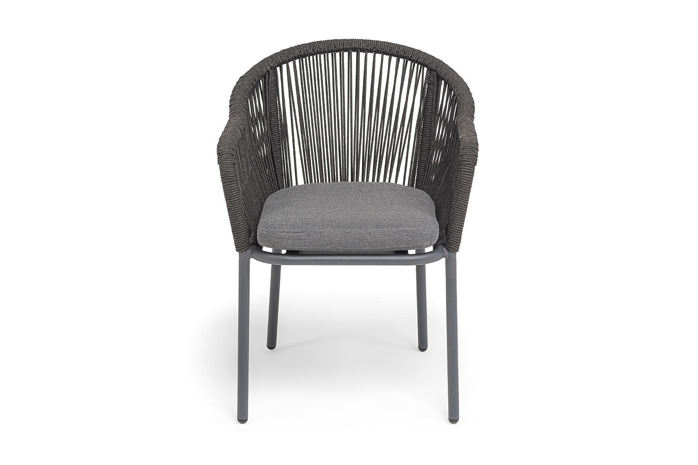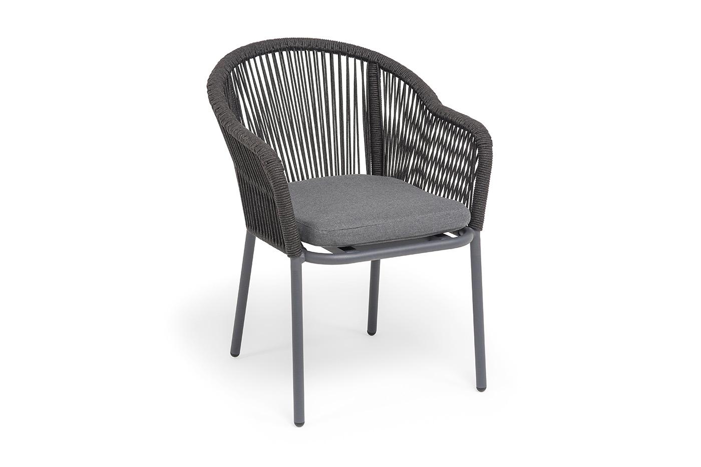 Стул 4SIS "Лион" стул плетеный из роупа, каркас из стали темно-серый (RAL7024) муар, роуп темно-серый круглый, ткань темно-серая 027 арт. LIO-CH-st001 RAL7024 Mua D-grey(D-gray027)