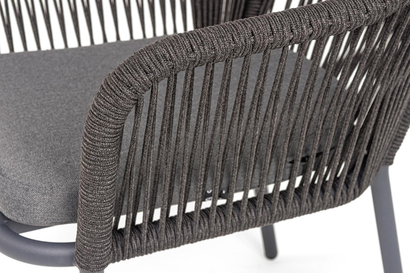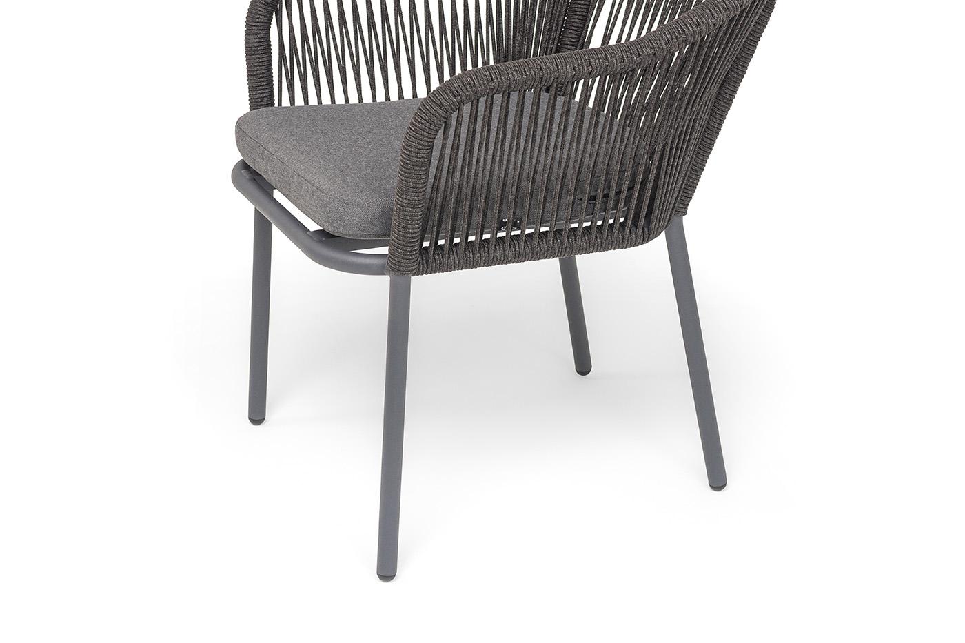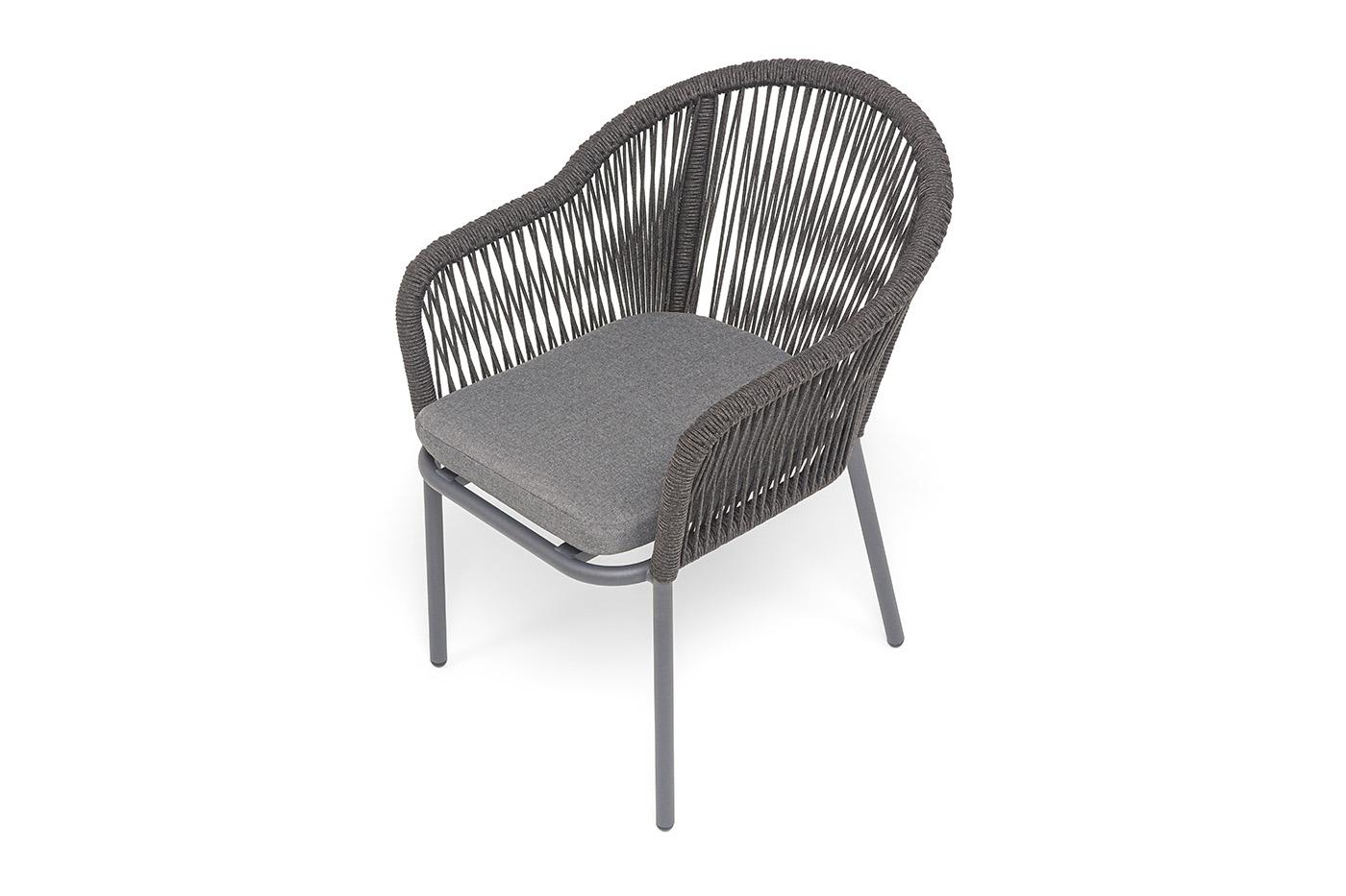 Стул 4SIS "Лион" стул плетеный из роупа, каркас из стали темно-серый (RAL7024) муар, роуп темно-серый круглый, ткань темно-серая 027 арт. LIO-CH-st001 RAL7024 Mua D-grey(D-gray027)