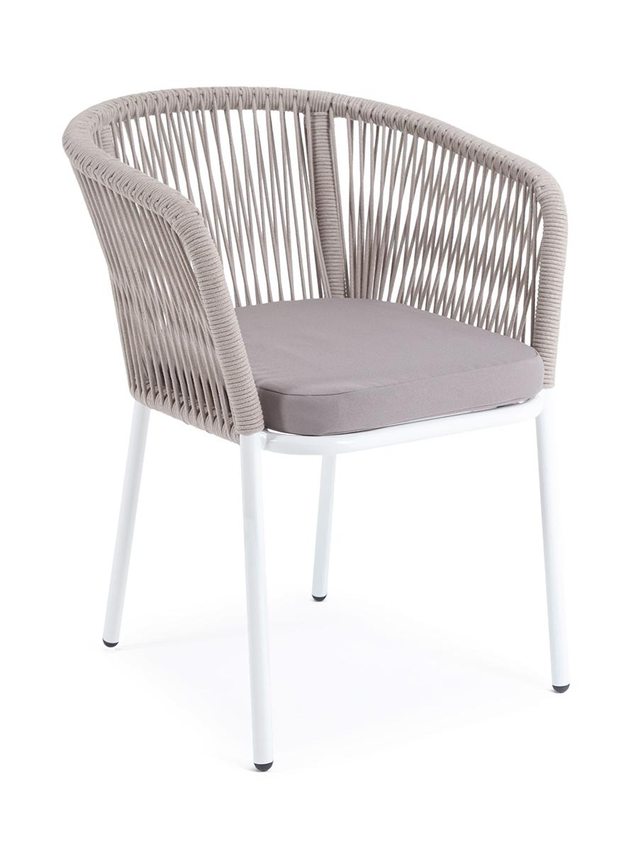 Стул 4SIS "Марсель" стул плетеный из роупа, каркас алюминий светло-серый (RAL7035) муар, роуп бежевый круглый, ткань бежевая 15052 арт. MAR-CH-001 RAL7035 Mua beige(beige15052)