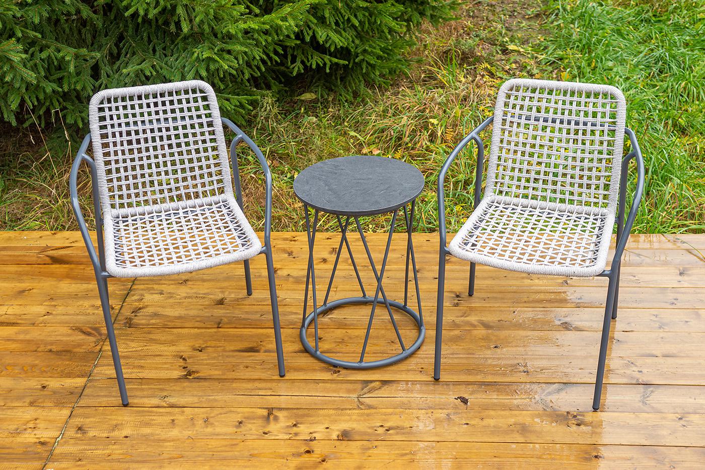 Стул «Тунис» — плетеная модель из роупа (полиэфирной веревки) с алюминиевым каркасом темно‑серого цвета (RAL7024). Компактные размеры — 575×600×800 мм позволяют удобно разместить стул как в небольшом кафе, так и на домашней террасе или в саду. Легкий и прочный каркас обеспечивает устойчивость конструкции, а плетение из роупа придает изделию стильный, современный вид и гарантирует комфорт при использовании.