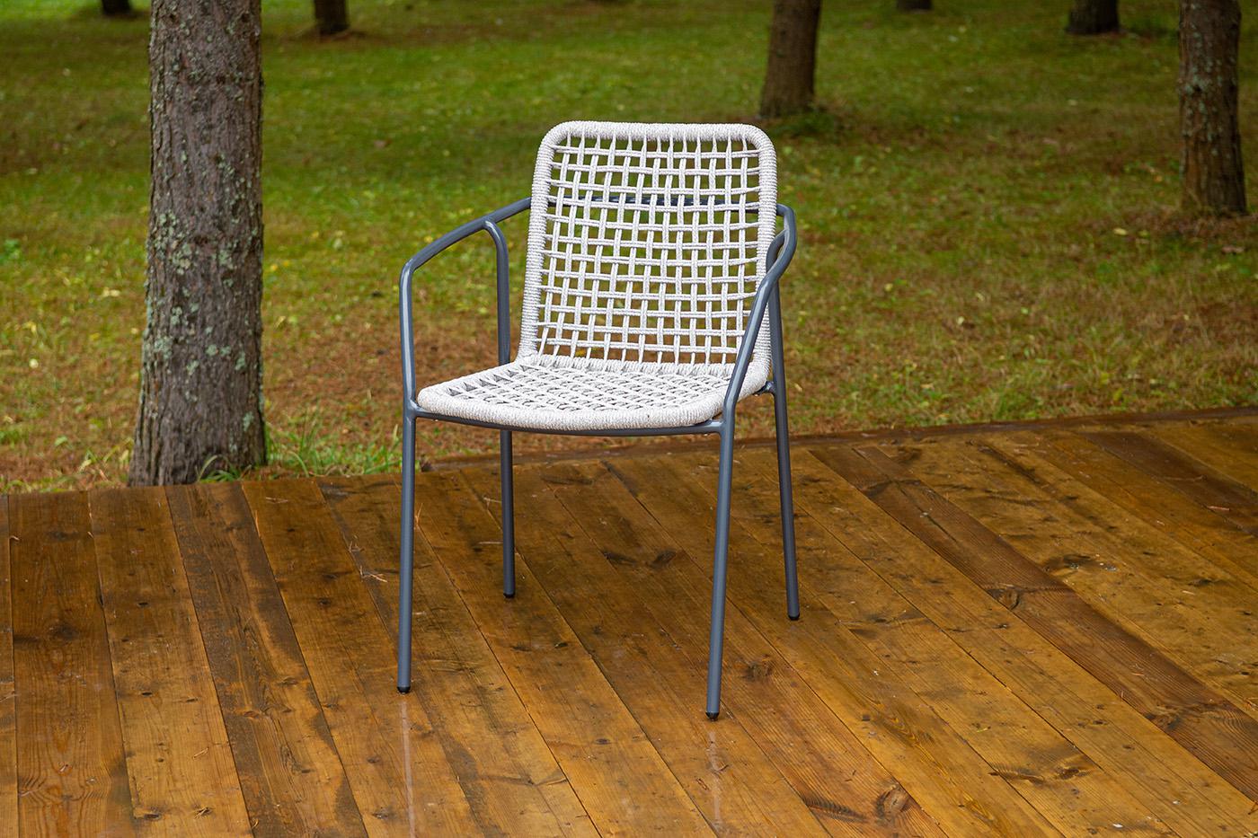 Стул 4SIS "Тунис" стул плетеный из роупа, каркас алюминий темно-серый (RAL7024), роуп светло-серый арт. 1-101270-RAL7024