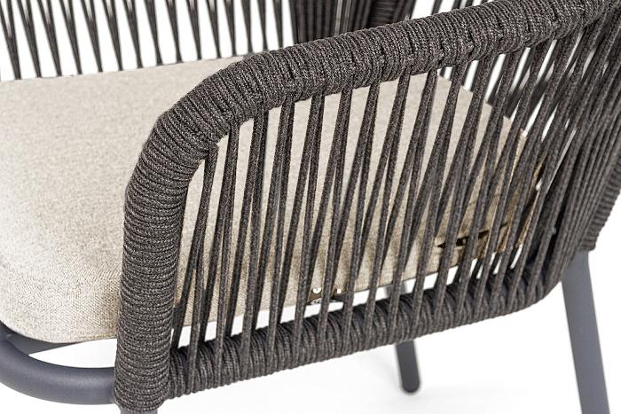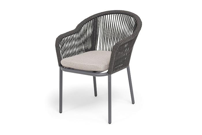 Стул 4SIS "Лион" стул плетеный из роупа, каркас алюминий темно-серый (RAL7024) муар, роуп темно-серый круглый, ткань бежевая 052 арт. LIO-CH-001 RAL7024 Mua D-grey(beige052)