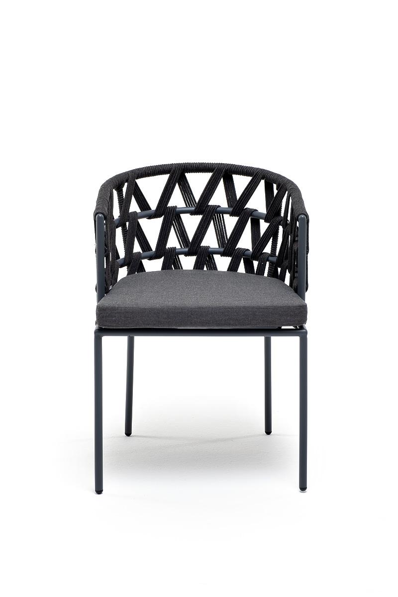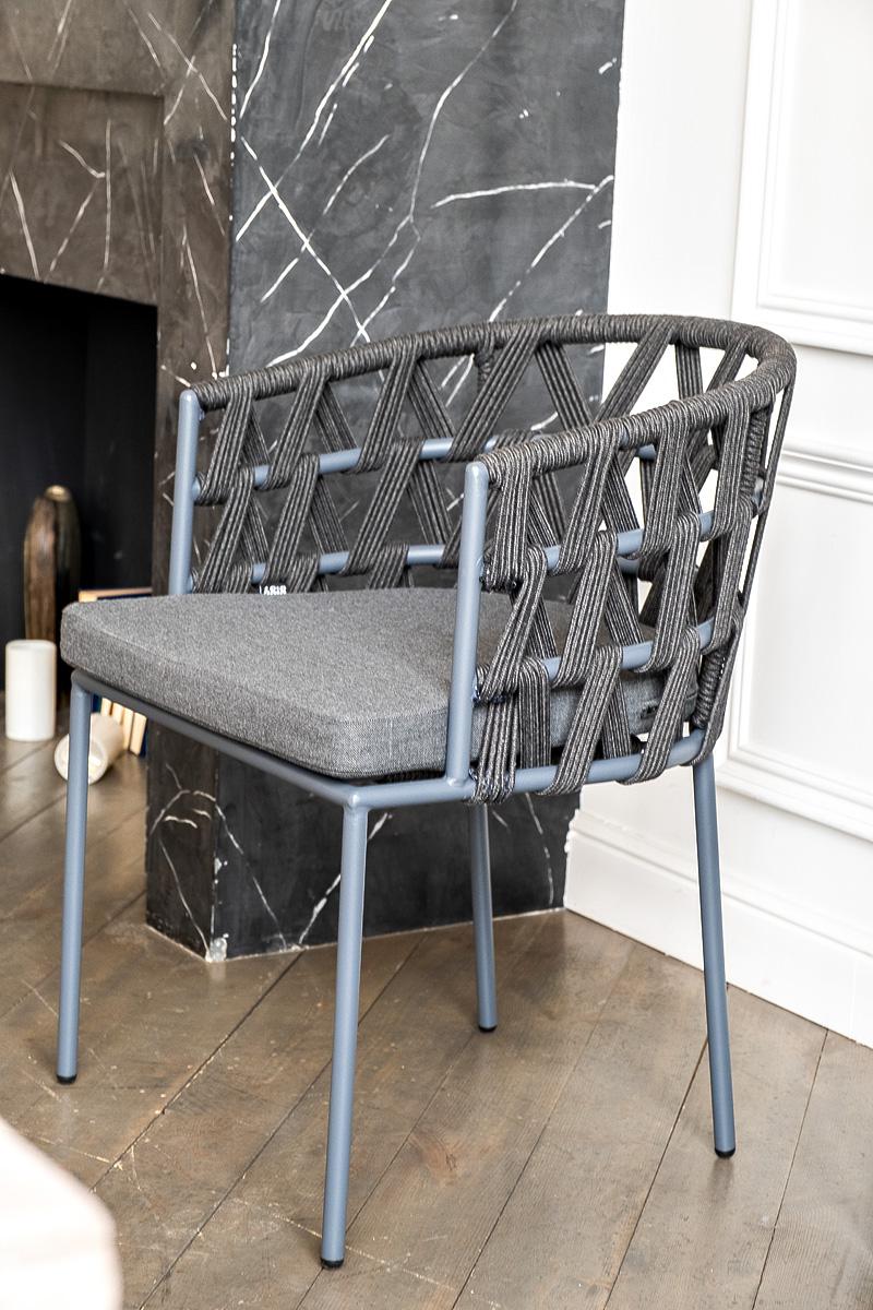 Стул 4SIS "Диего" стул плетеный из роупа, каркас из стали серый (RAL7022) муар, роуп темно-серый круглый, ткань темно-серая 027 арт. DIE-CH-st001 RAL7022 Mua D-grey(D-gray027)