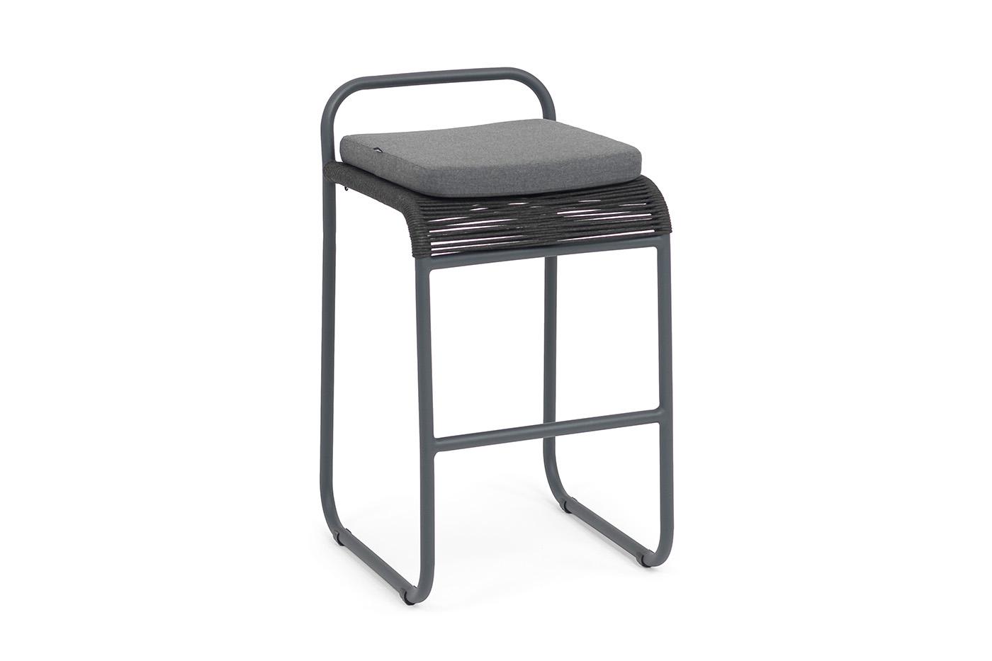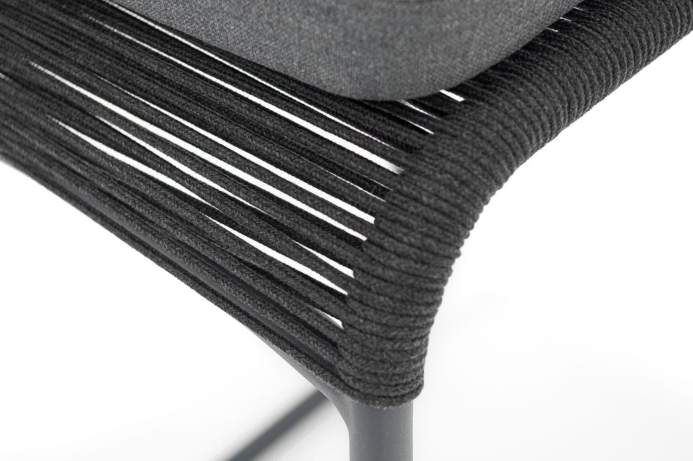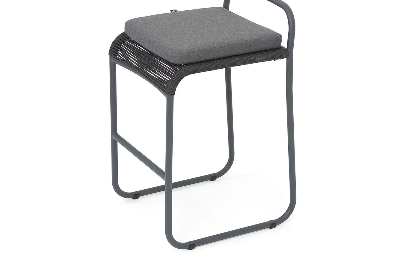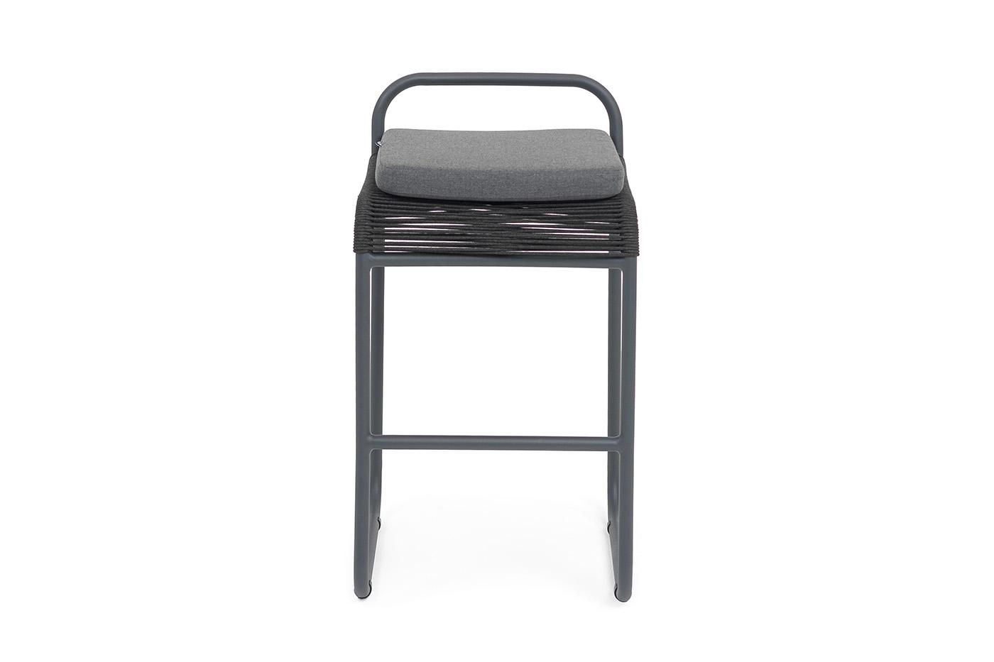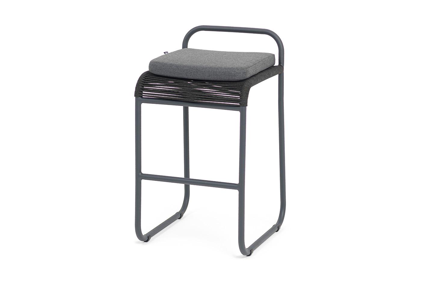 Стул 4SIS "Ането" стул барный плетеный из роупа, каркас алюминий темно-серый (RAL7024) муар, роуп темно-серый круглый, ткань темно-серая 027 арт. ANE-BCH-001 RAL7024 Mua D-grey(D-gray027)
