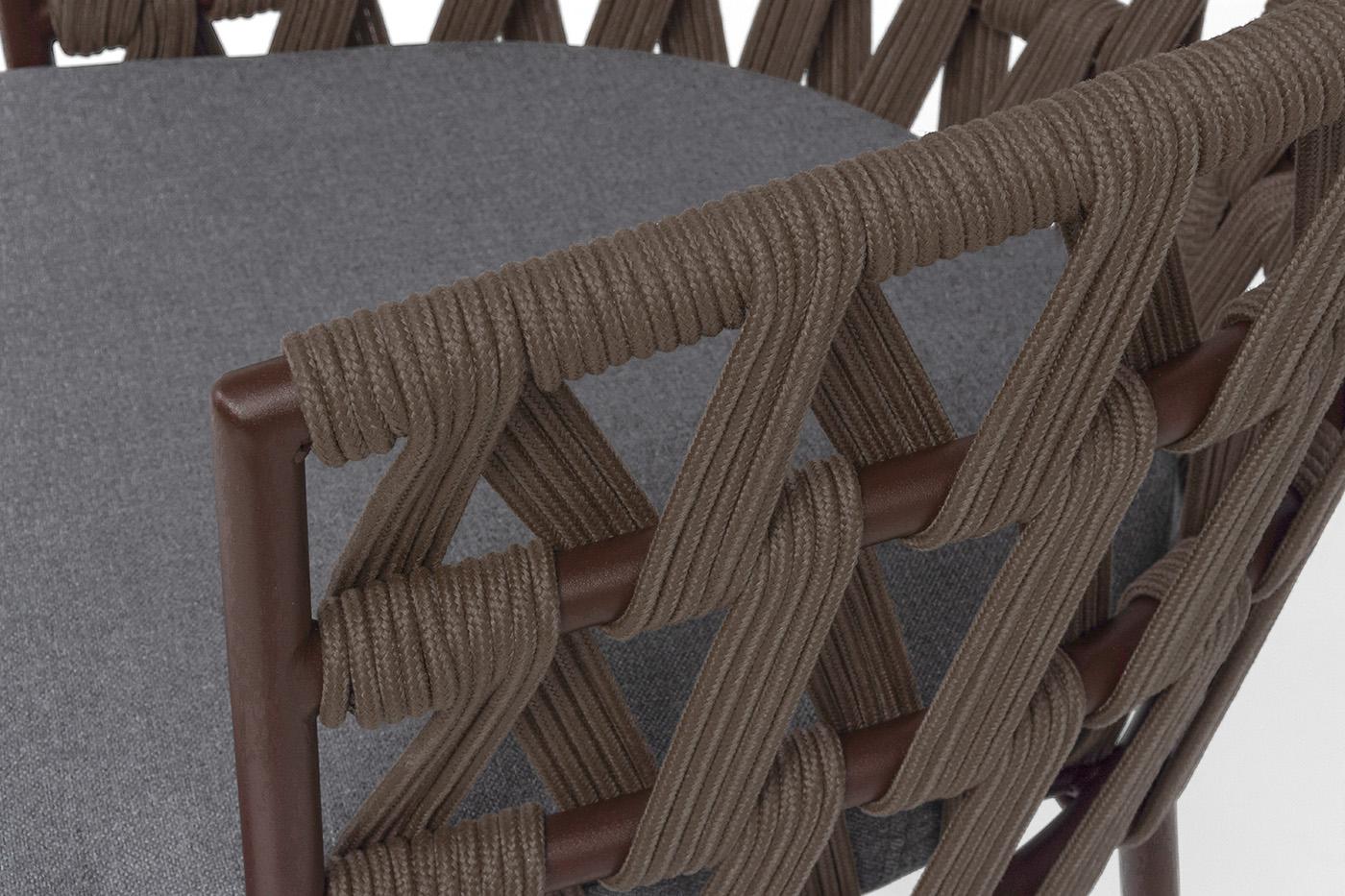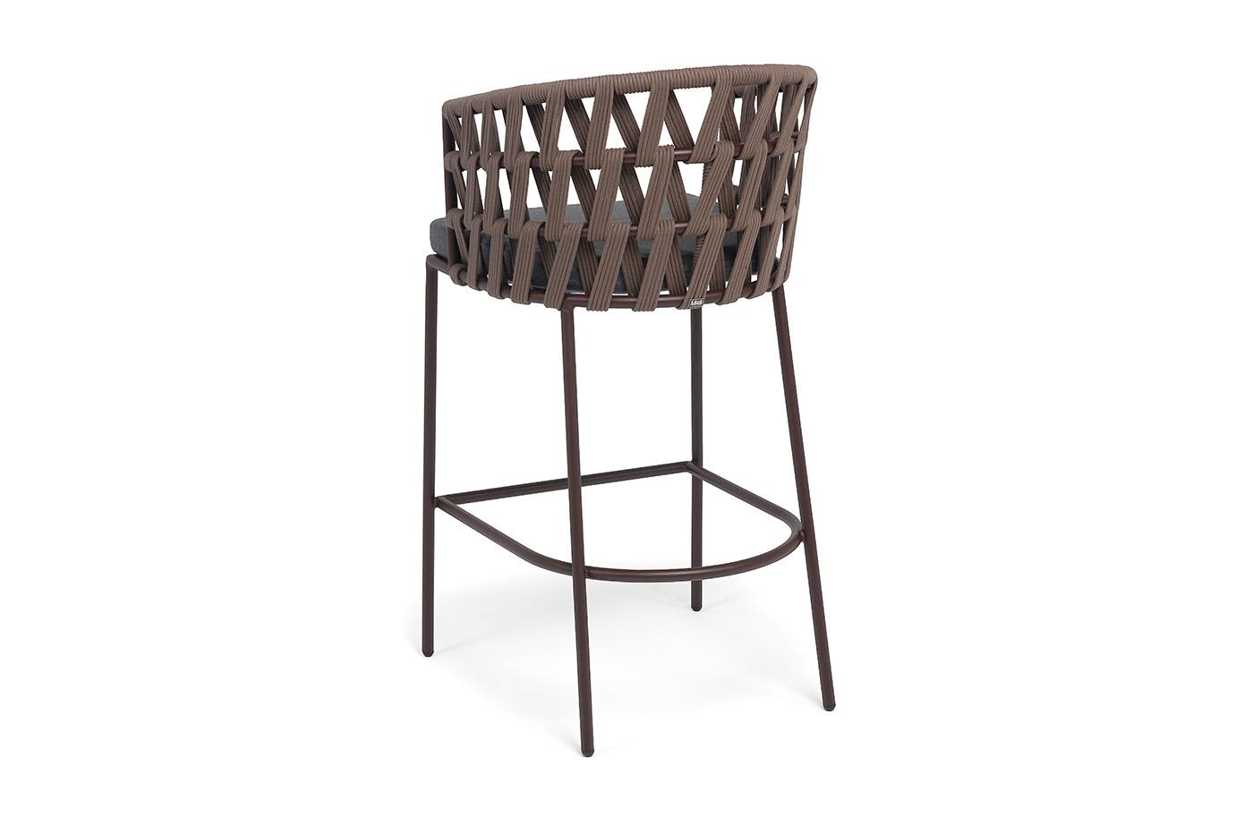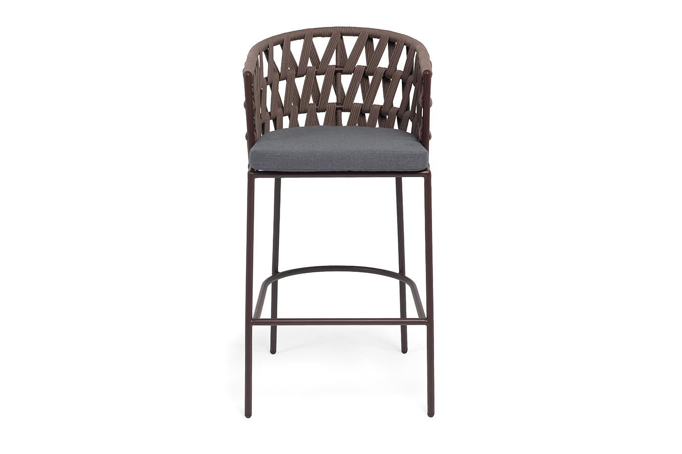 Стул барный «Диего» изготовлен из стального каркаса, окрашенного порошковой износостойкой краской коричневого цвета. Каркас вручную оплетен коричневым роупом - эластичными синтетическими лентами из высокопрочных полиэфирных волокон. В комплект входит подушка со съ`мным чехлом из 100% влагоотталкивающего полиэстера темно-серого цвета. Размер плетеного стула: хх мм.