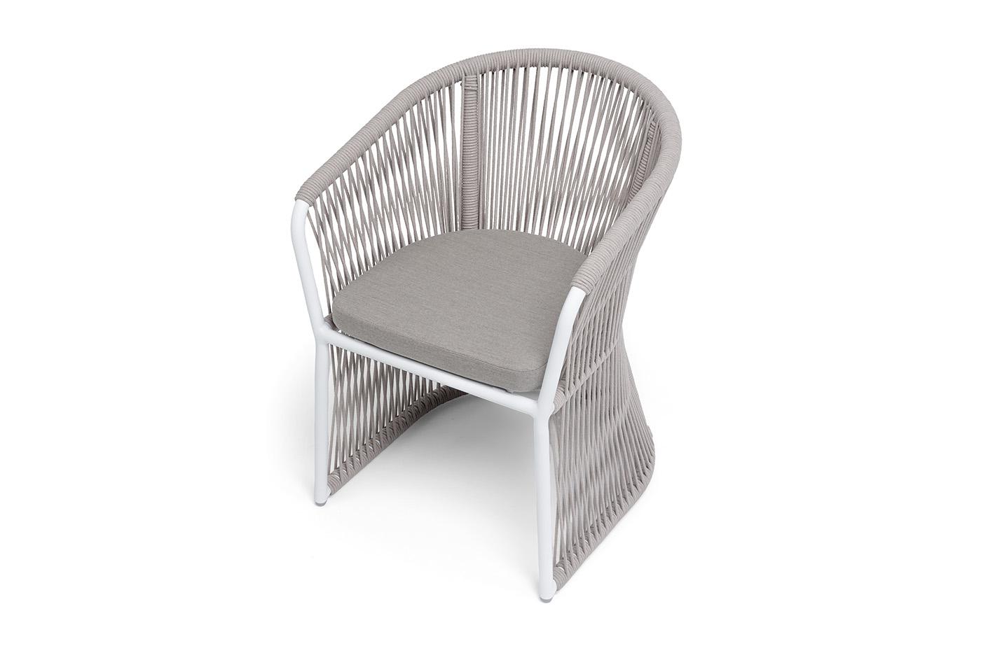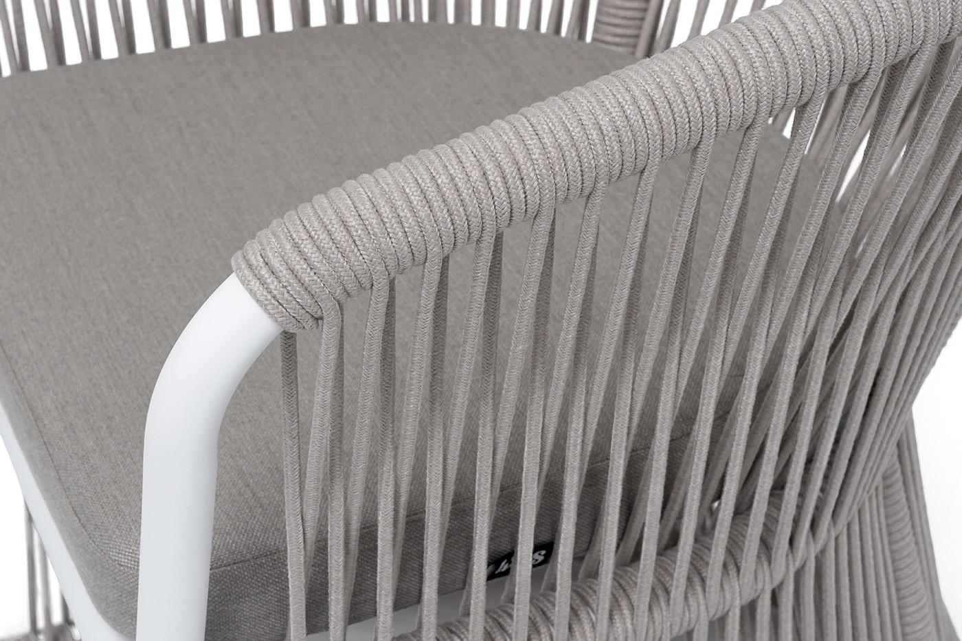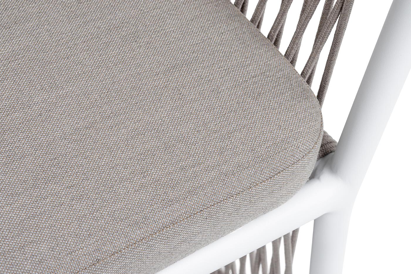 Стул 4SIS "Романо" стул плетеный из роупа, каркас алюминий белый муар, роуп бежевый круглый, ткань бежевая 15052 арт. ROM-CH-003 W Mua beige(beige15052)