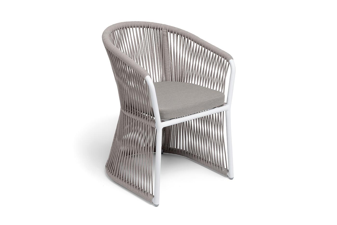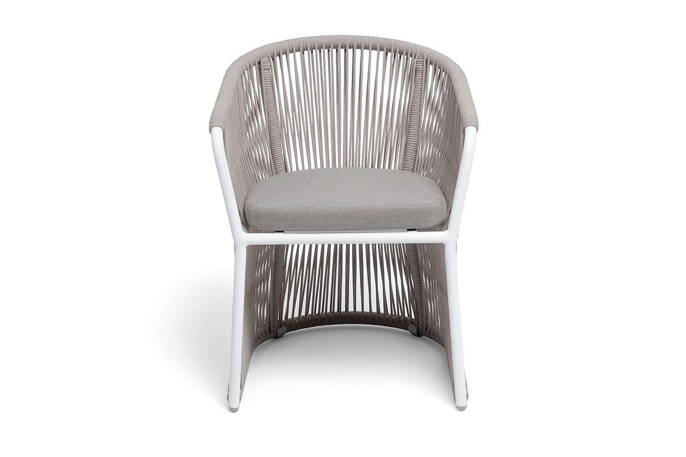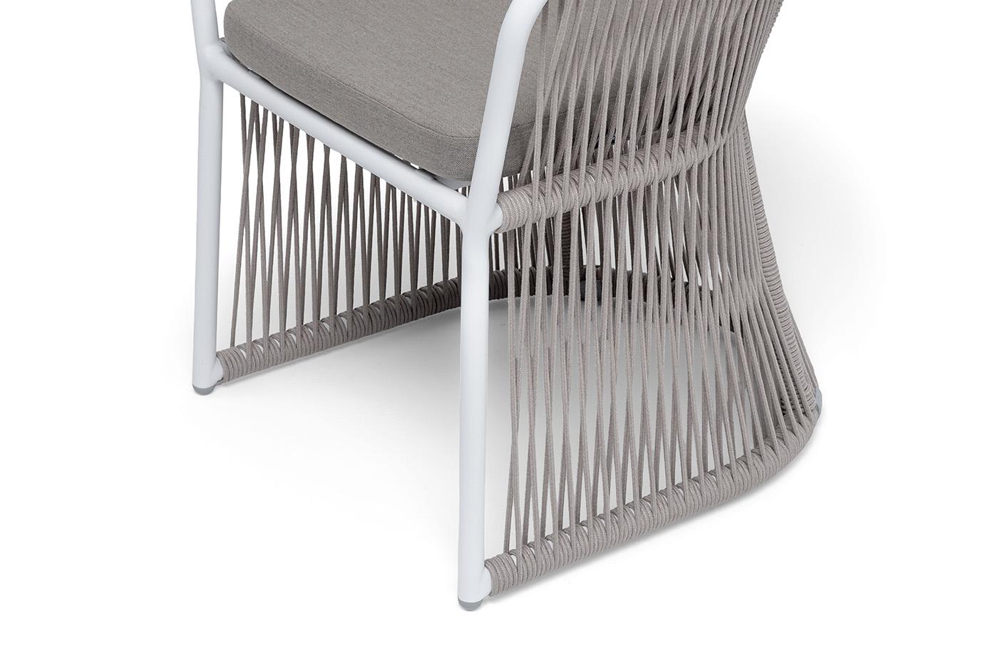 Стул 4SIS "Романо" стул плетеный из роупа, каркас алюминий белый муар, роуп бежевый круглый, ткань бежевая 15052 арт. ROM-CH-003 W Mua beige(beige15052)