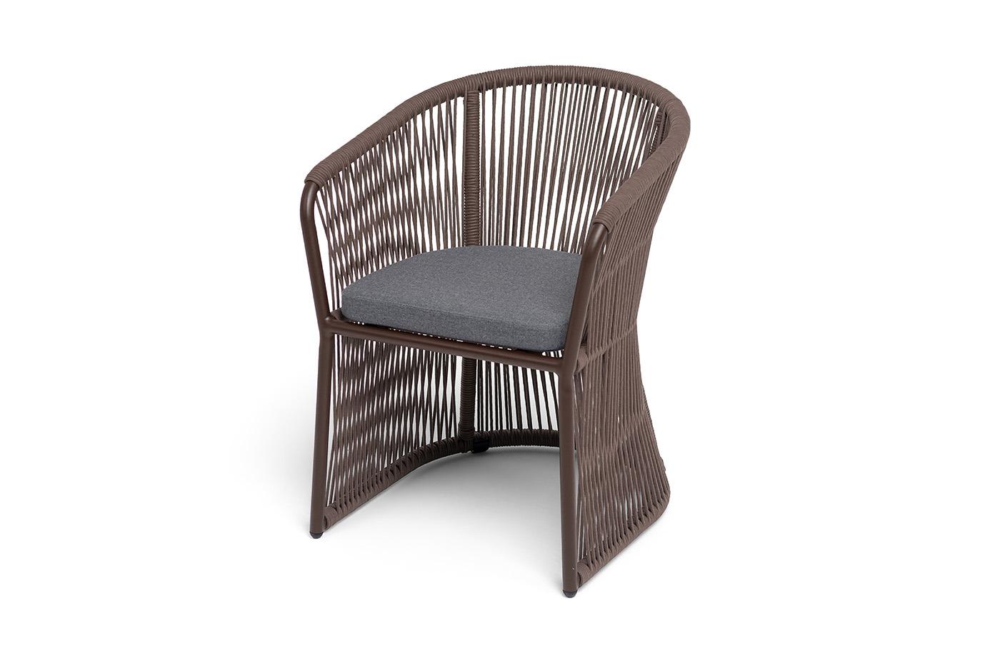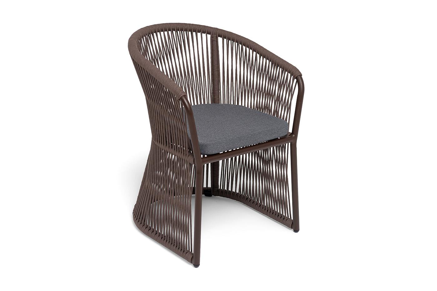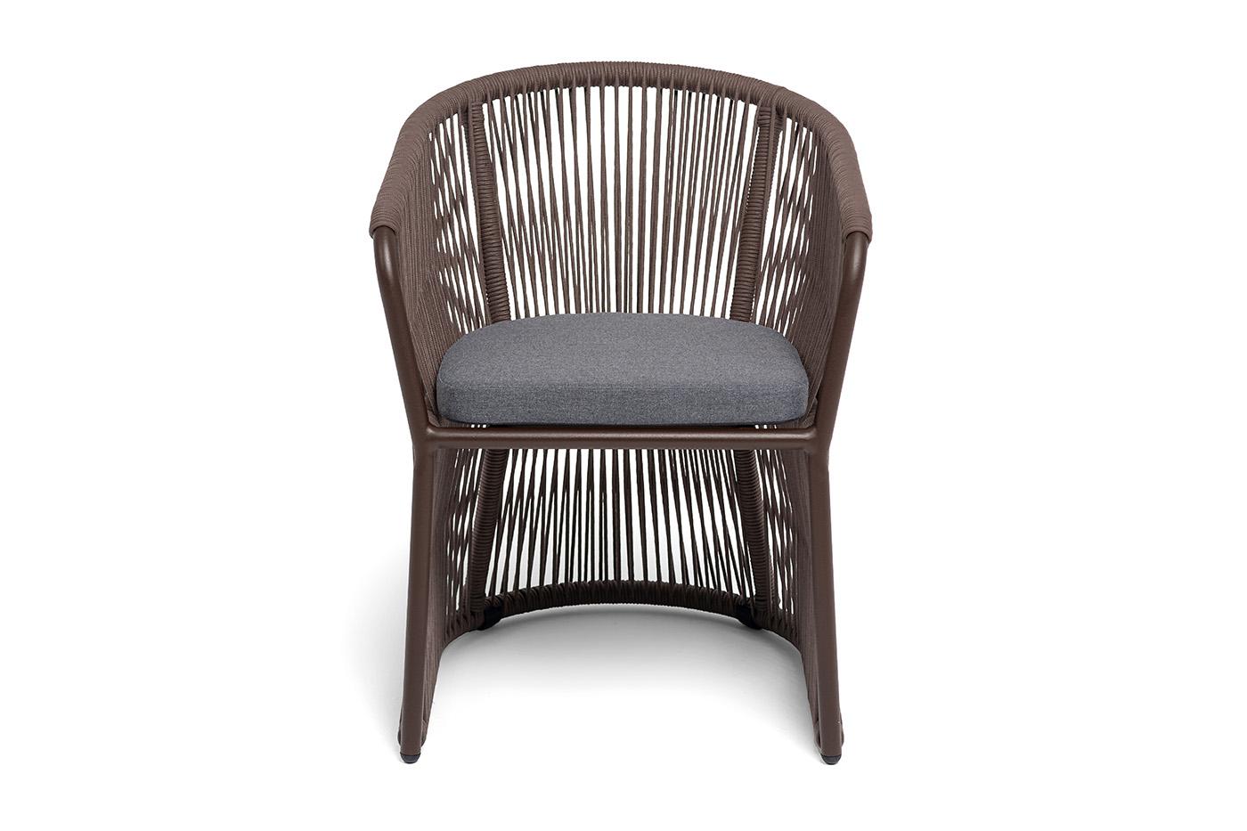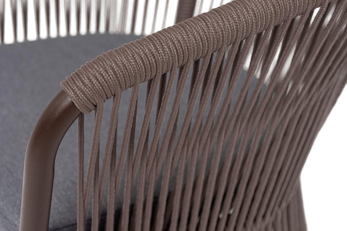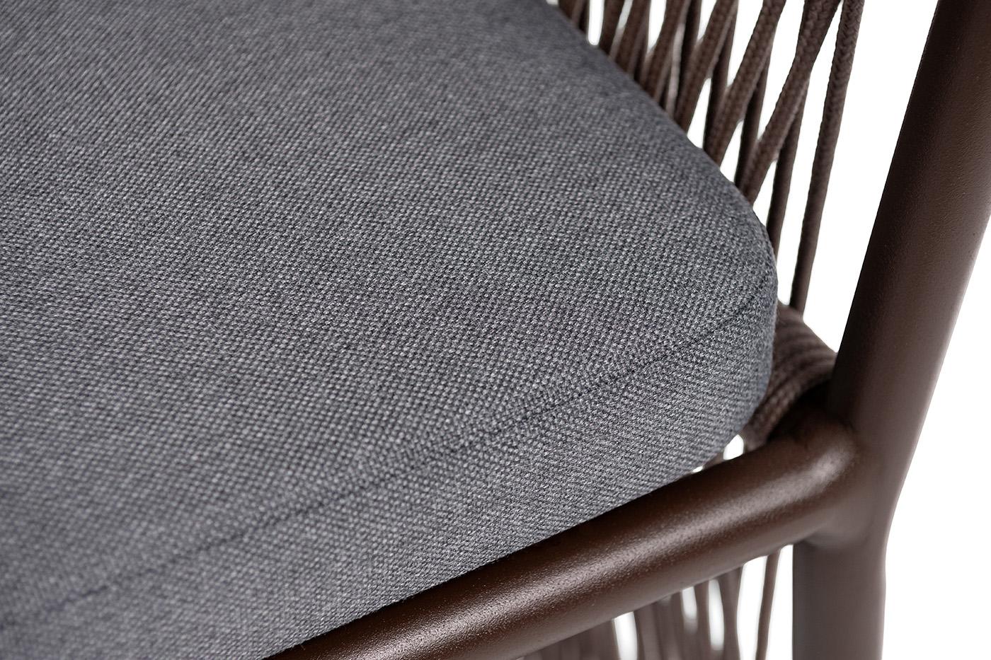 Стул 4SIS "Романо" стул плетеный из роупа, каркас алюминий коричневый (RAL8016) муар, роуп коричневый круглый, ткань темно-серая 027 арт. ROM-CH-003 RAL8016 Mua brown(D-gray027)
