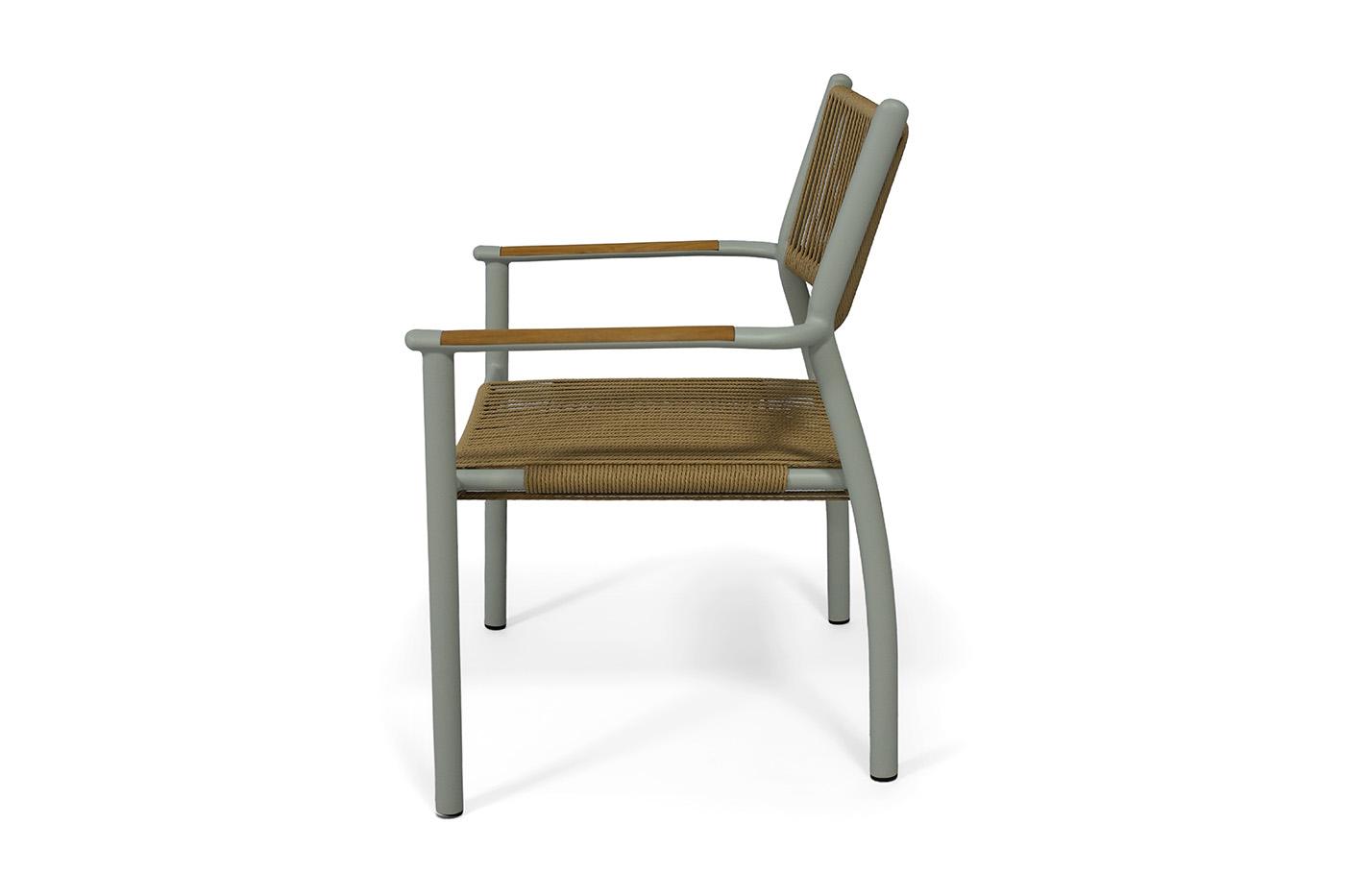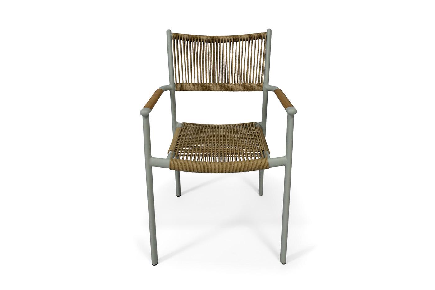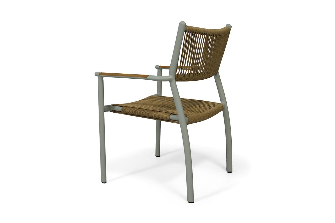 Стул «Витория», сочетающий в себе современные материалы и утонченный дизайн. Каркас стула выполнен из легкого, но прочного алюминия, обработанного порошковым покрытием в нежном светло-сером оттенке. Это покрытие не только придает стулу элегантный вид, но и обеспечивает устойчивость к воздействию окружающей среды, делая его идеальным выбором для использования на открытом воздухе. Подлокотники имеют вставки из тикового дерева, добавляют тепло и роскошь в общую композицию. Сиденье и спинка стул