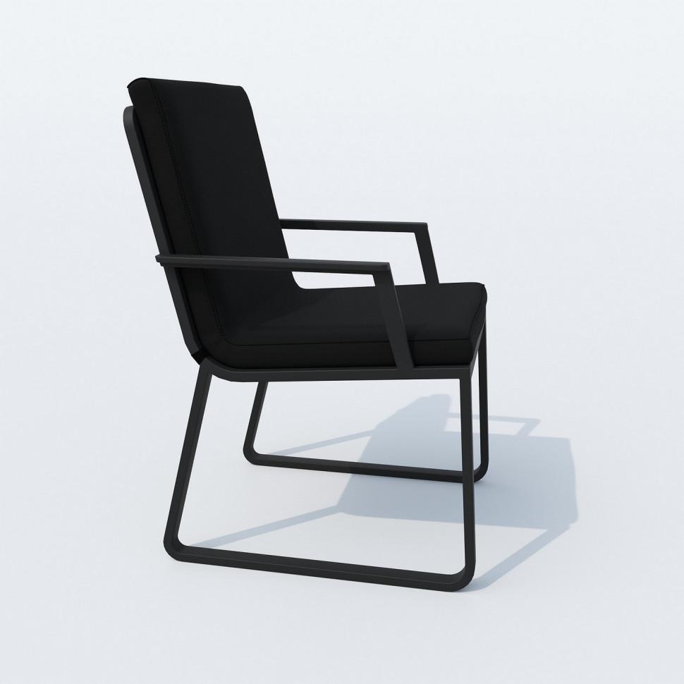 Материалы: всесезонный алюминий, ткань для улицы Габариты: Ш 60 * Г 60 * В 85 Цвет: каркас темно-серый карбон / подушка черная Особенности: с подлокотниками, единая подушка с креплением к каркасу,съемный чехол на "молнии"