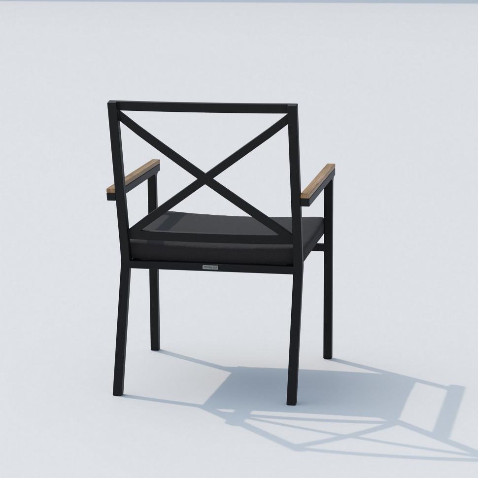 Материалы: всесезонный алюминий, ткань для улицы, тик Габариты: Ш 57 * Г 60 * В 86 Цвет: каркас темно-серый карбон / подушка антрацит Особенности: подлокотники из тика,съемный чехол на "молнии"
