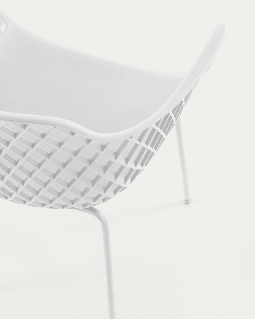Стул-кресло Quinn от фабрики La Forma (ex Julia Grup) – многоцелевое изделие, которое идеально подходит для дома или улицы. Стул-кресло Quinn по-современному практичное и абсолютно универсальное в дизайне. Эта модель одинаково хорошо будет смотреться как у вас дома, так и в общественном месте в помещении или на улице. Стул отлично гармонирует с любой мебелью. Он практичный и удобный. Это красивая базовая модель для вашей террасы, не сомневайтесь. Модель Quinn представлена в трех цветах – белом, желтом, темно-сером. Сиденье сделано из прочного пластика (полипропилен), который не портится от влаги, быстро сохнет за счет сетчатой структуры, легко очищается от загрязнений. Спинка плавно переходит в подлокотники, имеет дугообразную форму. Все это обеспечивает комфорт, позволяет дополнить сиденье подушкой или пледом. Опора с ножками сделаны из металла, покрыты порошковой краской для защиты от негативного влияния внешней среды. Ножки трубчатые, высотой 45 см. Они имеют пластиковые наконечники, которые улучшают устойчивость стула на неровной поверхности. Максимально допустимая нагрузка – 150 кг. Размеры: ширина – 60 см, высота – 80 см, глубина – 55 см, глубина сиденья – 40 см. Вес – 4,7 кг. Сборка не требуется.