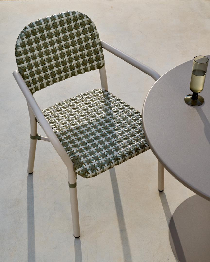 Стул La Forma (ех Julia Grup) Уличный стул Tuccia бежевого-зеленого цвета из алюминия и искусственного ротанга арт. 229375