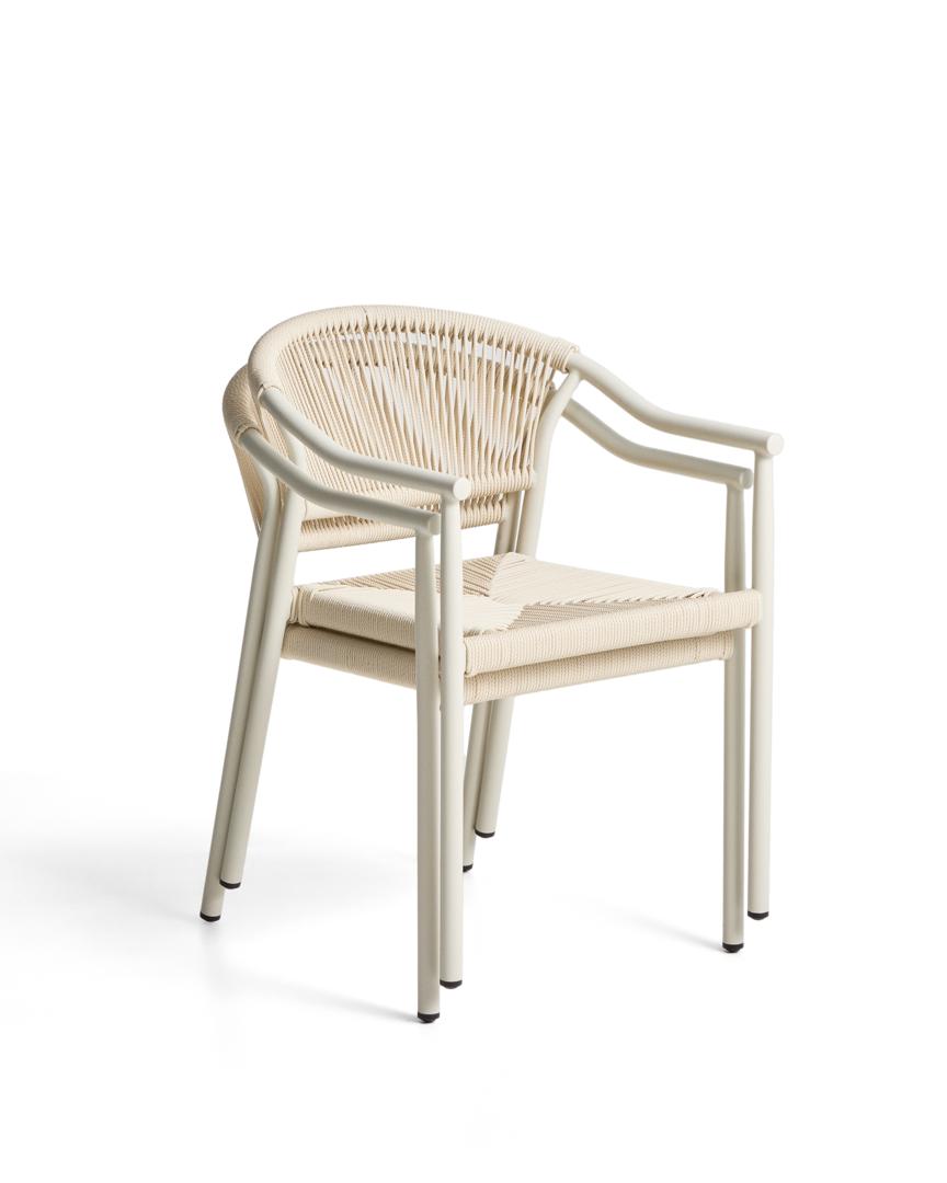Стул Livadia — это универсальный и вневременной предмет мебели, созданный для использования как в помещении, так и на открытом воздухе. Его алюминиевая конструкция сочетает в себе легкость и прочность, сохраняя свой внешний вид устойчивым к ржавчине, коррозии и ультрафиолетовым лучам. Спинка и сиденье сплетены вручную из синтетического шнура, что обеспечивает текстуру и комфорт. Штабелируемая конструкция позволяет легко хранить стул, когда он не используется, а защитные накладки на ножках предохраняют пол.