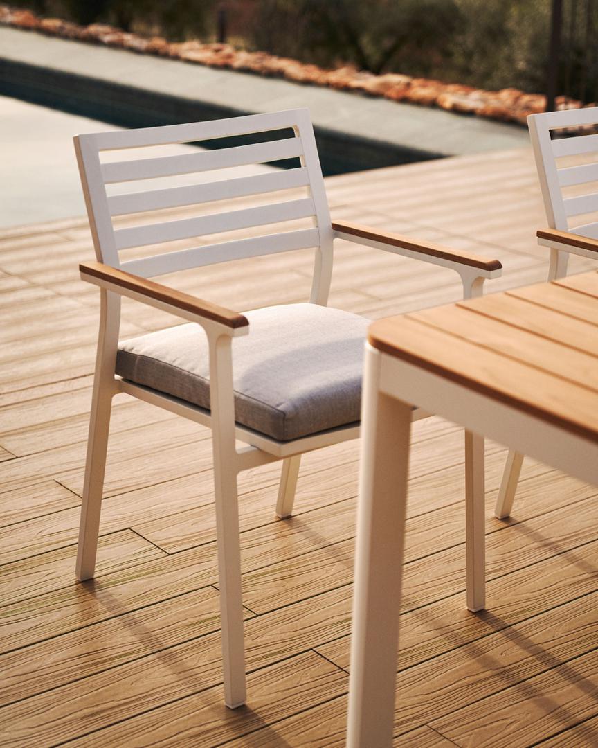 Стул La Forma (ех Julia Grup) Bona Уличный стул из алюминия в белой отделке и массива тикового дерева арт. 156867