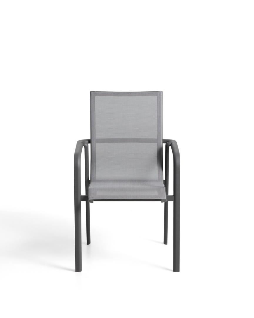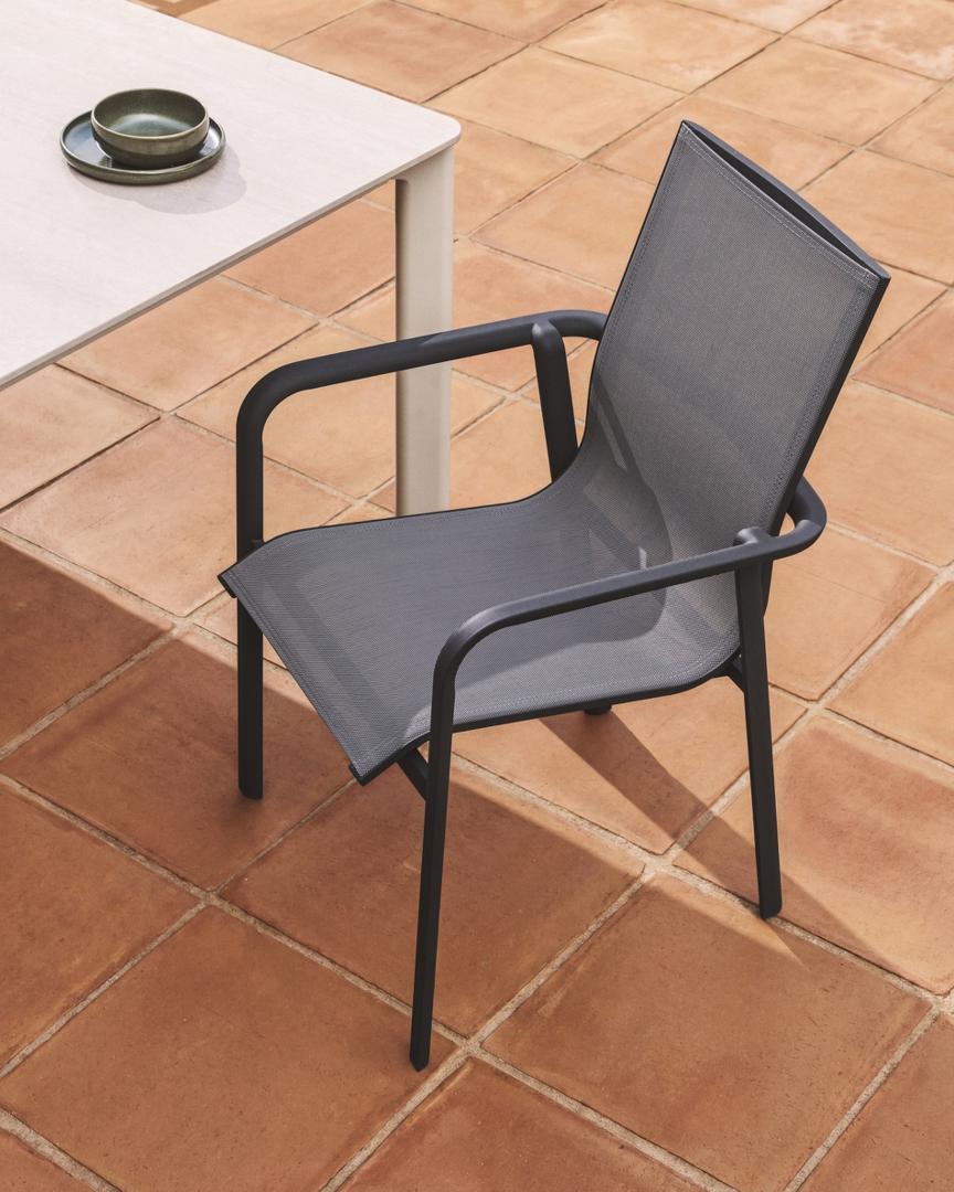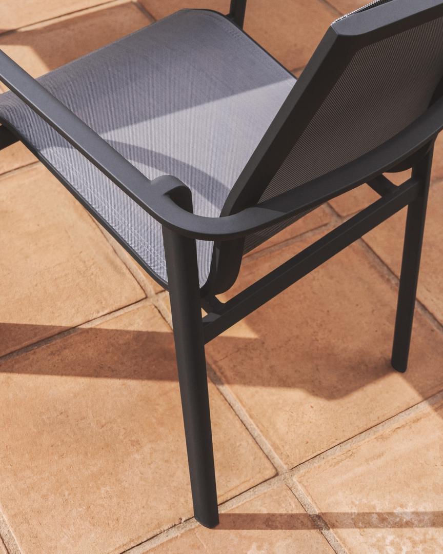 Стул Canea сочетает в себе легкость, прочность и комфорт. Его алюминиевая конструкция устойчива к ржавчине, коррозии и воздействию солнечных лучей, сохраняя свой внешний вид на протяжении длительного времени. Сиденье и спинка изготовлены из текстелина — дышащей синтетической ткани, обеспечивающей упругость и комфорт даже после длительного использования. Штабелируемая конструкция облегчает хранение стула, когда он не используется, а ножки оснащены пластиковыми защитными накладками для защиты пола и поддержания поверхностей в хорошем состоянии.