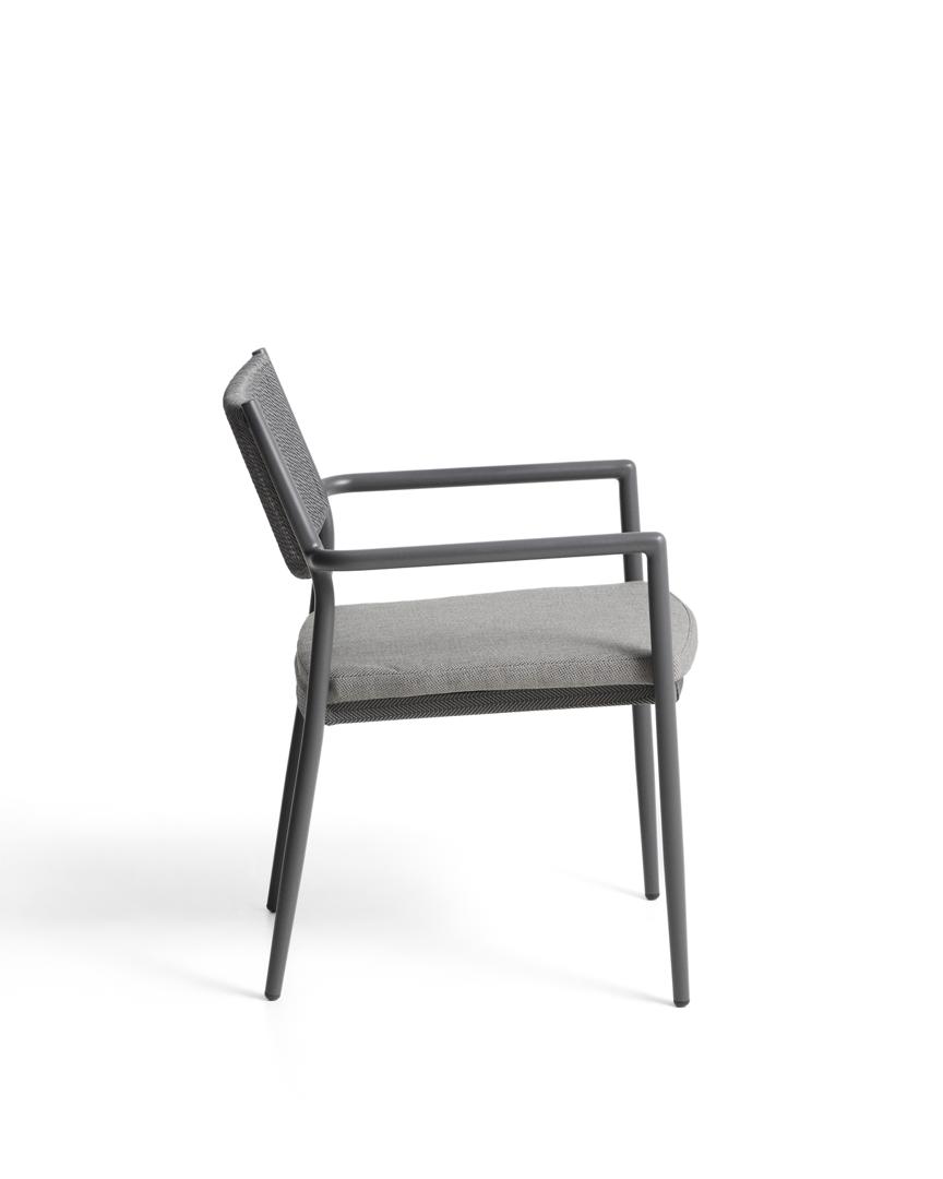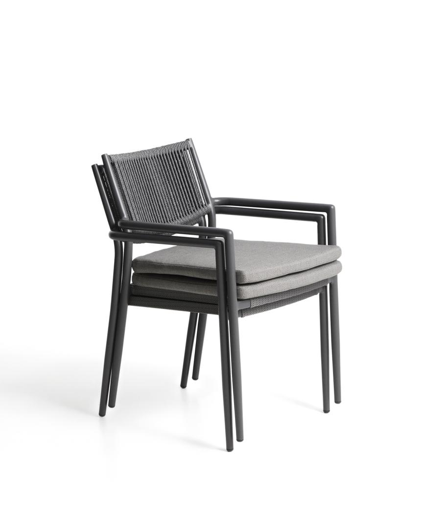 Стул Argasi сочетает в себе легкую конструкцию, прочные материалы и сдержанный дизайн, подходящий как для использования в помещении, так и на открытом воздухе. Его конструкция выполнена из алюминия — прочного материала, который не ржавеет и выдерживает воздействие солнечного света и влаги. Спинка сплетена вручную из синтетического шнура, предназначенного для использования на открытом воздухе, и имеет отделку, придающую ей теплоту и текстуру. Сиденье включает в себя подушку, повышающую комфорт, которую можно легко снять для хранения в дождливую погоду. Стул Argasi штабелируется.