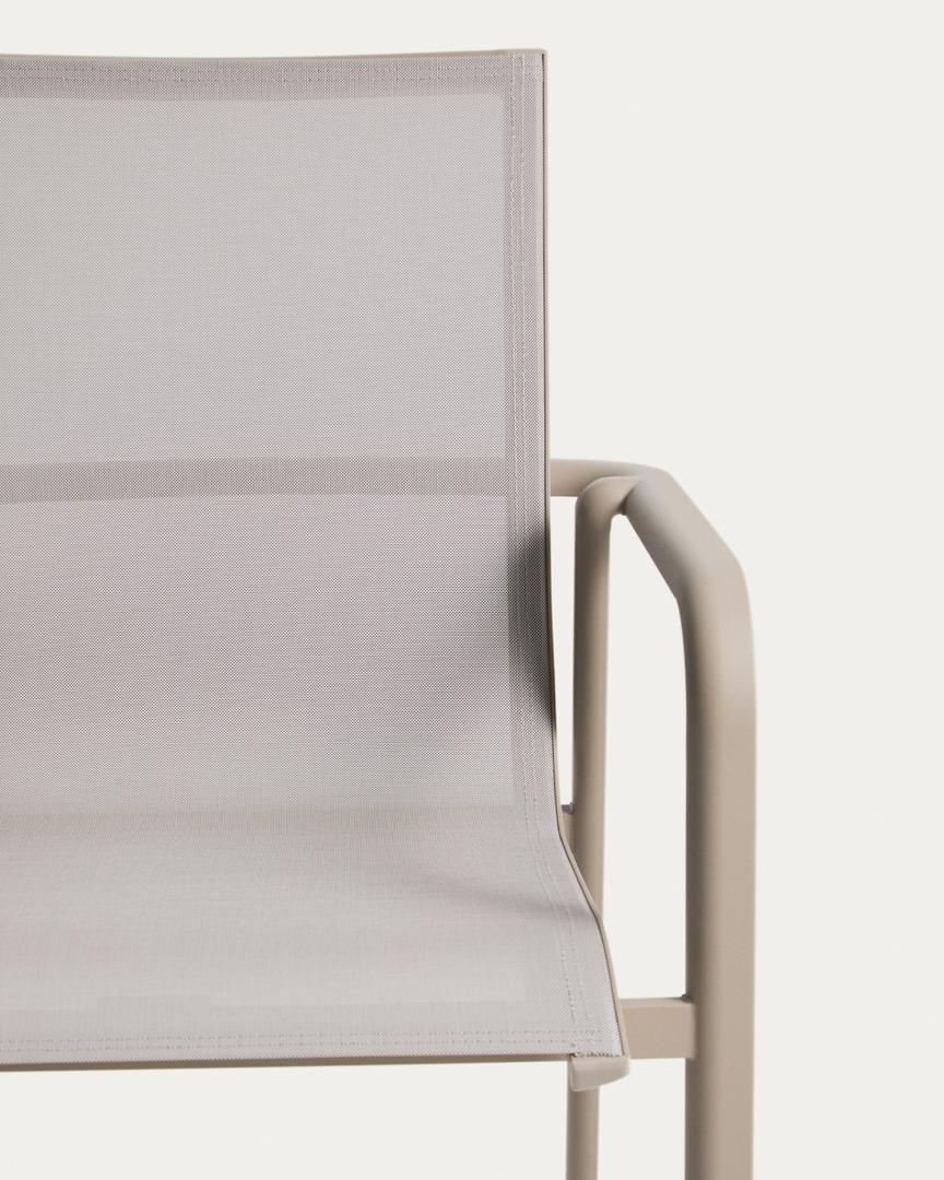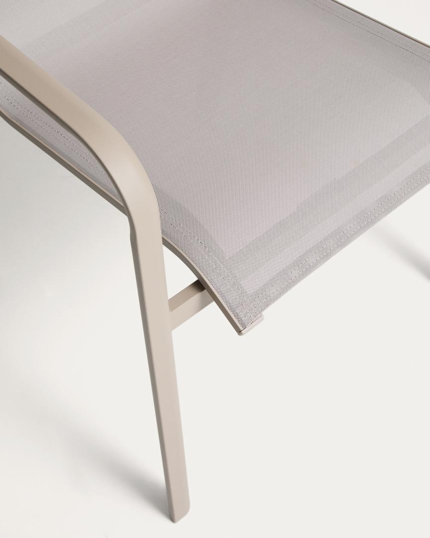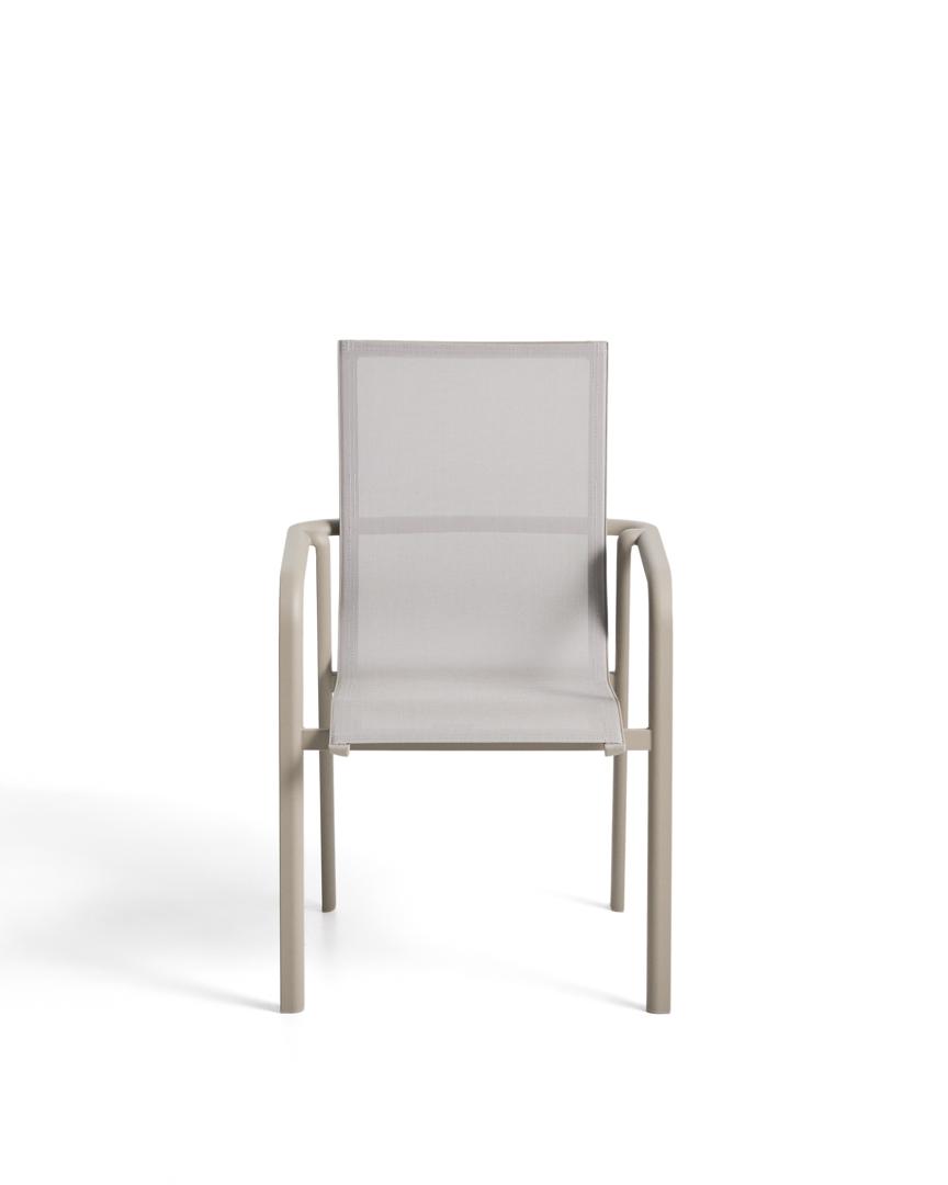 Стул Canea сочетает в себе легкость, прочность и комфорт. Его алюминиевая конструкция устойчива к ржавчине, коррозии и воздействию солнечных лучей, сохраняя свой внешний вид на протяжении длительного времени. Сиденье и спинка изготовлены из текстелина — дышащей синтетической ткани, обеспечивающей упругость и комфорт даже после длительного использования. Штабелируемая конструкция облегчает хранение стула, когда он не используется, а ножки оснащены пластиковыми защитными накладками для защиты пола и поддержания поверхностей в хорошем состоянии.