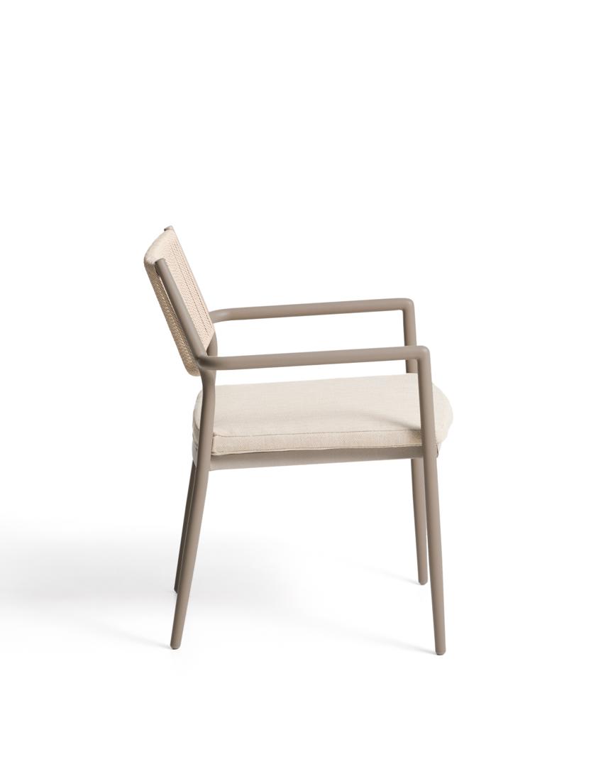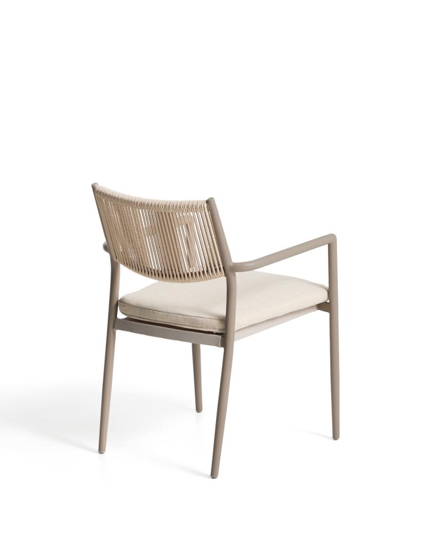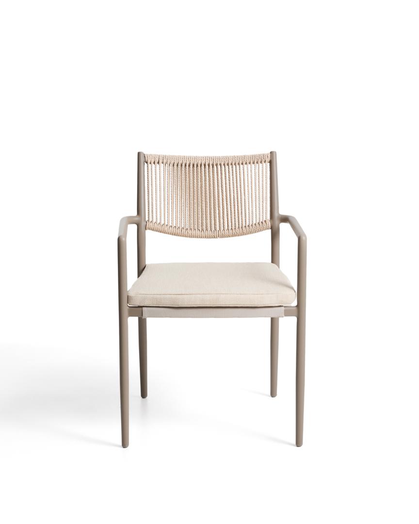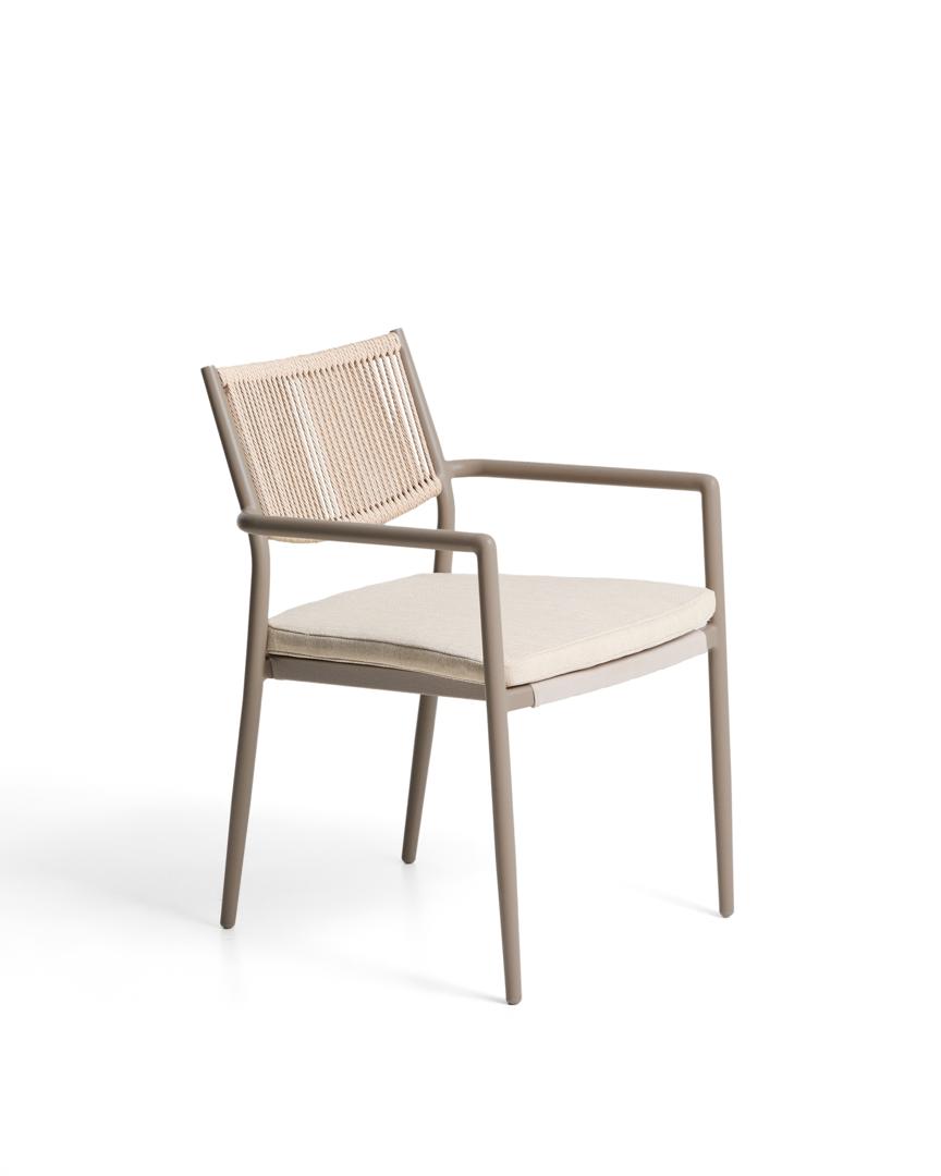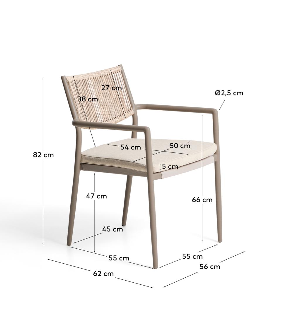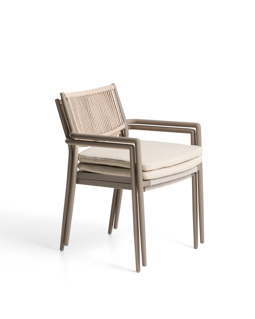 Стул Argasi сочетает в себе легкую конструкцию, прочные материалы и сдержанный дизайн, подходящий как для использования в помещении, так и на открытом воздухе. Его конструкция выполнена из алюминия — прочного материала, который не ржавеет и выдерживает воздействие солнечного света и влаги. Спинка сплетена вручную из синтетического шнура, предназначенного для использования на открытом воздухе, и имеет отделку, придающую ей теплоту и текстуру. Сиденье включает в себя подушку, повышающую комфорт, которую можно легко снять для хранения в дождливую погоду. Стул Argasi штабелируется.