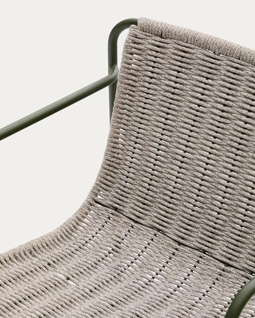 Это кресло, разработанное эксклюзивно студией Yonoh для Kave Home, воплощает в себе суть средиземноморского стиля в современном и ярком исполнении. Благодаря конструкции из оцинкованной стали оно отличается долговечностью, устойчивостью к ржавчине и коррозии, а также способностью вписываться в любые открытые пространства. Сиденье и спинка, изготовленные из устойчивого к ультрафиолетовому излучению каната, сплетённого вручную, обеспечивают комфорт и уникальный стиль. Противоскользящая конструкция и просторные размеры сиденья гарантируют непревзойденный комфорт. Это изделие является частью коллекции Maurina, которая сочетает в себе красоту традиционных материалов и мастерство исполнения с современными линиями. Оно идеально подходит для тех, кто ищет баланс между вечным и современным в своём доме.