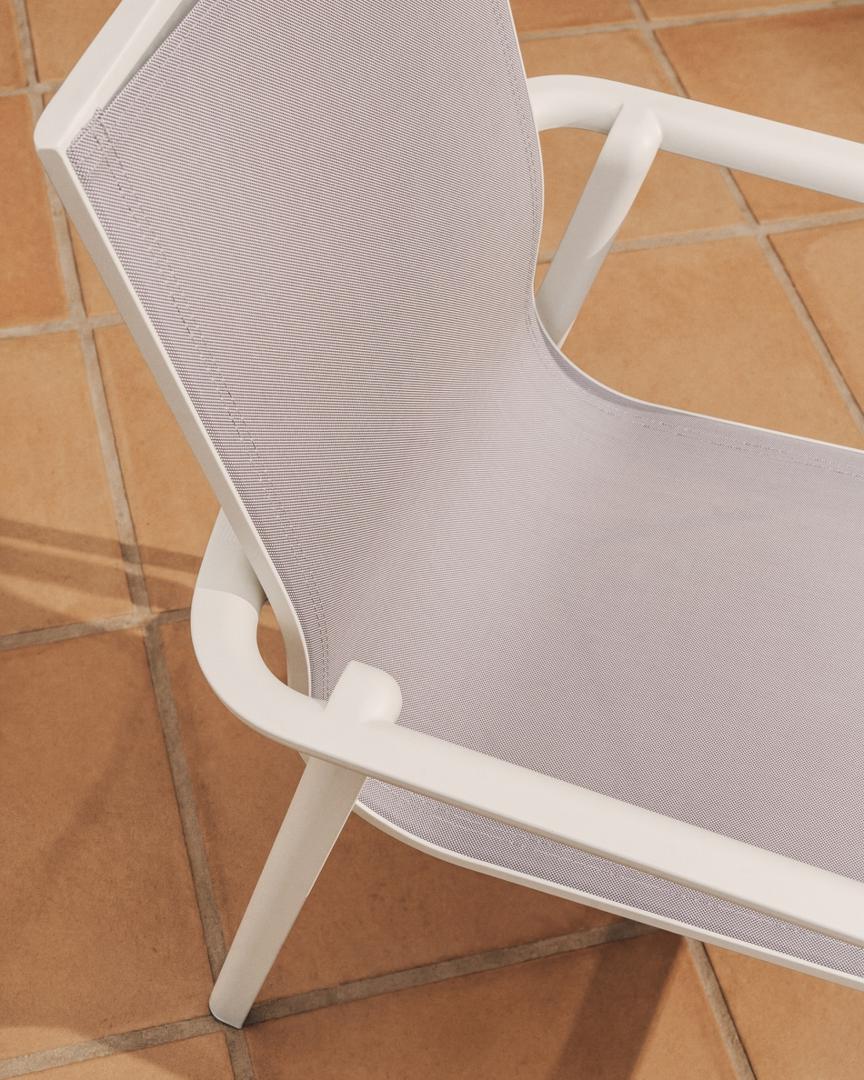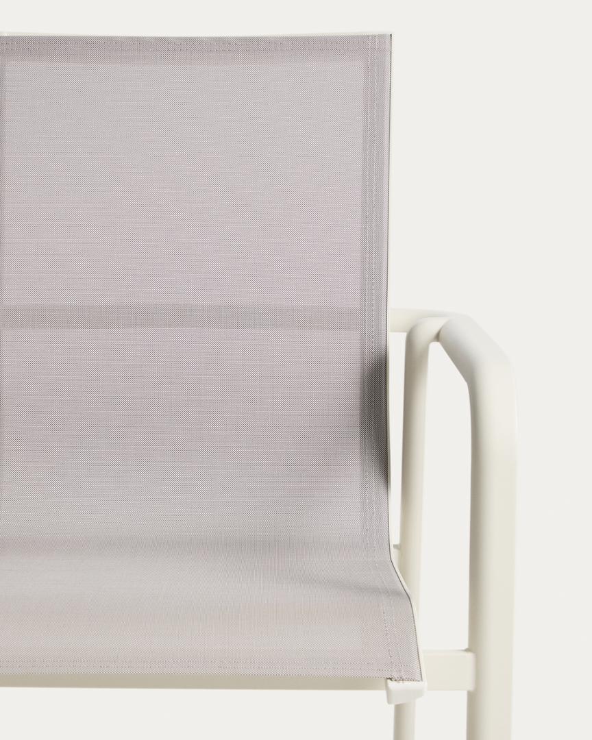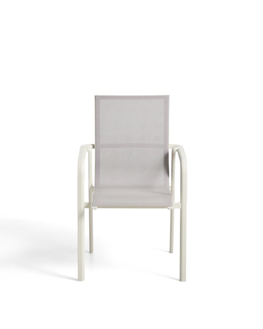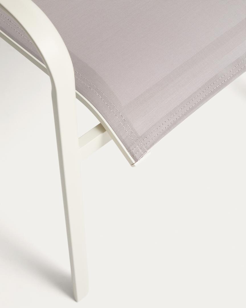 Стул Canea сочетает в себе легкость, прочность и комфорт. Его алюминиевая конструкция устойчива к ржавчине, коррозии и воздействию солнечных лучей, сохраняя свой внешний вид на протяжении длительного времени. Сиденье и спинка изготовлены из текстелина — дышащей синтетической ткани, обеспечивающей упругость и комфорт даже после длительного использования. Штабелируемая конструкция облегчает хранение стула, когда он не используется, а ножки оснащены пластиковыми защитными накладками для защиты пола и поддержания поверхностей в хорошем состоянии.
