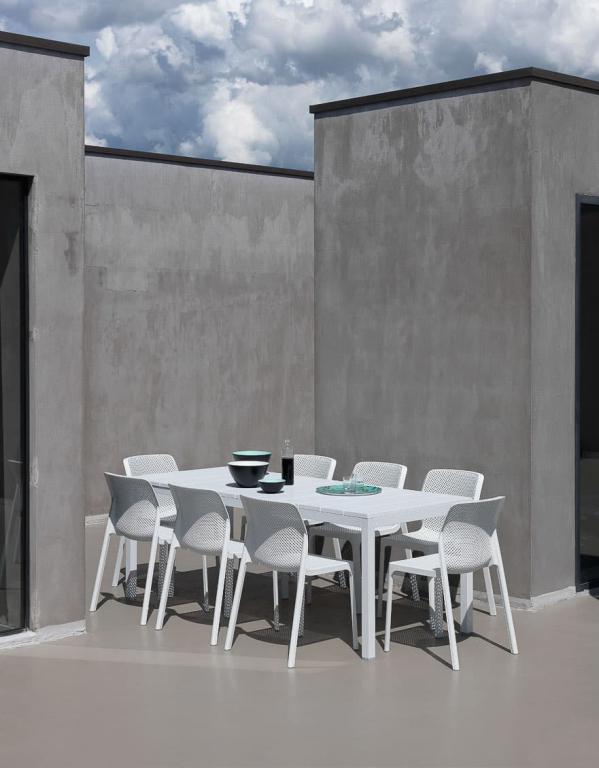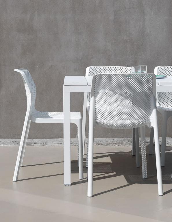 Очень низкий коэффициент теплопроводности материала позволяет продукции долго оставаться на солнце без поглощения тепла. Для того чтобы восстановить прежнее состояние мебели после использования на открытом воздухе, достаточно протереть ее губкой с водой и нейтральным средством, не используя абразивные чистящие средства, растворители и хлорсодержащие вещества. Материал пластиковой мебели Nardi экологически чистый.