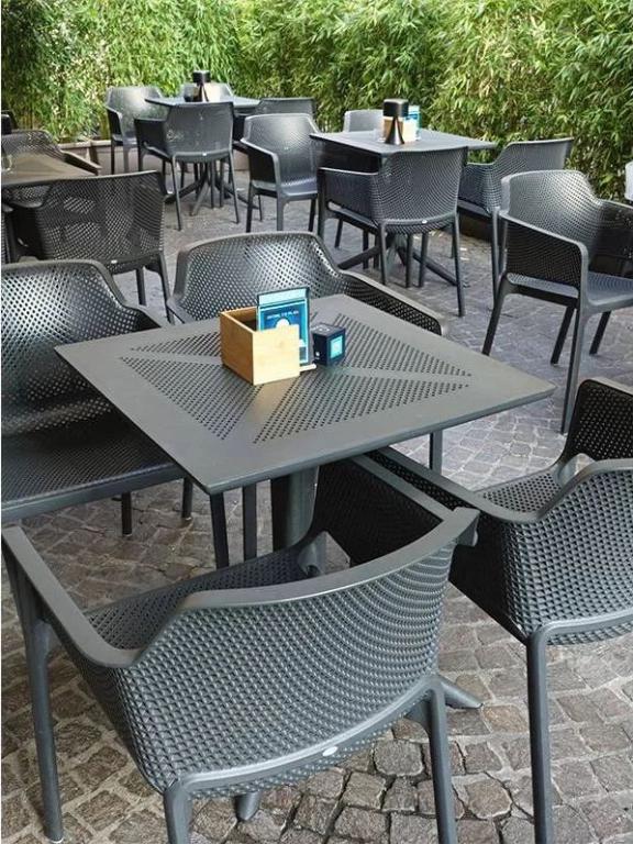 Очень низкий коэффициент теплопроводности материала позволяет продукции долго оставаться на солнце без поглощения тепла. Для того чтобы восстановить прежнее состояние мебели после использования на открытом воздухе, достаточно протереть ее губкой с водой и нейтральным средством, не используя абразивные чистящие средства, растворители и хлорсодержащие вещества. Материал пластиковой мебели Nardi экологически чистый.