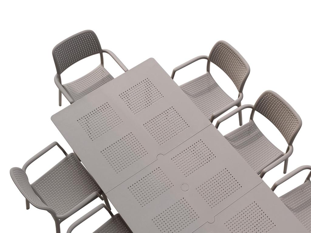 Очень низкий коэффициент теплопроводности материала позволяет продукции долго оставаться на солнце без поглощения тепла. Для того чтобы восстановить прежнее состояние мебели после использования на открытом воздухе, достаточно протереть ее губкой с водой и нейтральным средством, не используя абразивные чистящие средства, растворители и хлорсодержащие вещества. Материал пластиковой мебели Nardi экологически чистый.